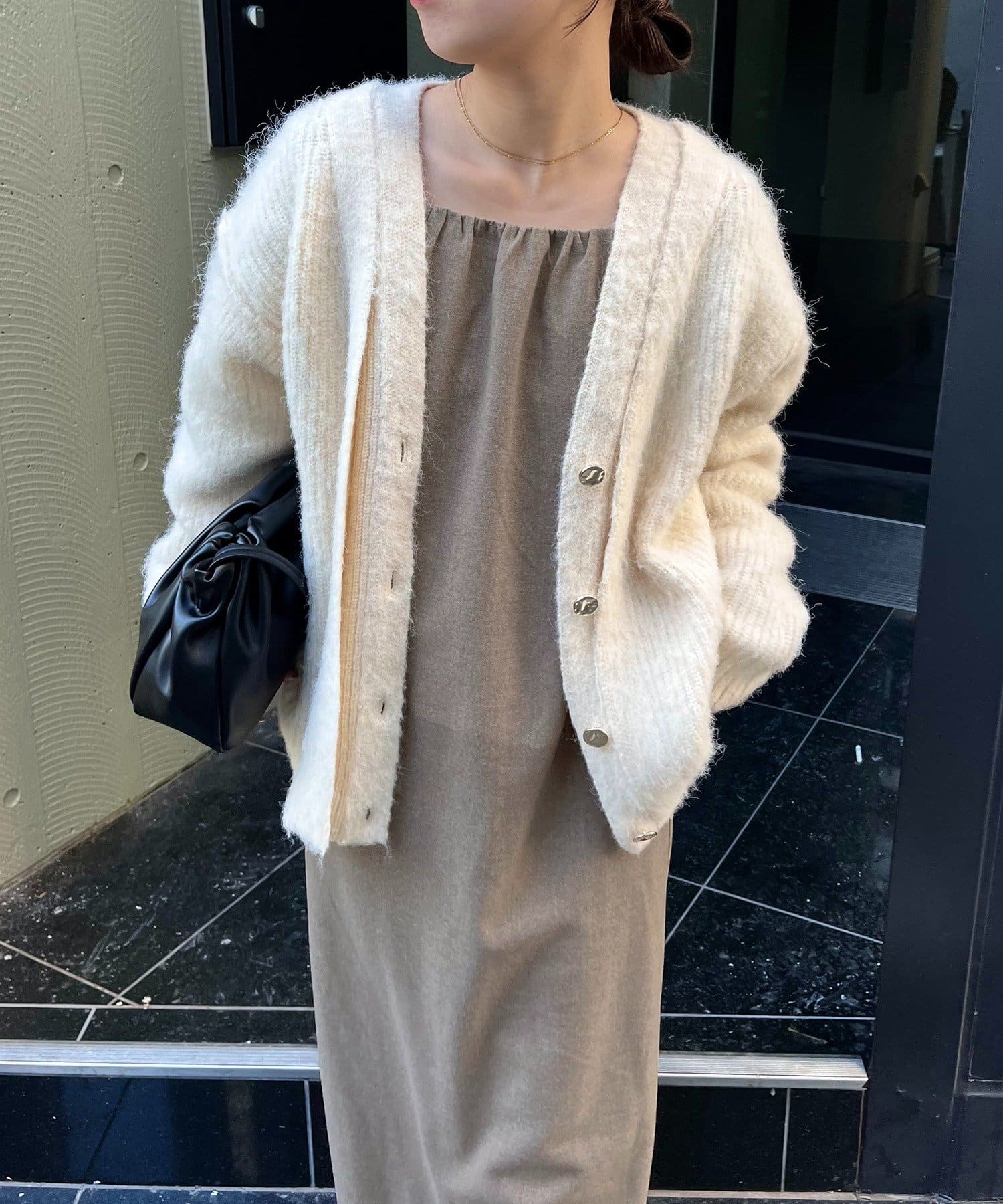 ・ニュアンスボタンレイヤードカーディガン合わせがおすすめ