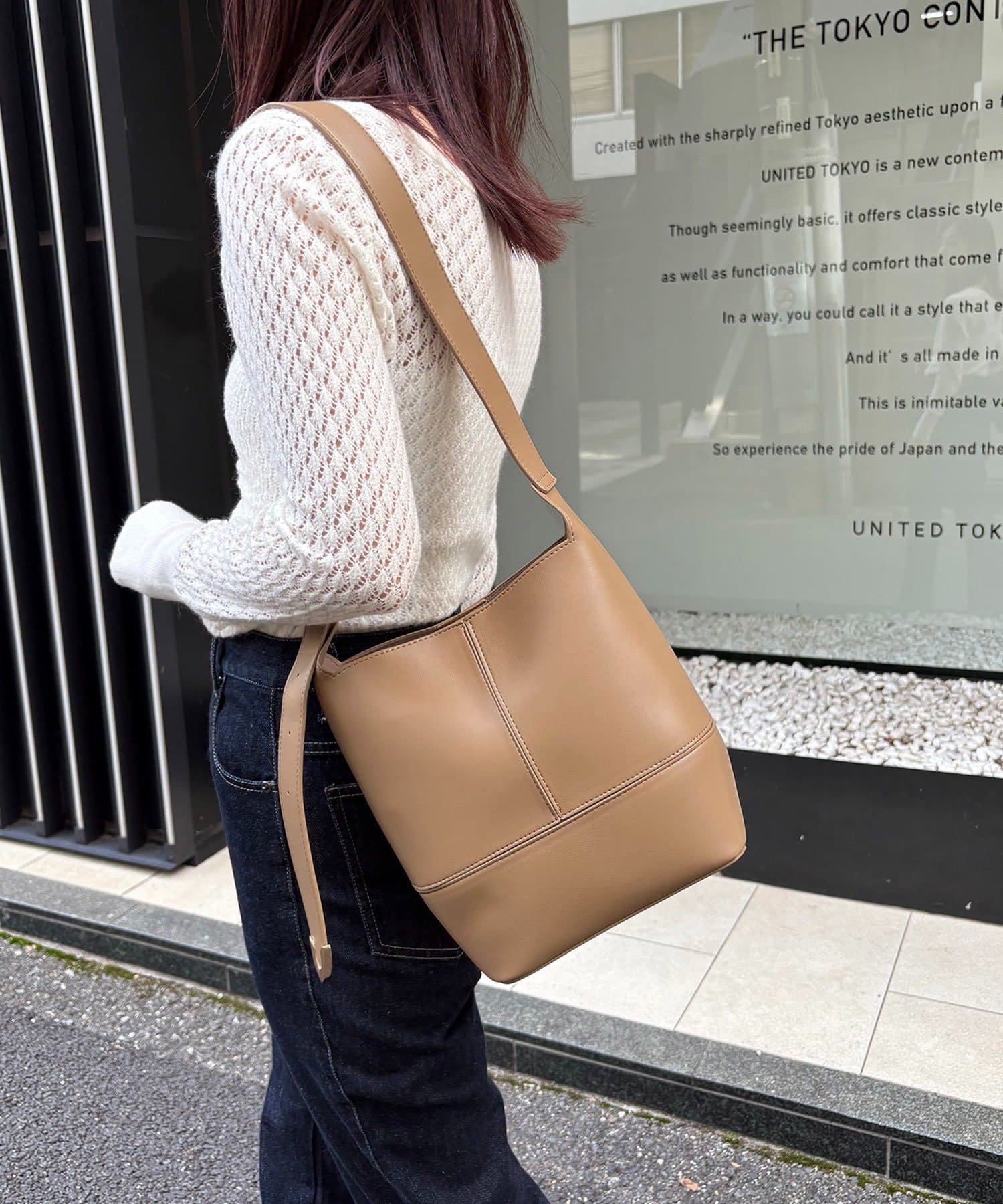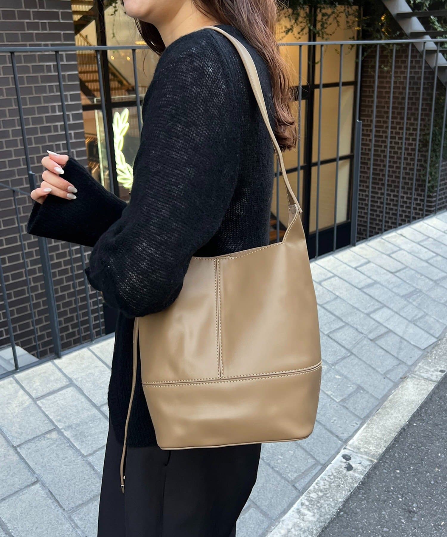 実用的なサイズ感のバケツ型バッグ