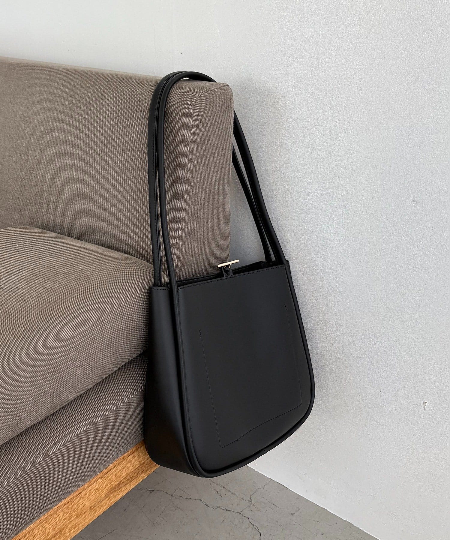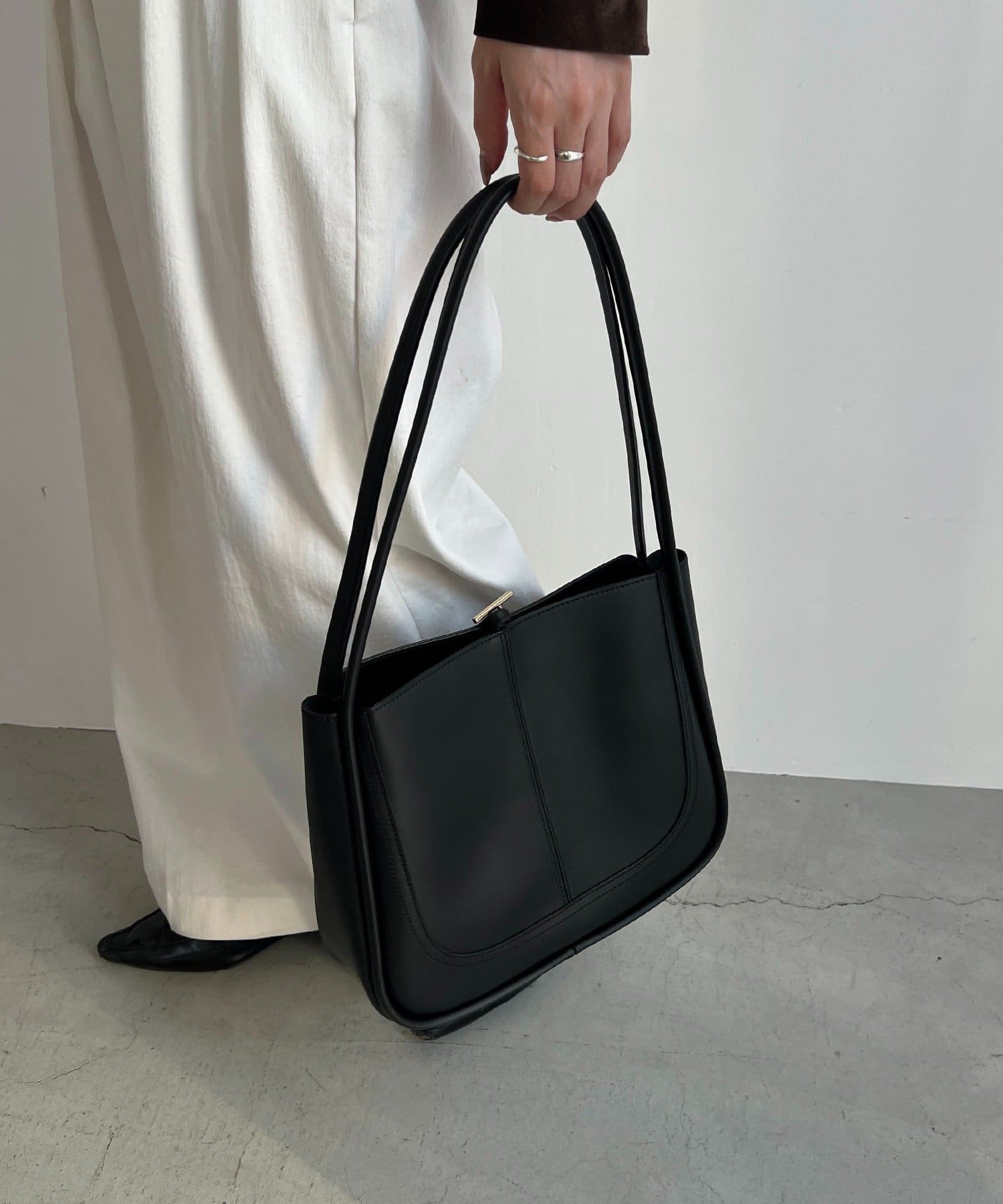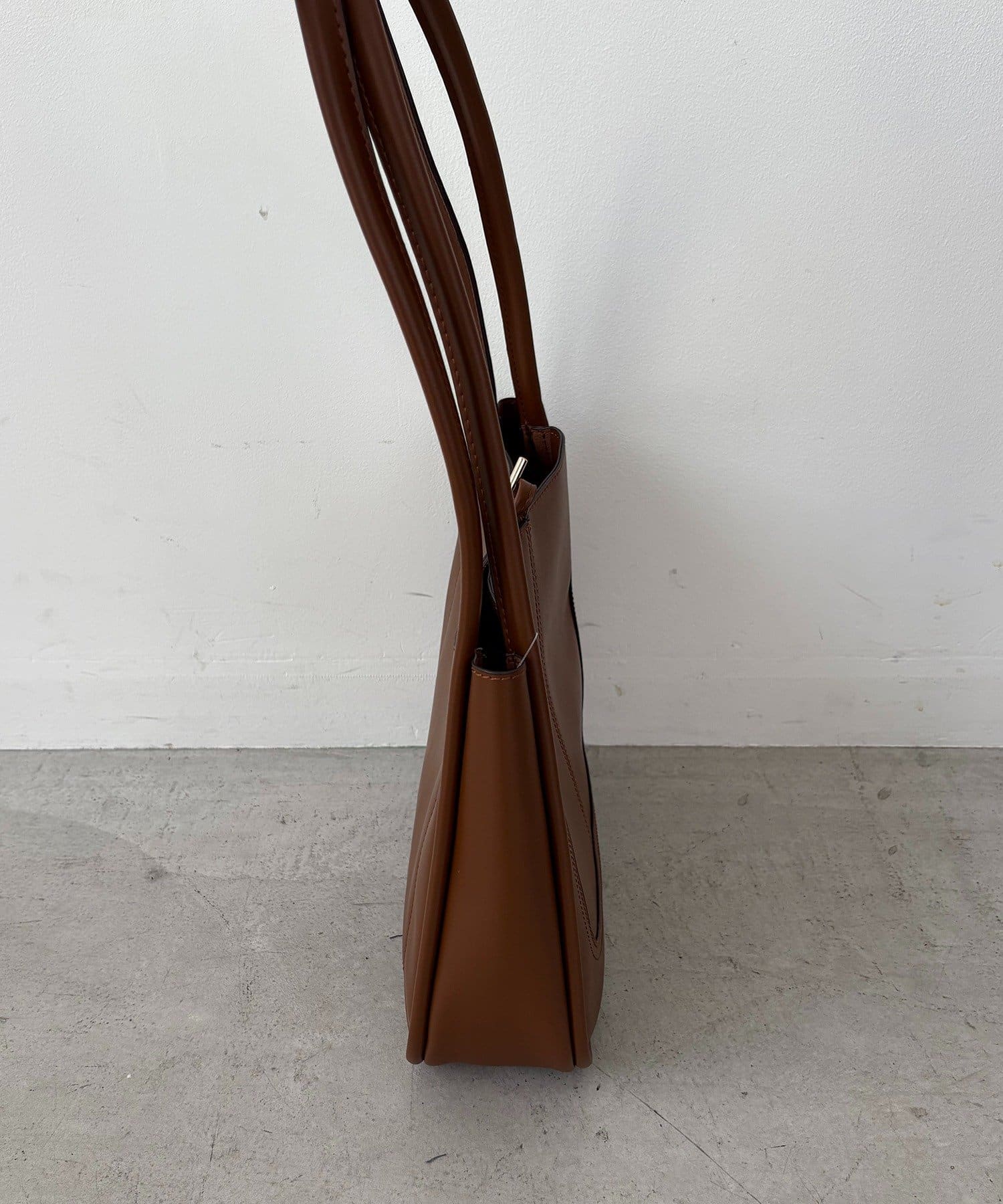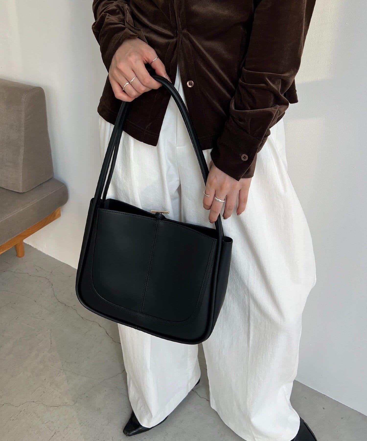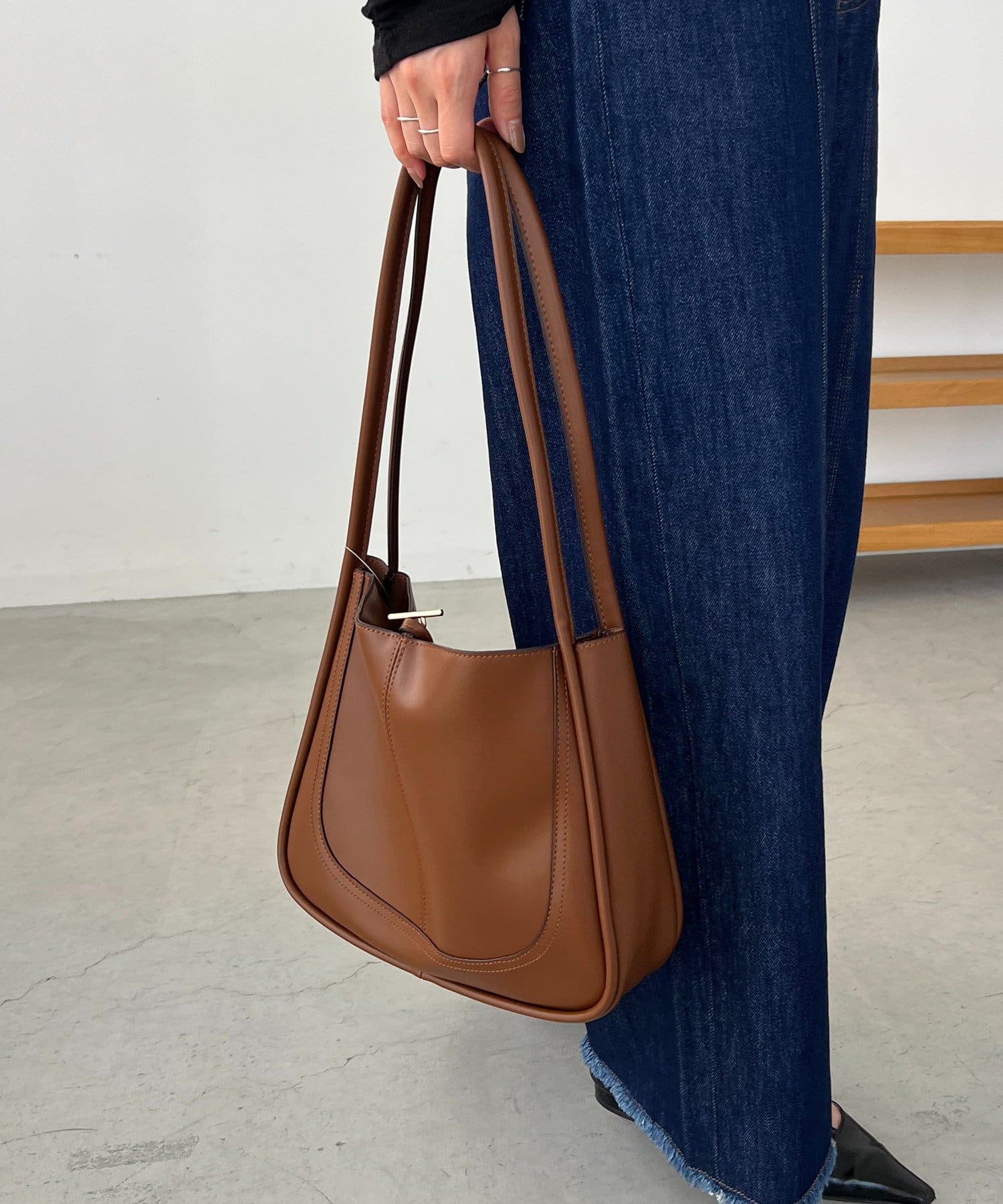 持ち手から繋がるパイピングがクリーンな印象のバッグ