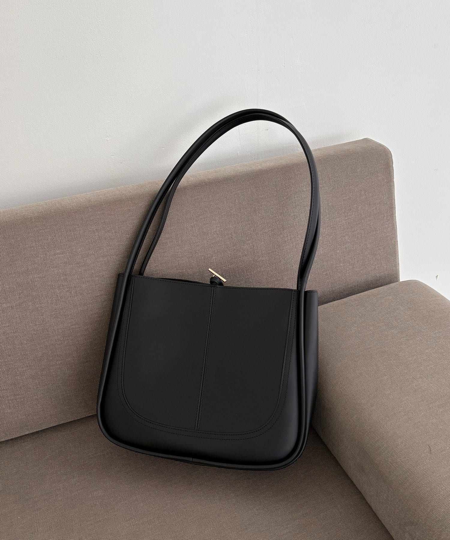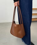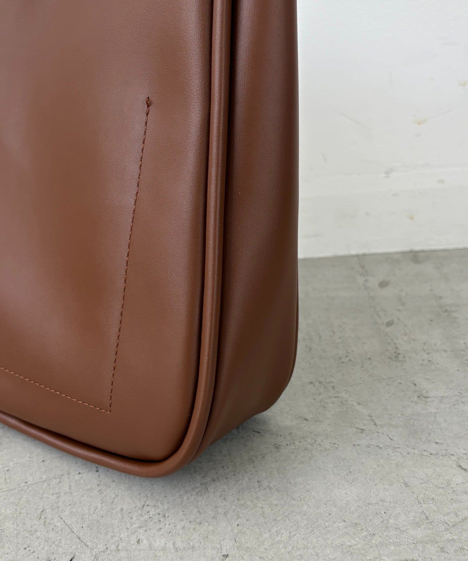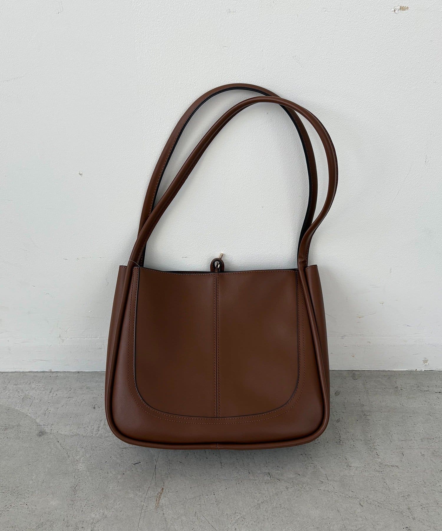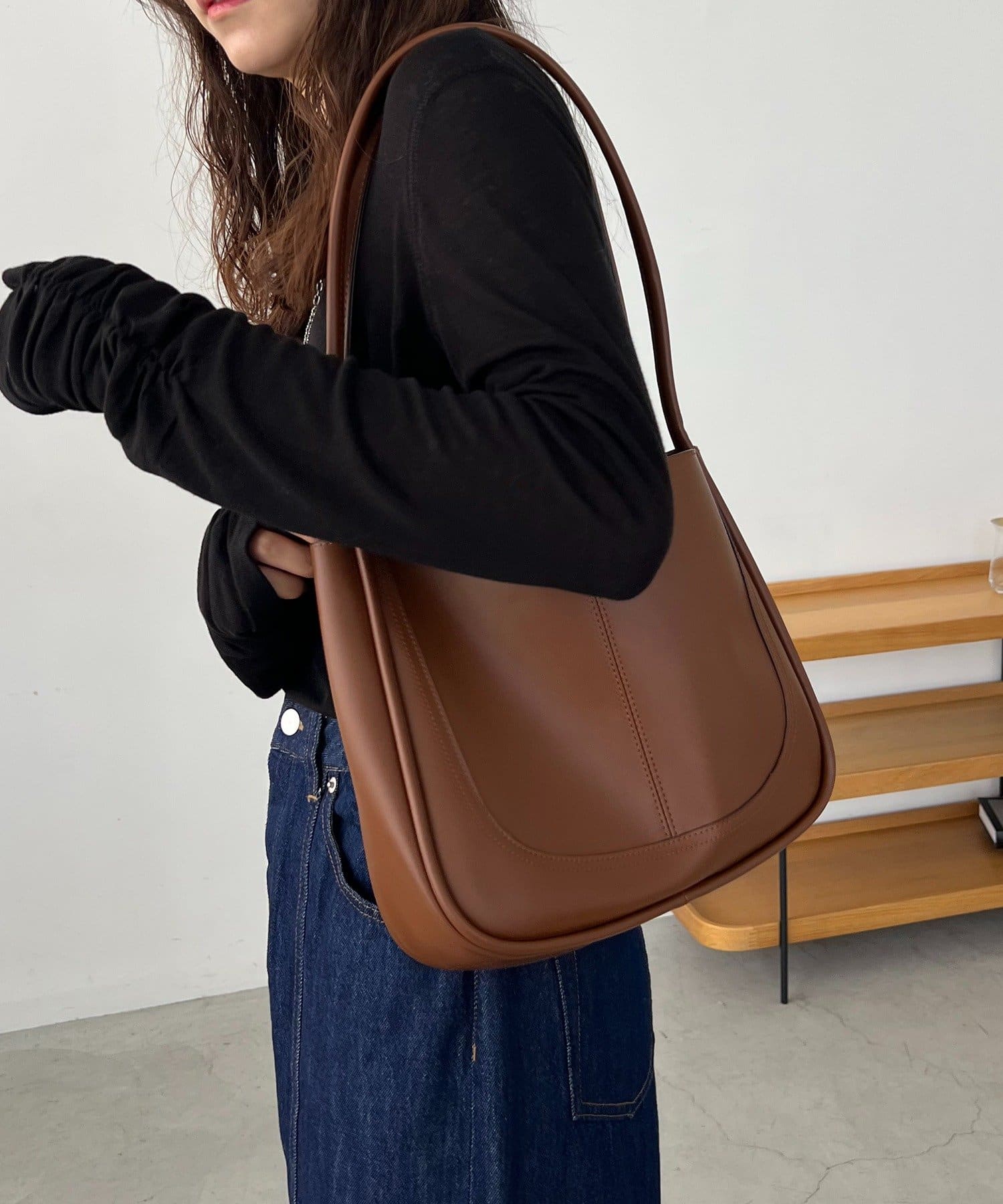 持ち手から繋がるパイピングがクリーンな印象のバッグ