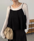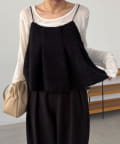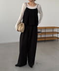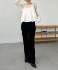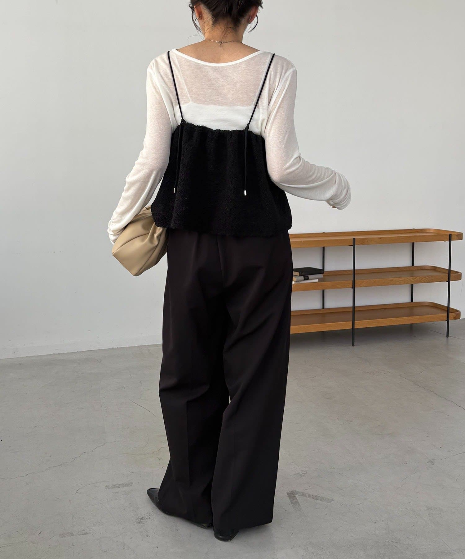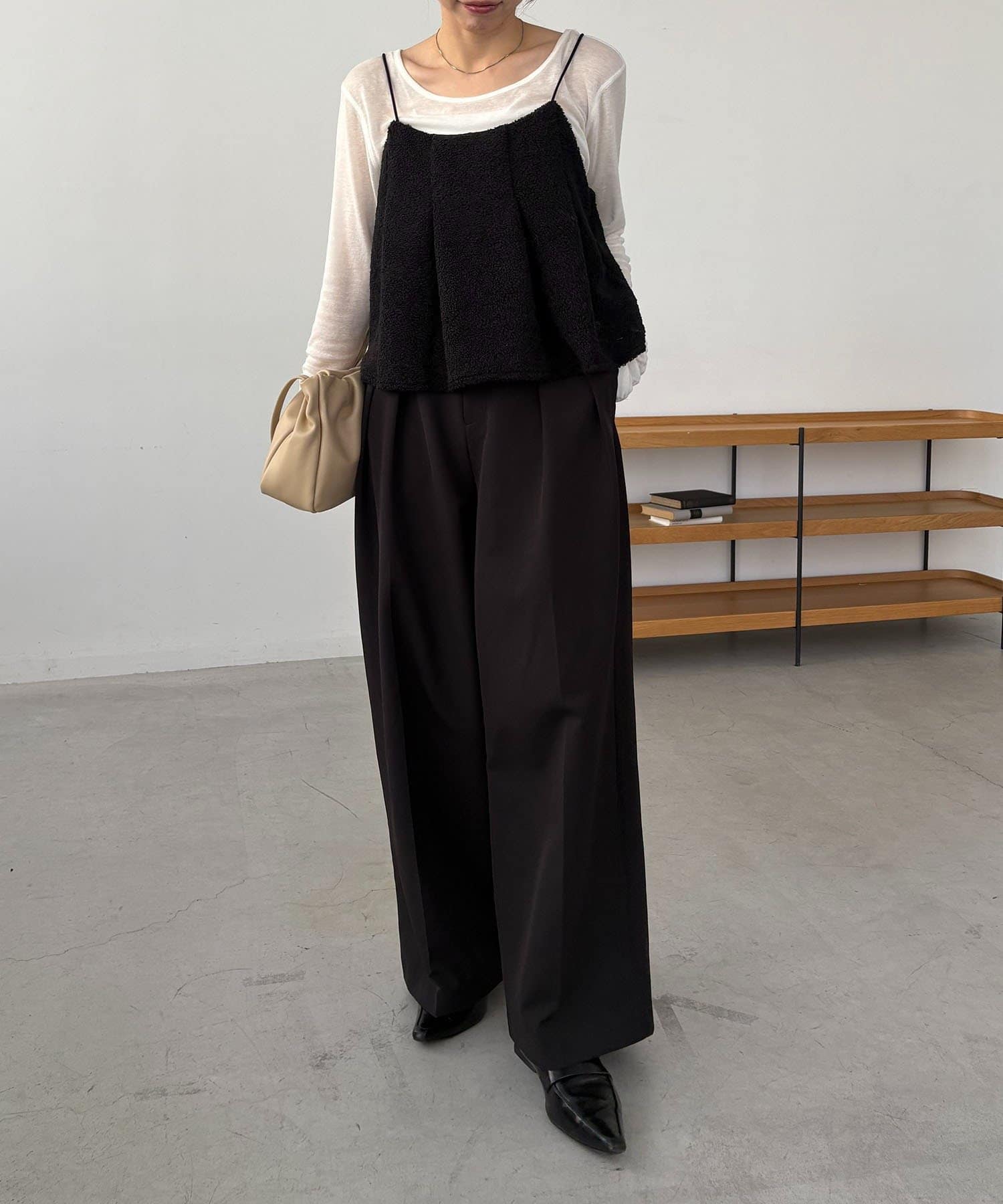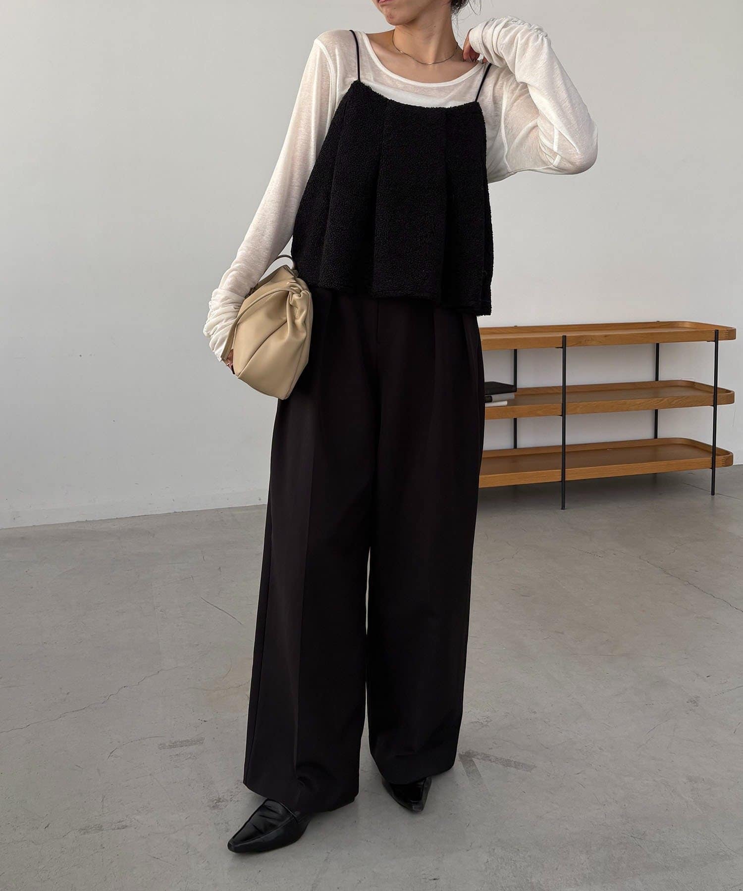 【ブラック着用アイテム】inner:テンセルウール袖ギャザーロンT、pants:2タックワイドパンツ