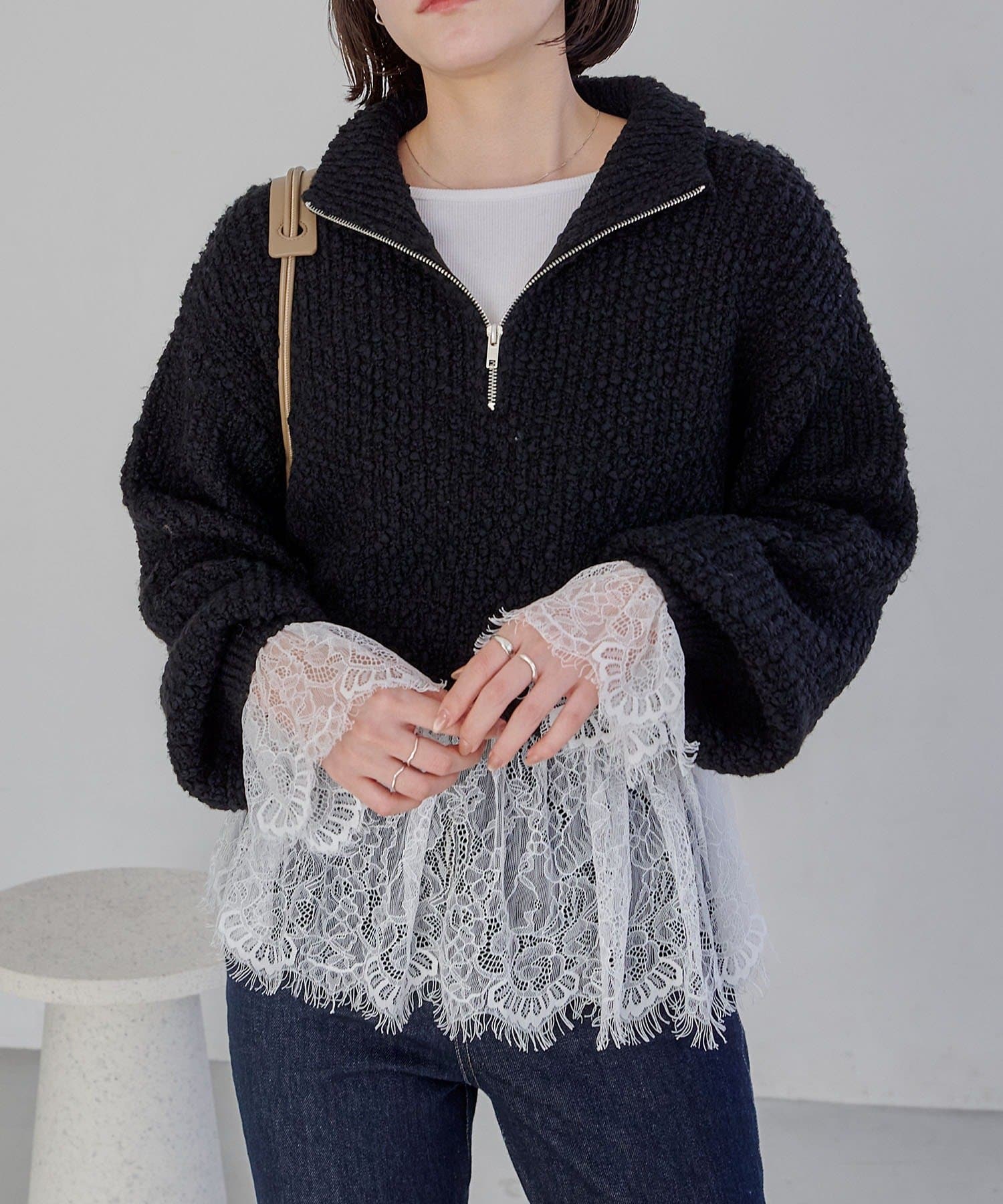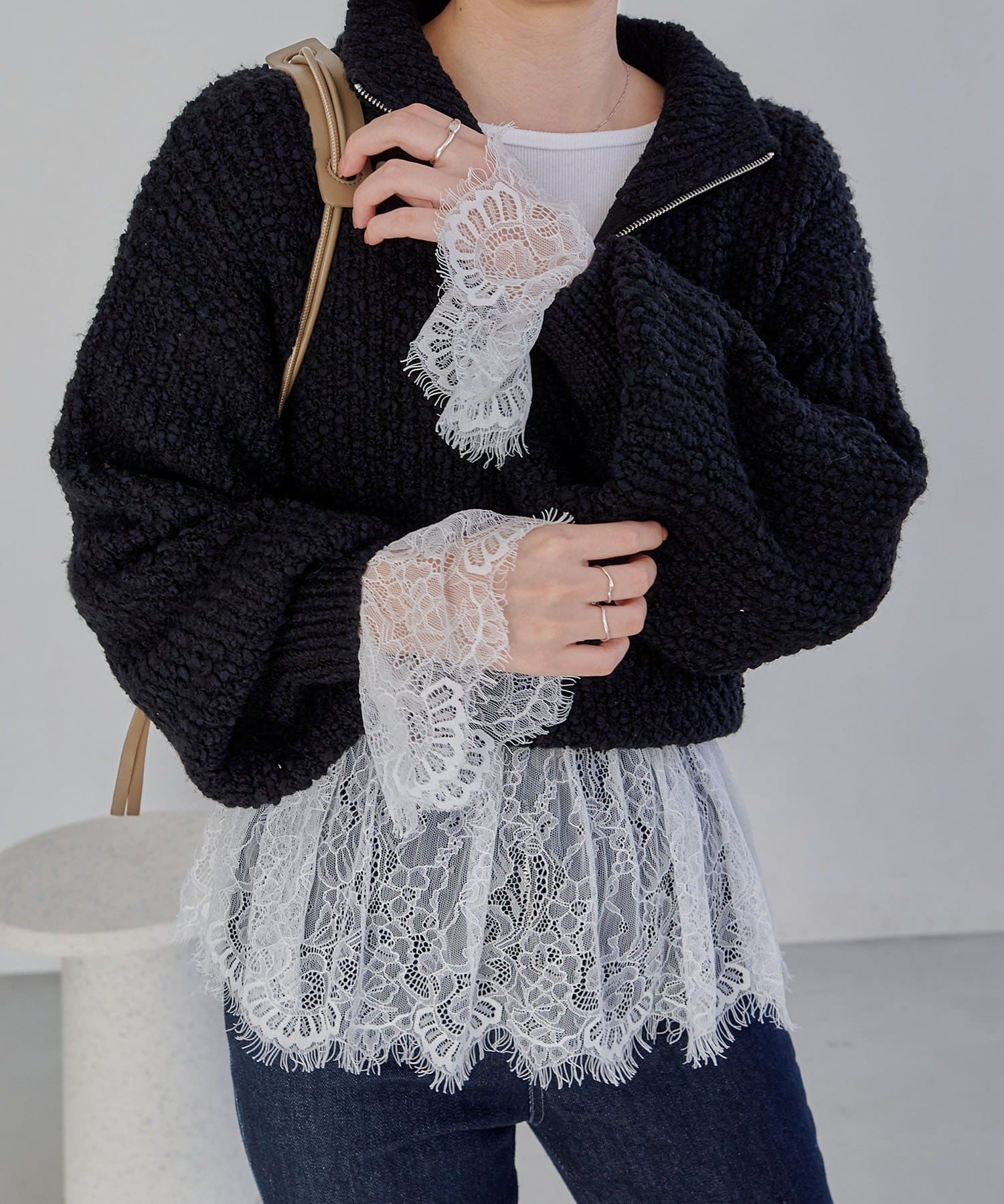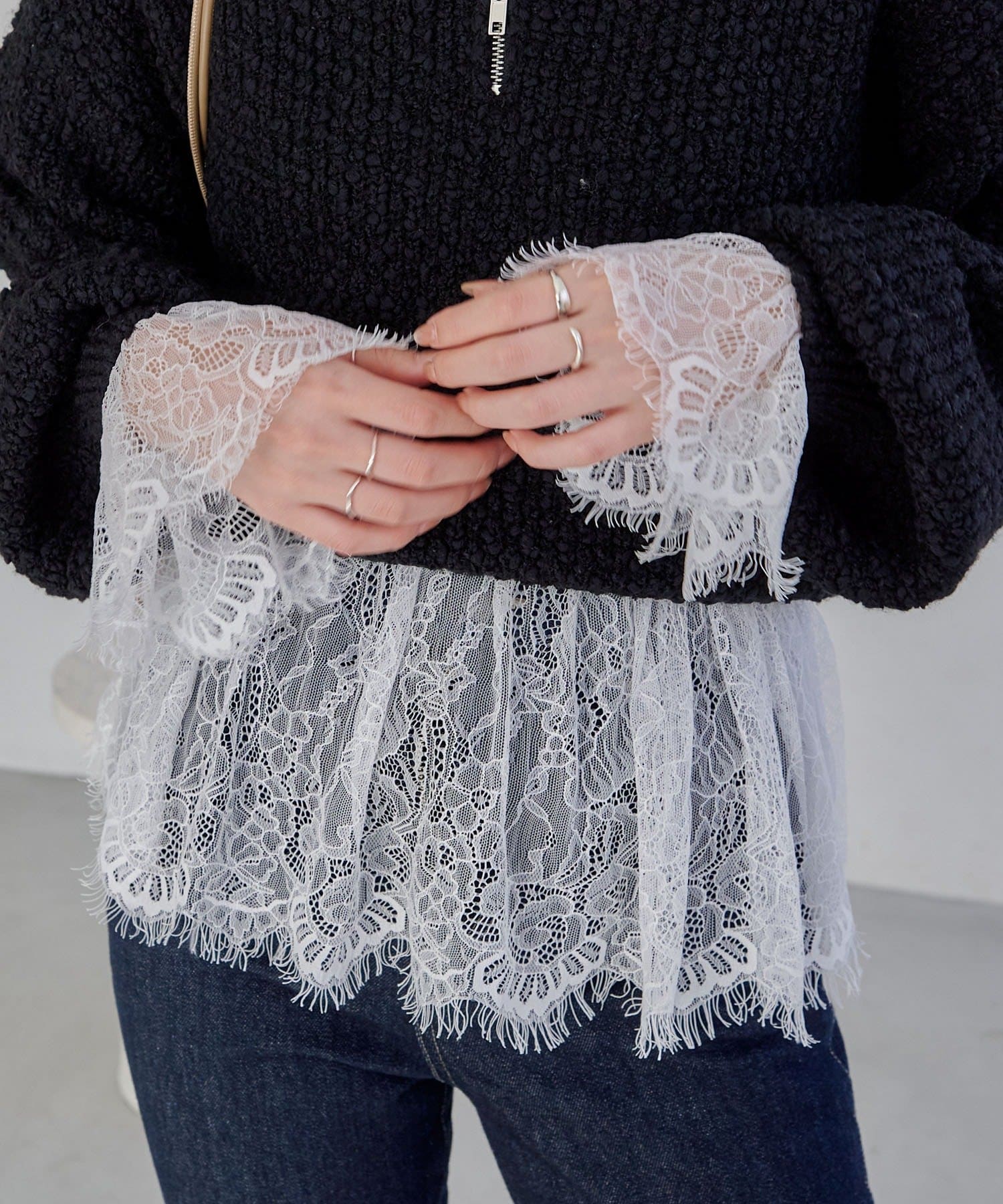 ・ニットやスウェットの裾と袖口からレースを見せるレイヤードコーデがおすすめ