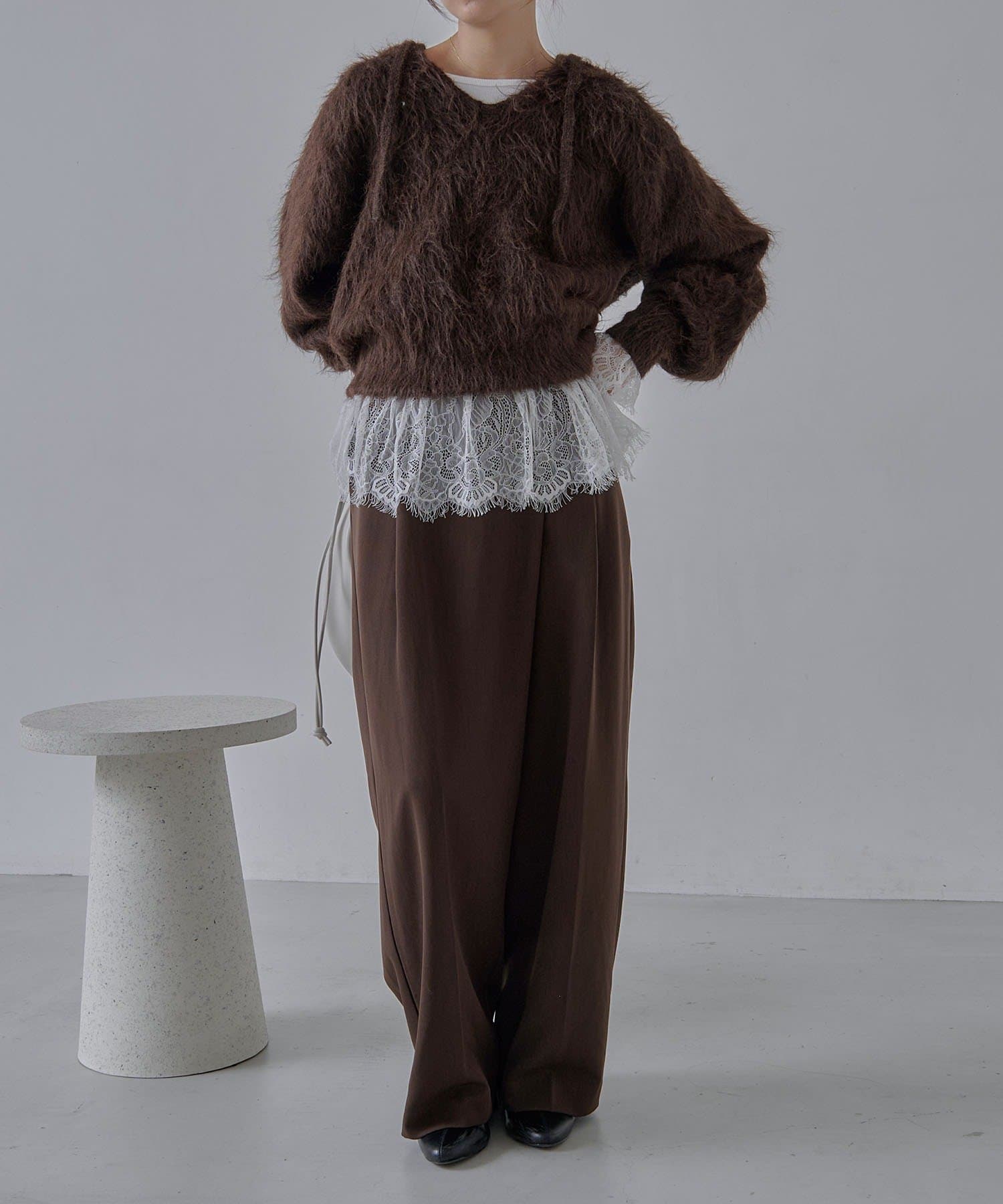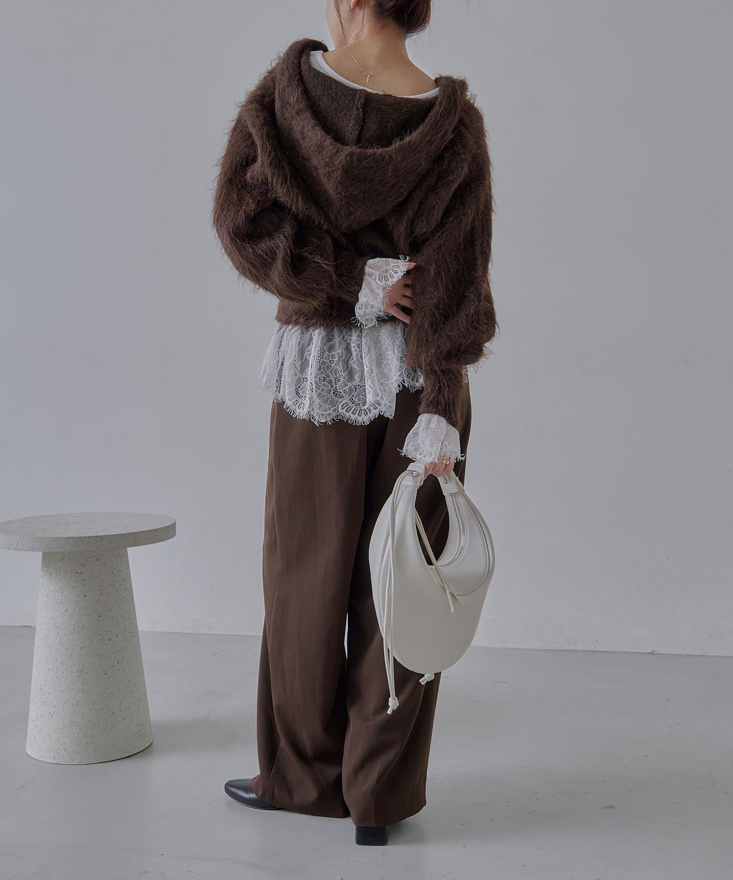 【ホワイト着用アイテム③】tops:シャギーニットフーディー bottom:ラップリボンパンツ