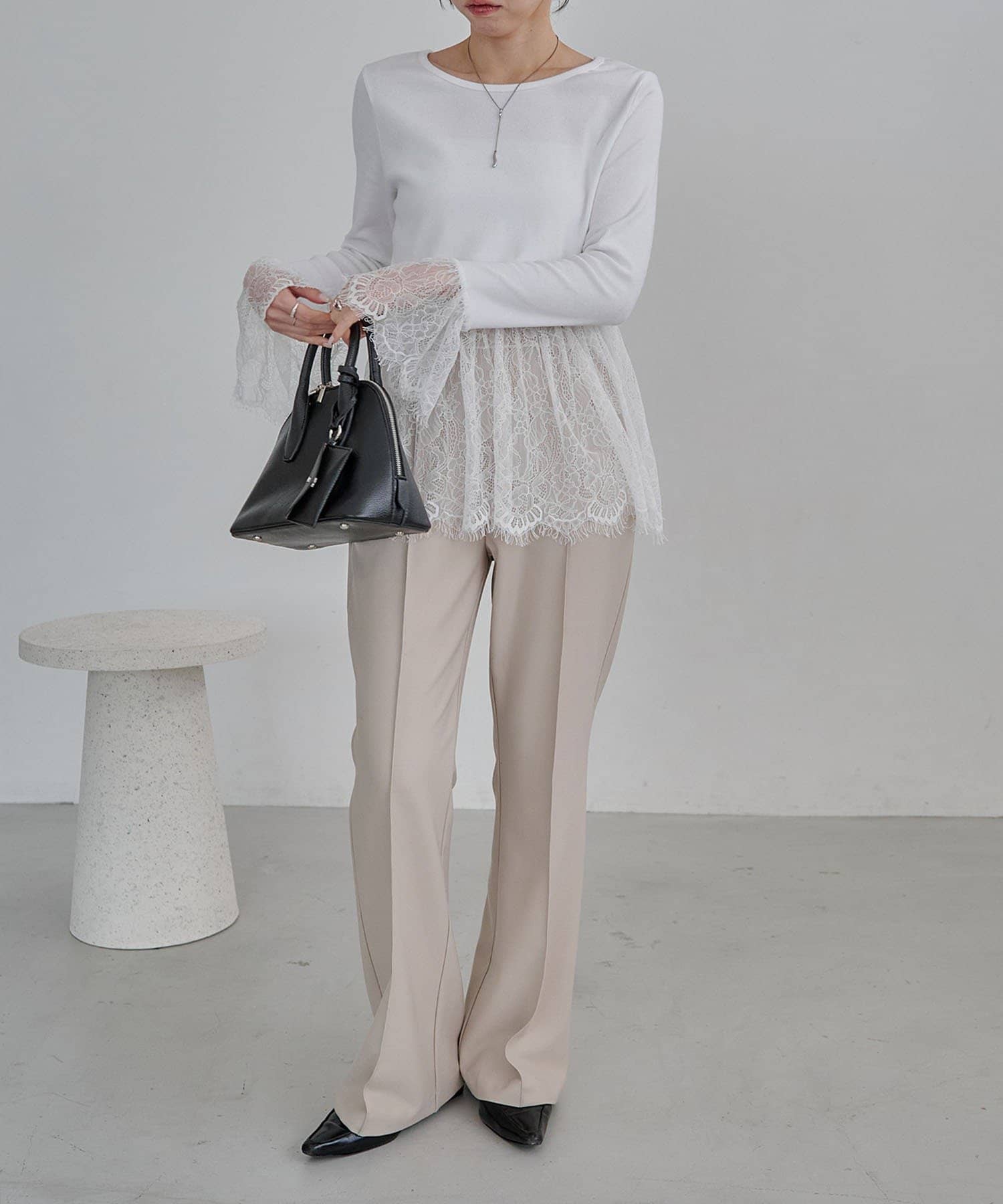 【ホワイト着用アイテム①】ピンタックフレアパンツ