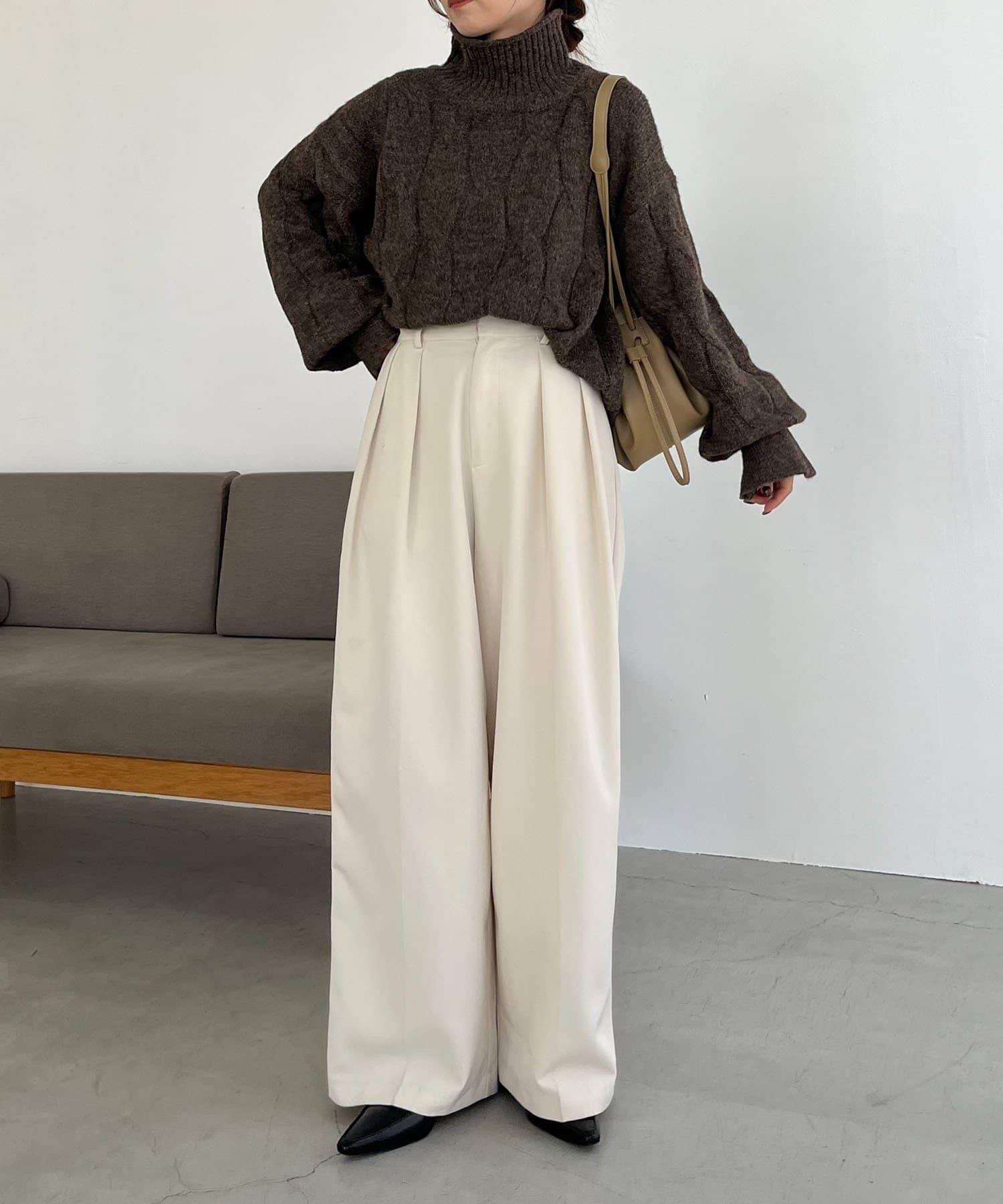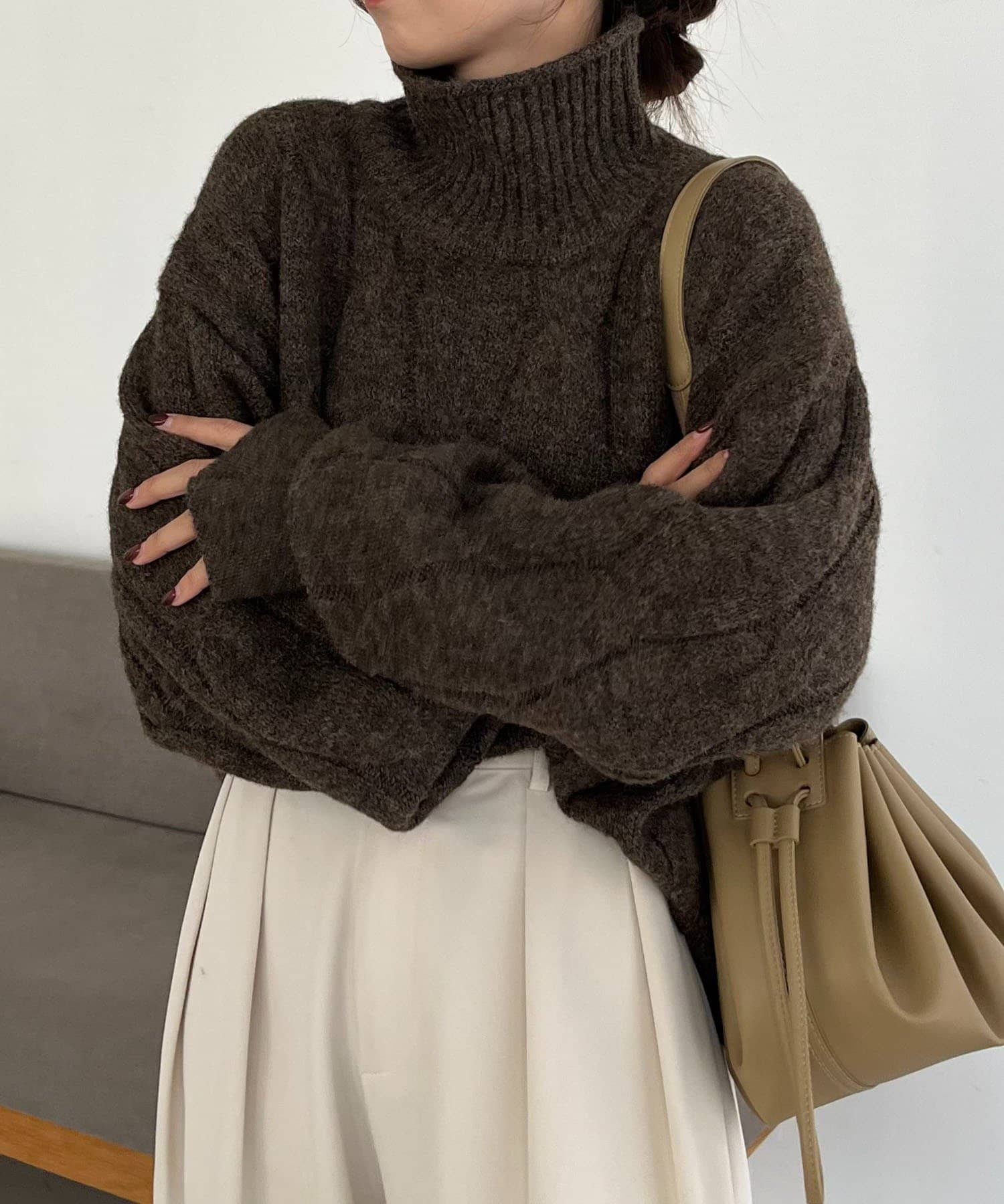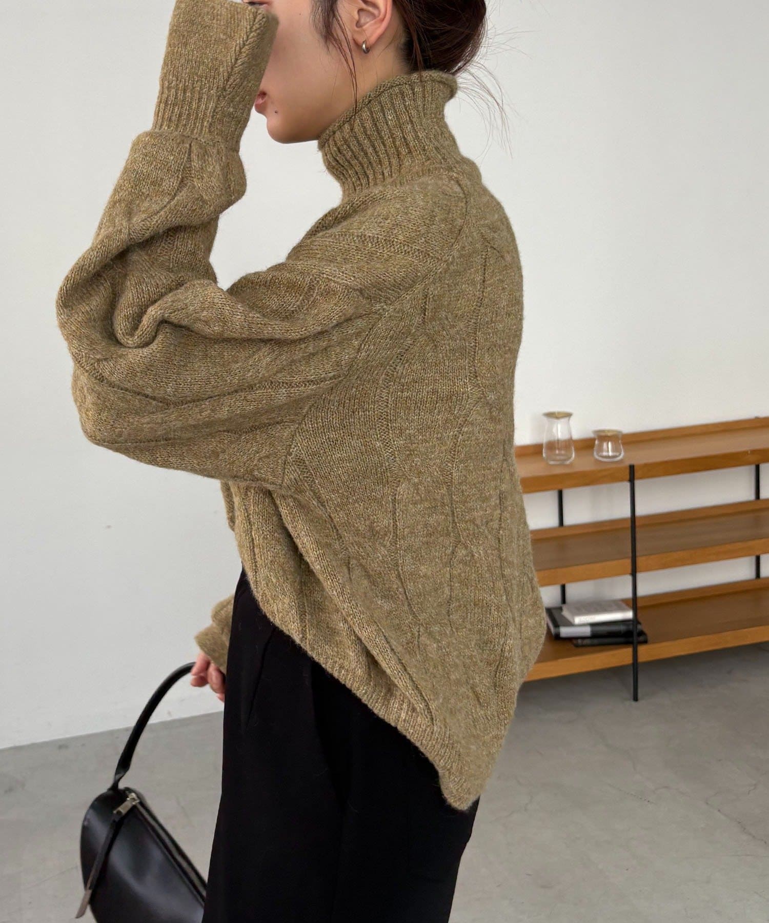 ・首回りがゆったりしておりハイネックが苦手な方も取り入れやすい