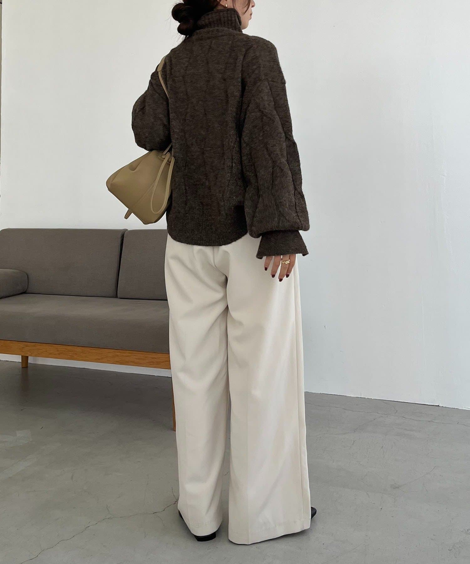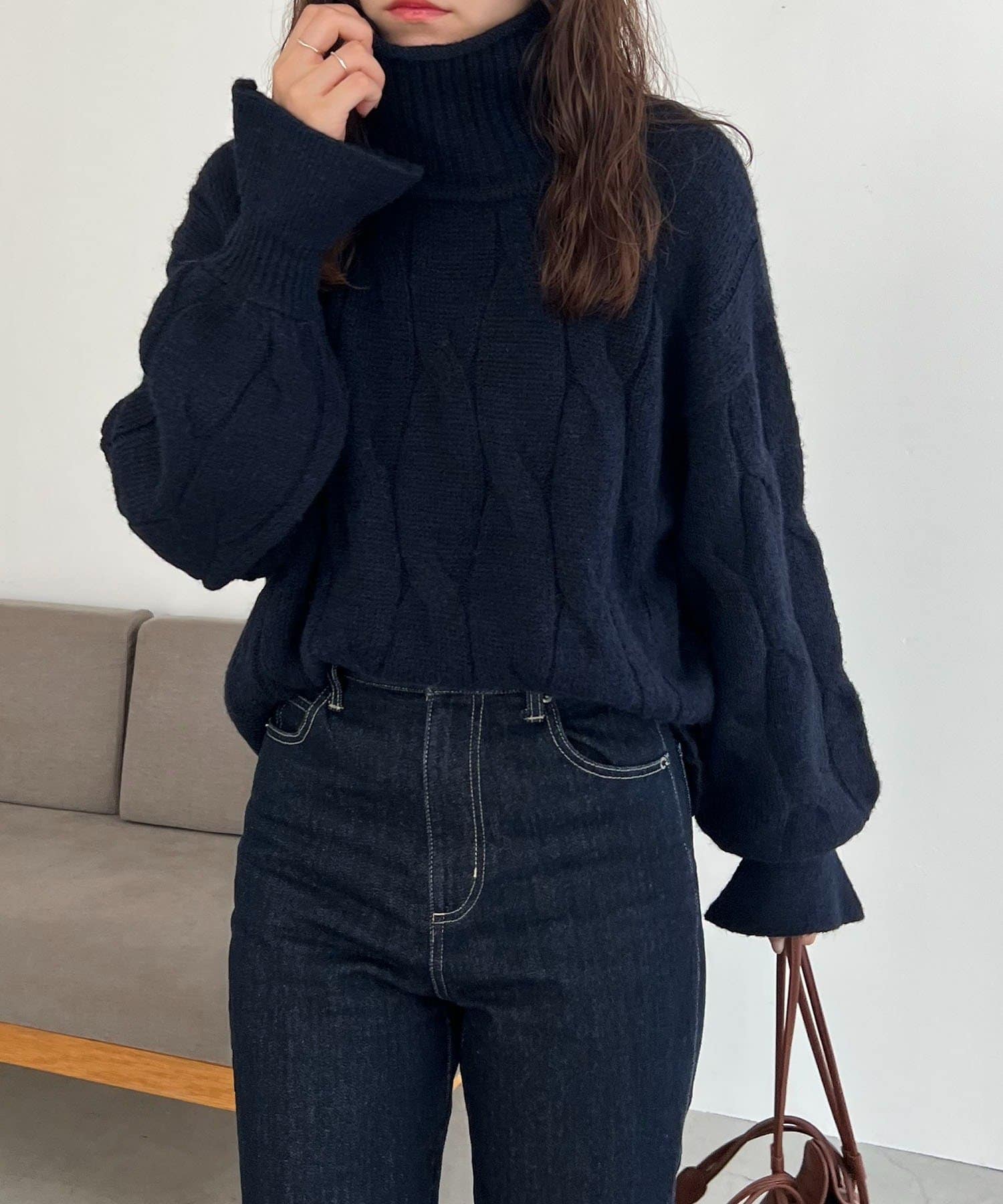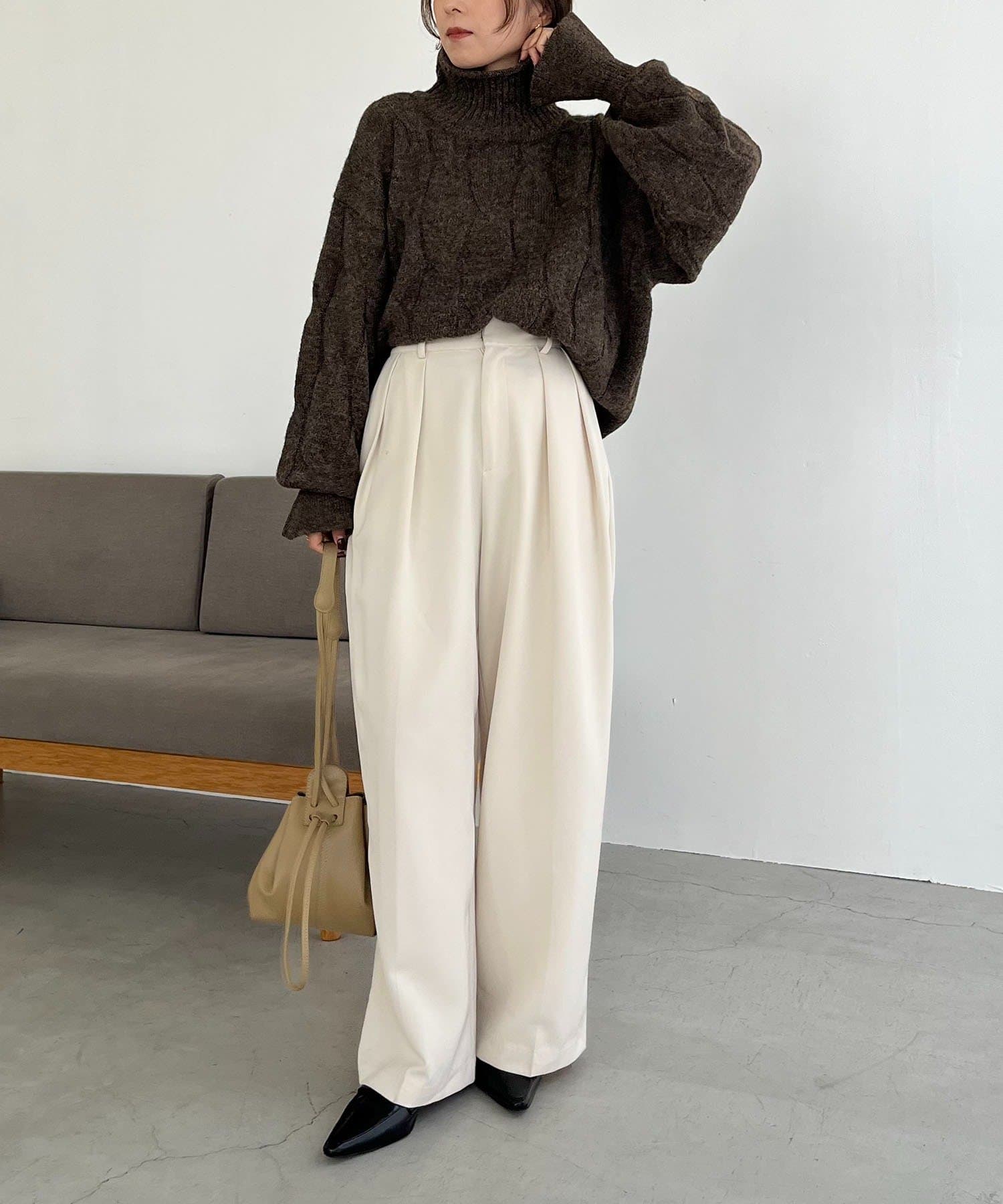 ・首回りがゆったりしておりハイネックが苦手な方も取り入れやすい