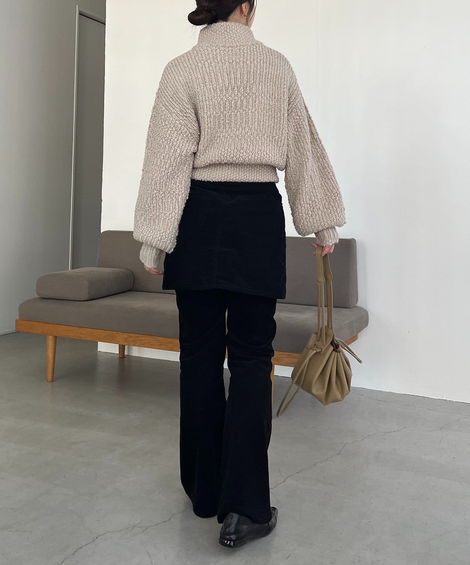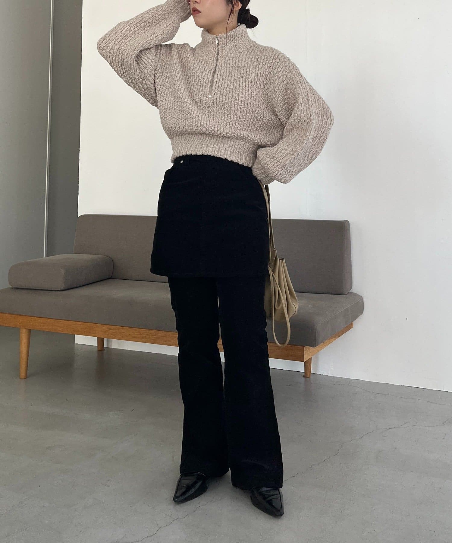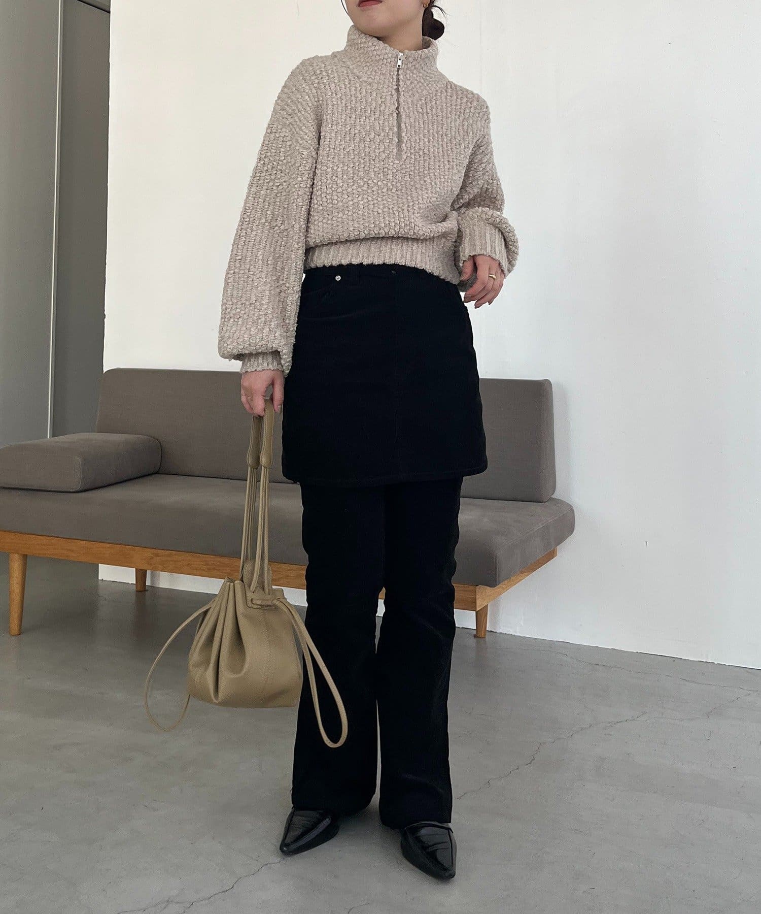 【ベージュ着用アイテム】skirt:コーデュロイ台形スカート、pants:コーデュロイフレアパンツ