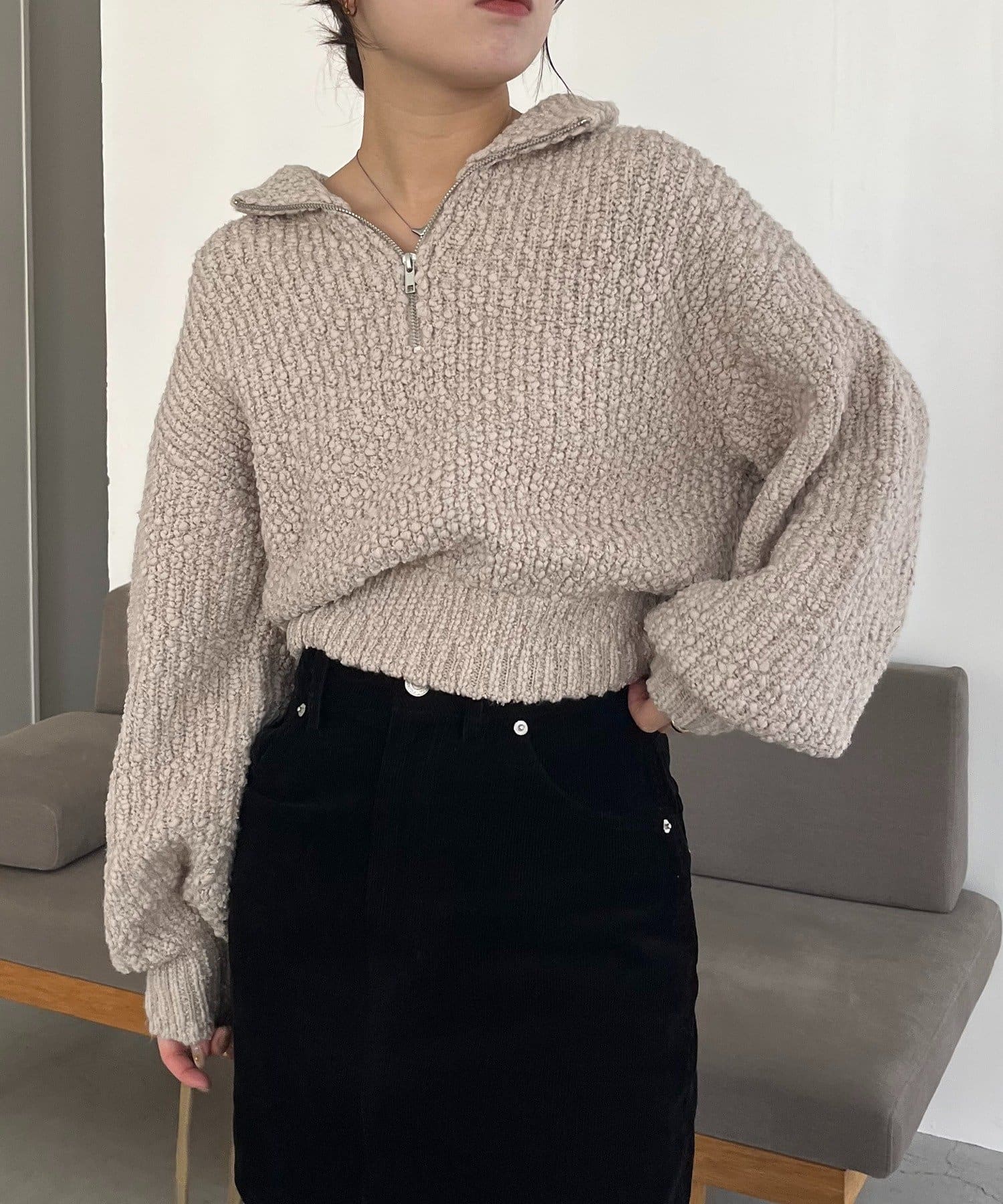 ハーフジップニット