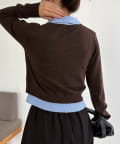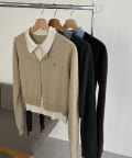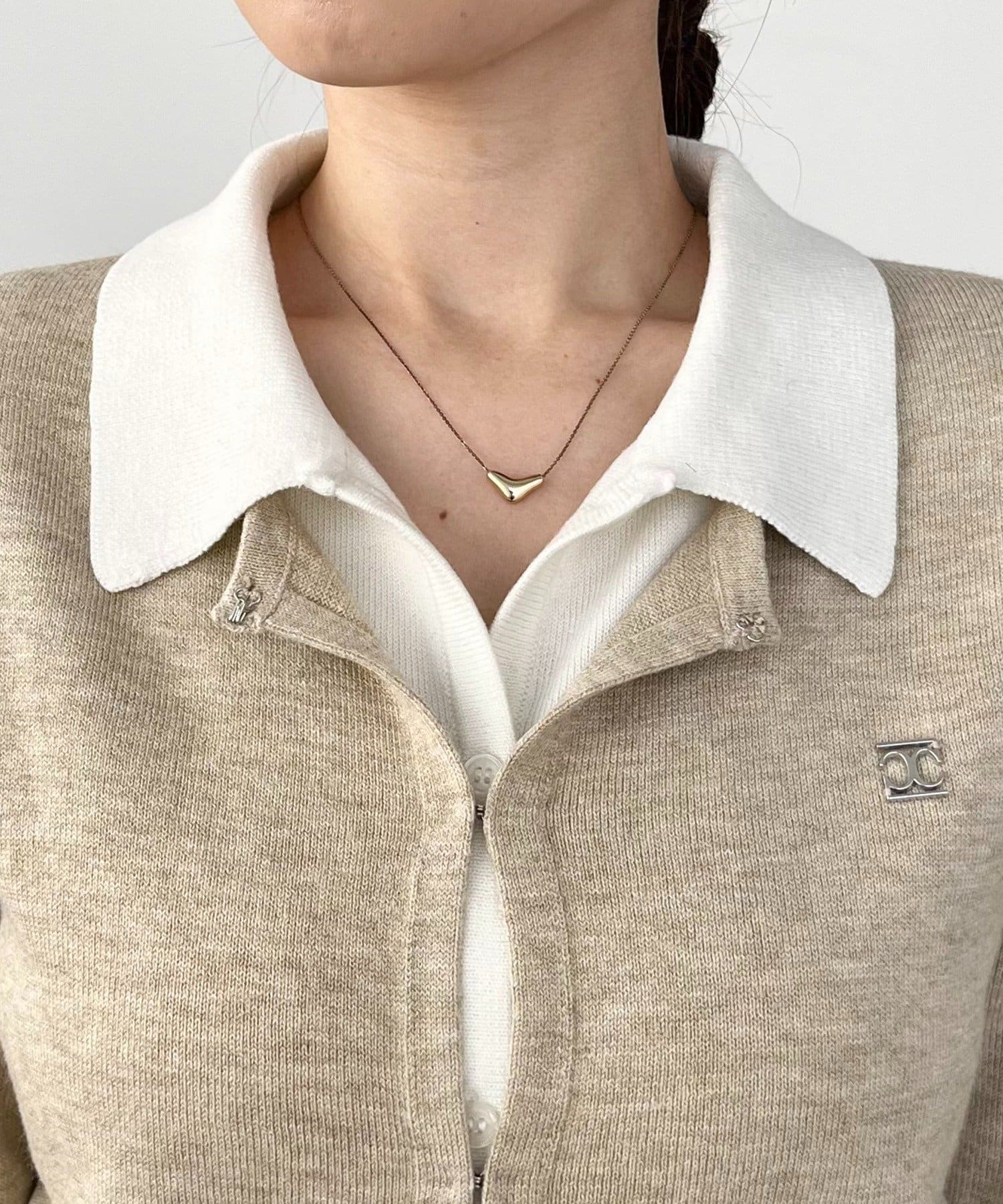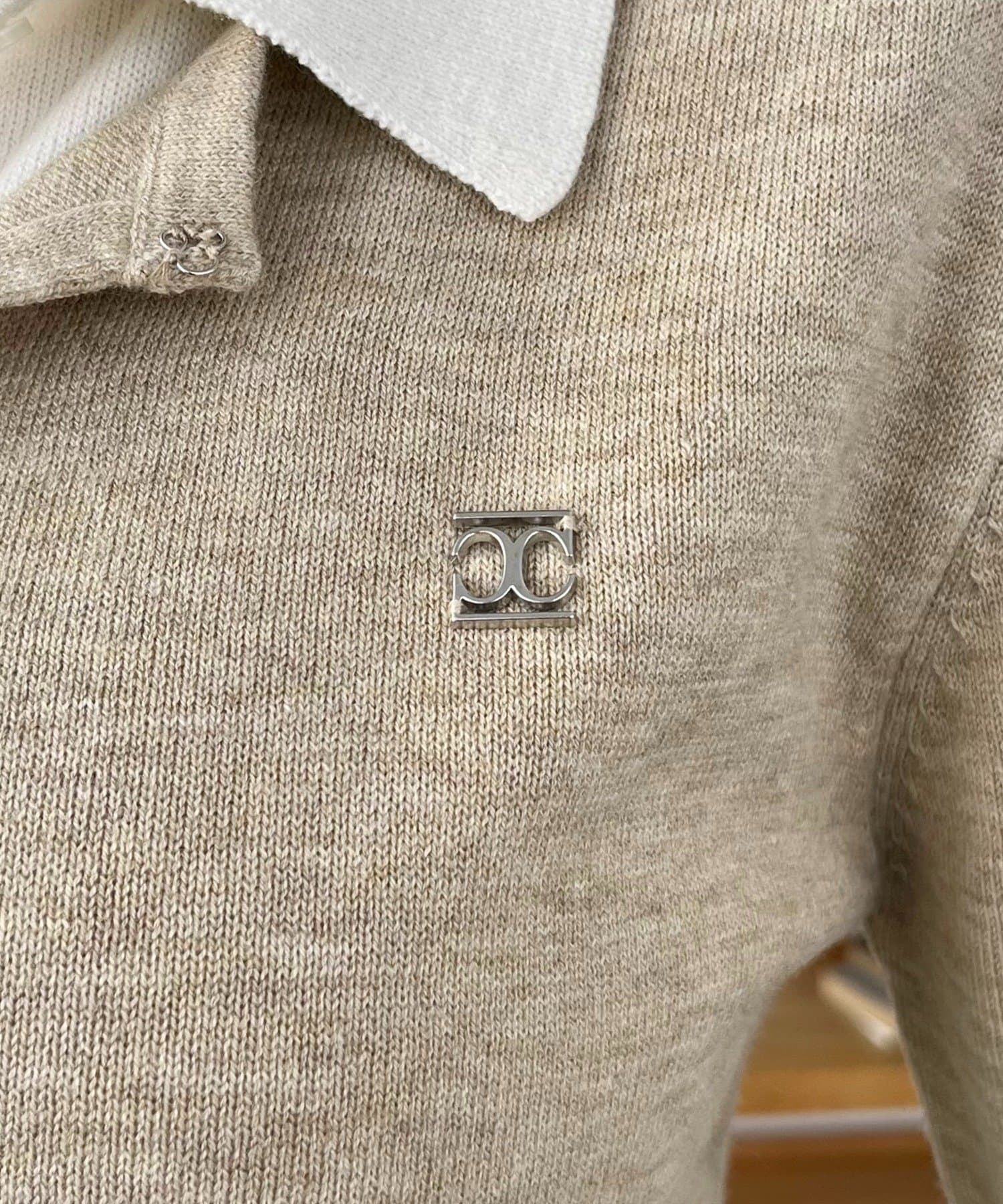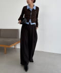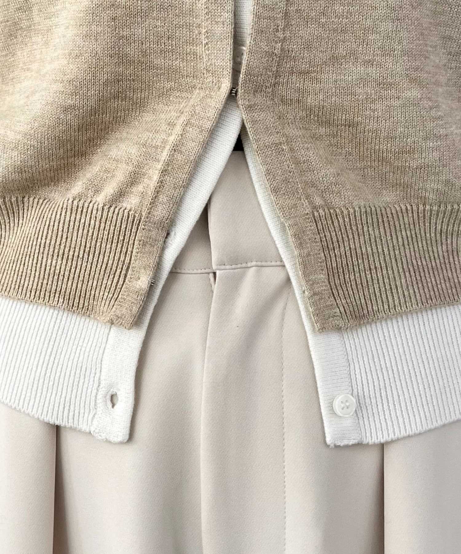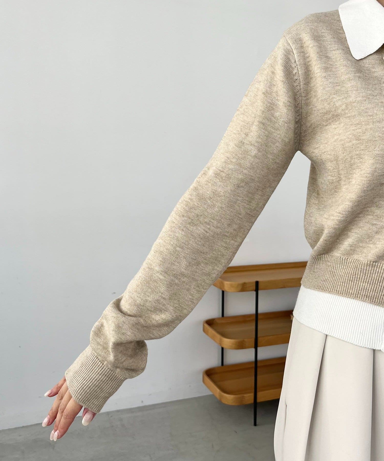 ・襟付きニットにホックカーディガンをレイヤードした着映えする1枚