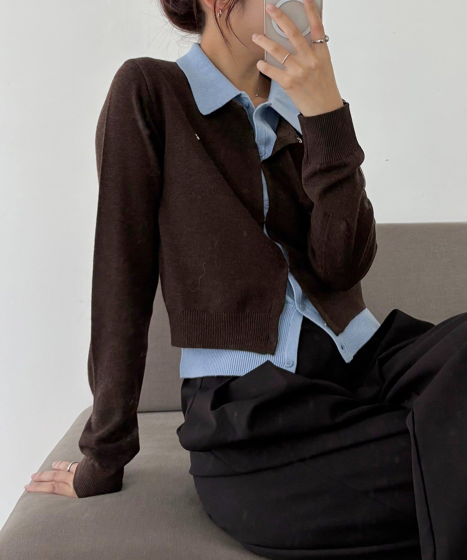 TOP > CAPRICIEUX LE'MAGE > レディース > トップス > ニット/セーター > レイヤードポロニットカーディガン