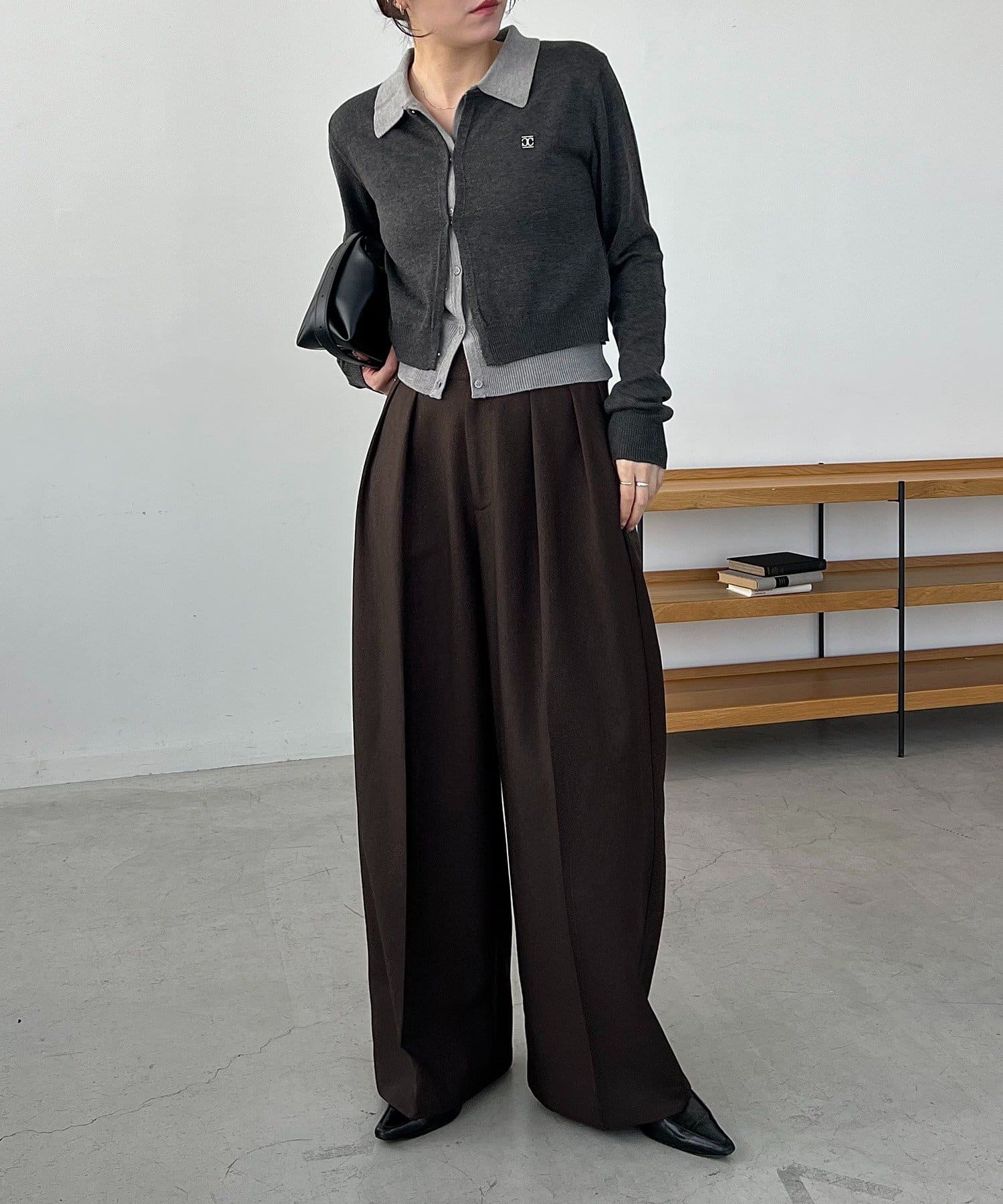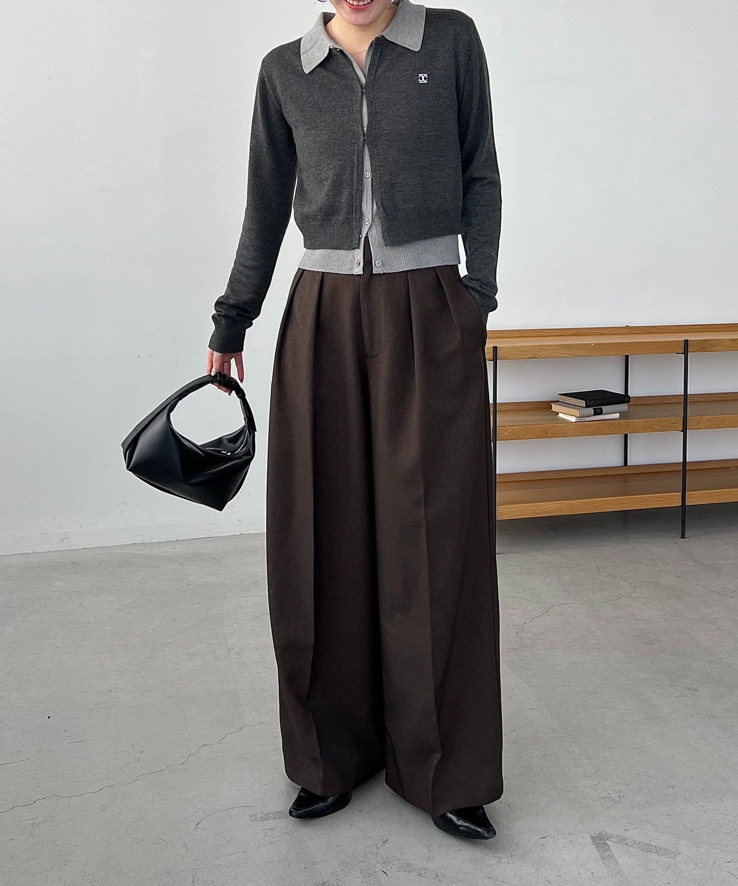 【チャコールグレー着用アイテム】2タックワイドパンツ