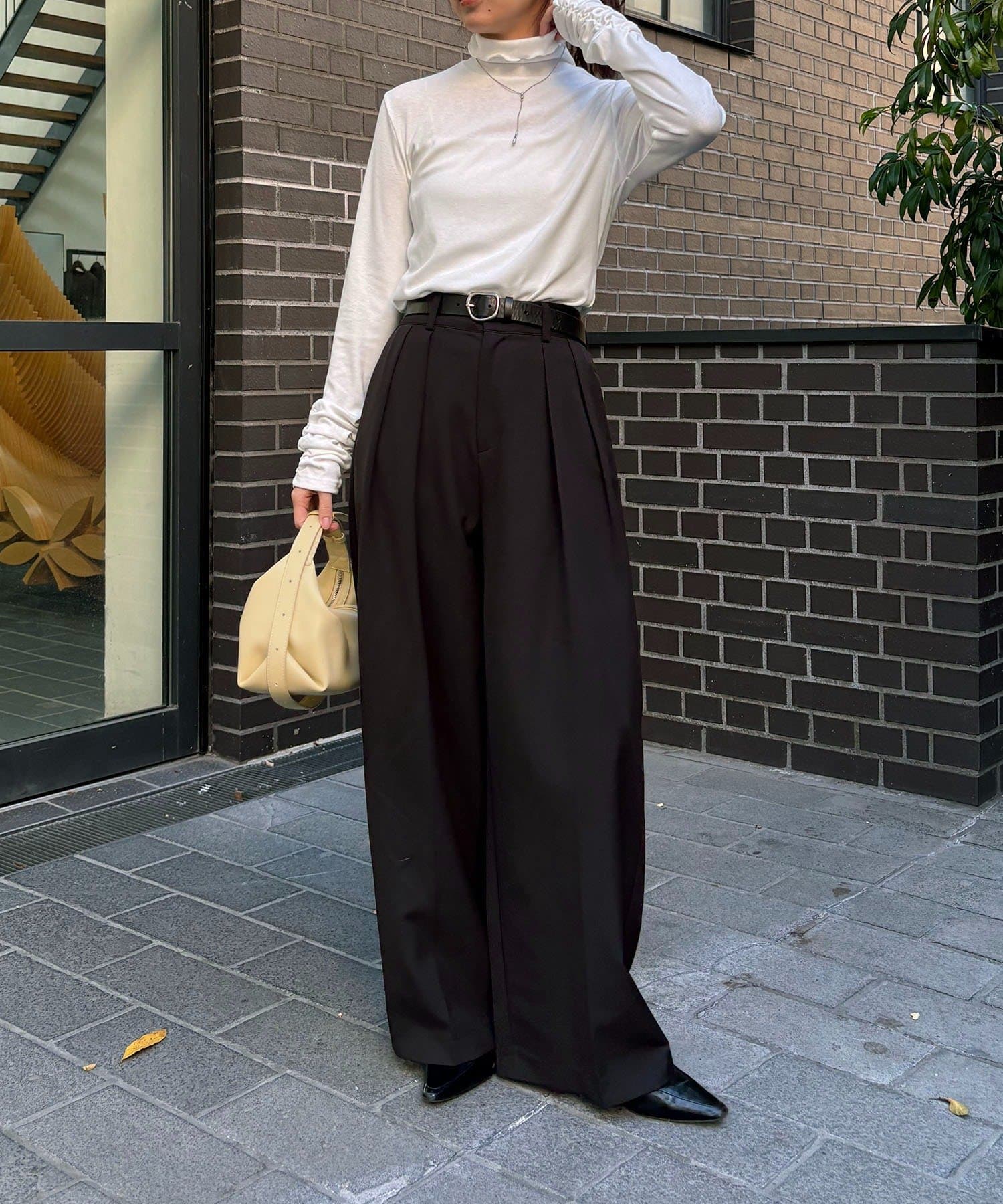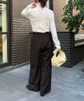 【オフホワイト着用アイテム①】pants:2タックワイドパンツ・outer:ペプラムジップカーディガン
