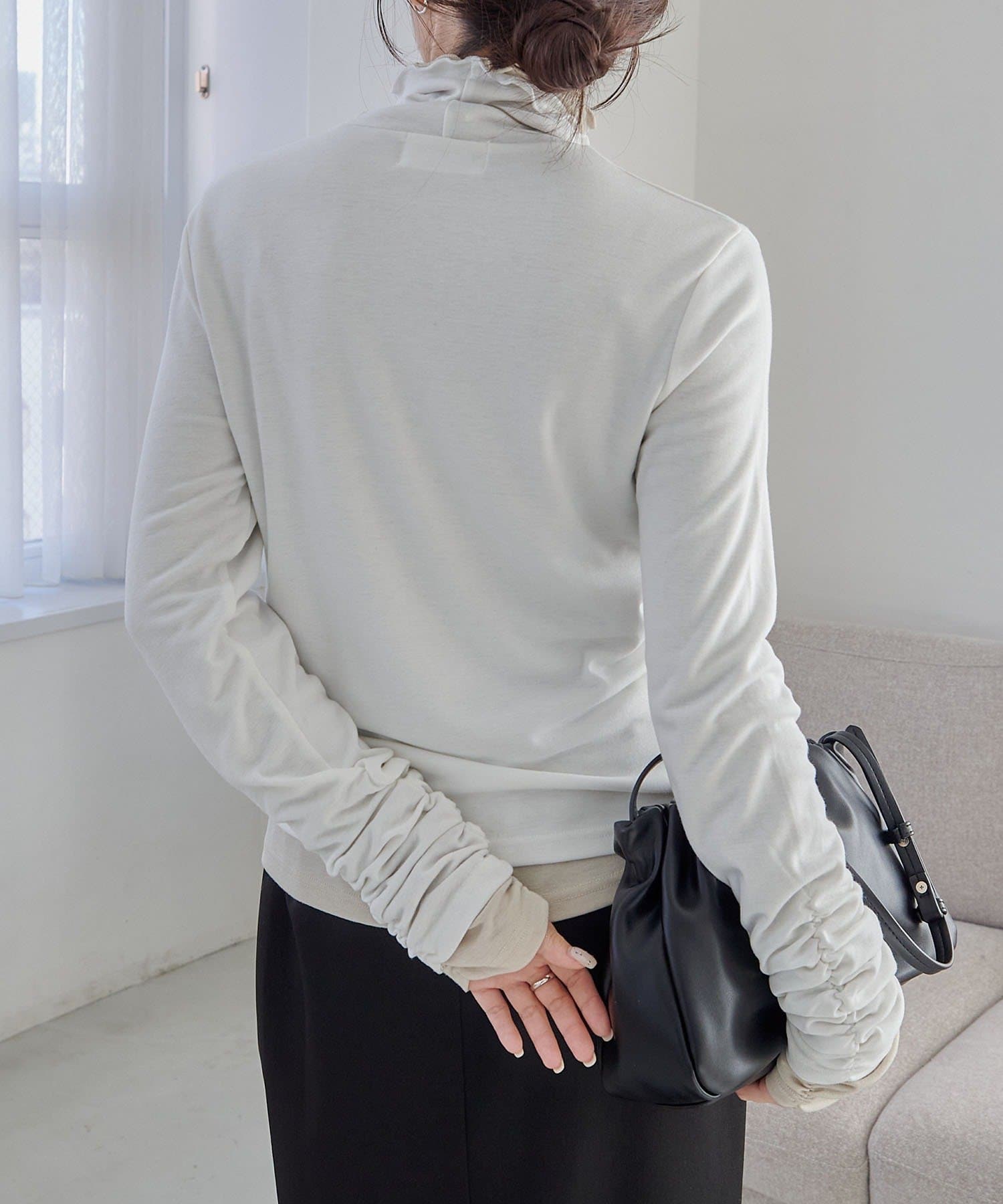 ・袖のギャザーデザインが1枚で着た時もアクセントに