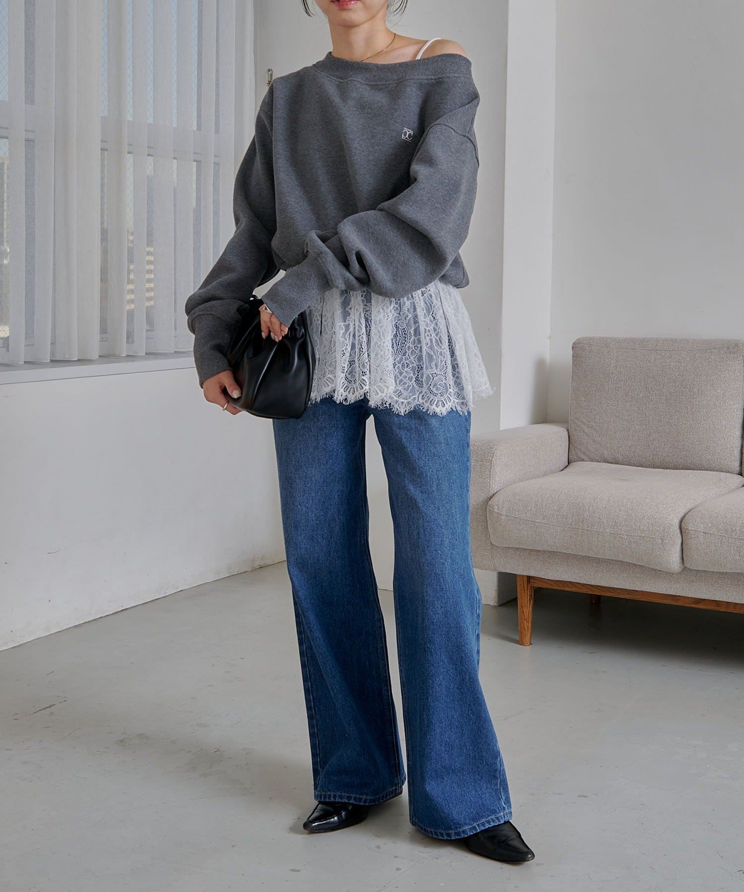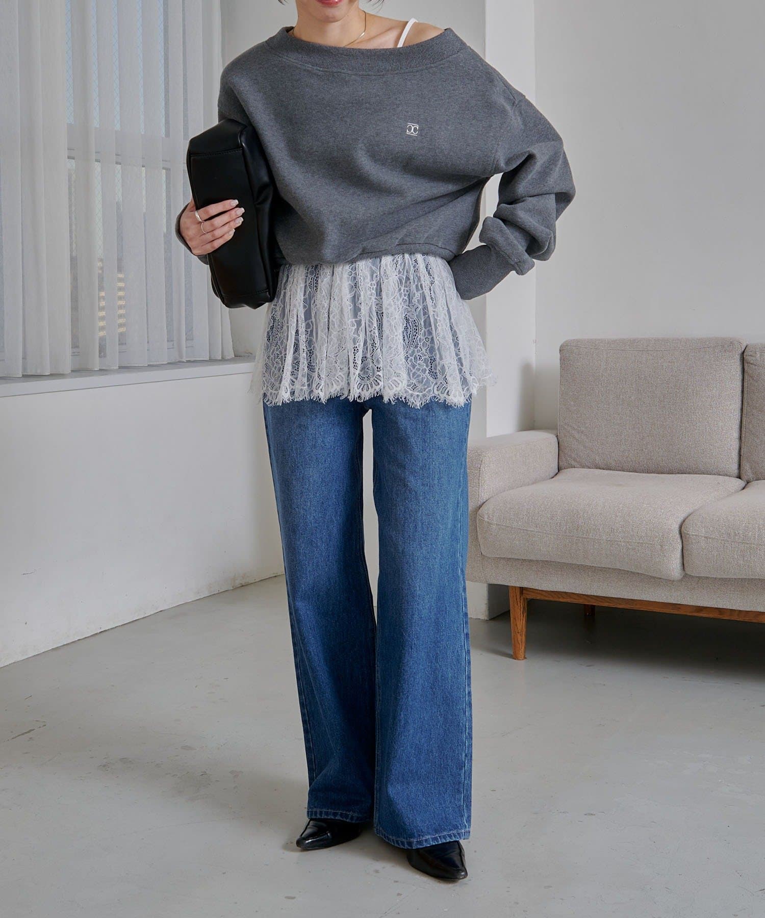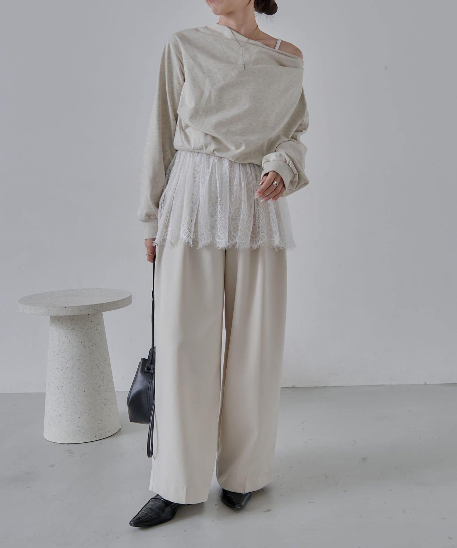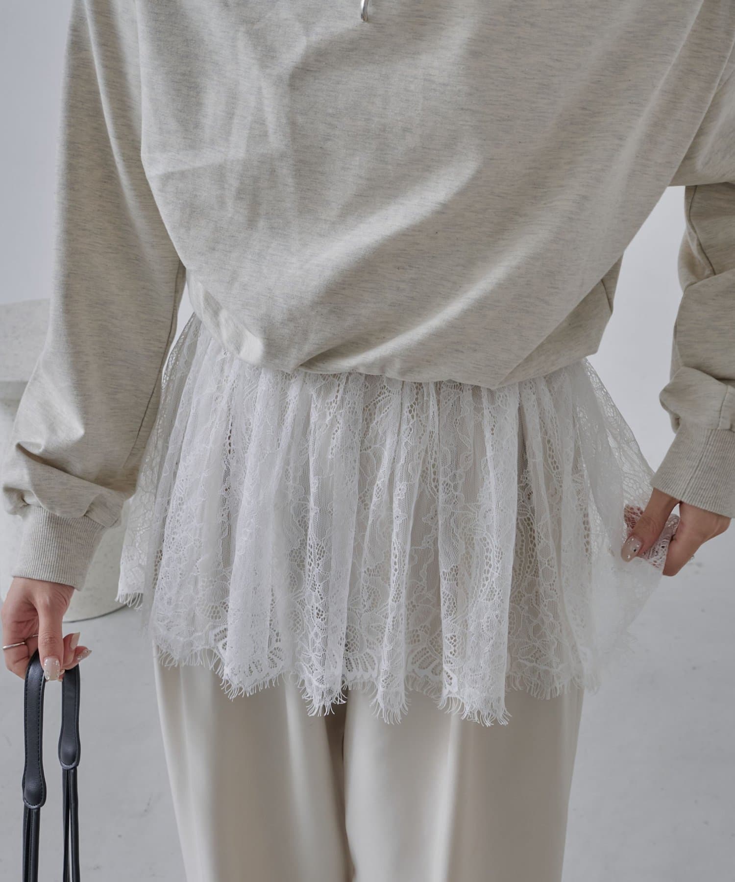 ・ニットやスウェットの裾からレースを見せるレイヤードコーデがおすすめ