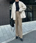 【ライトベージュ着用アイテム②】ピンタックフレアパンツ