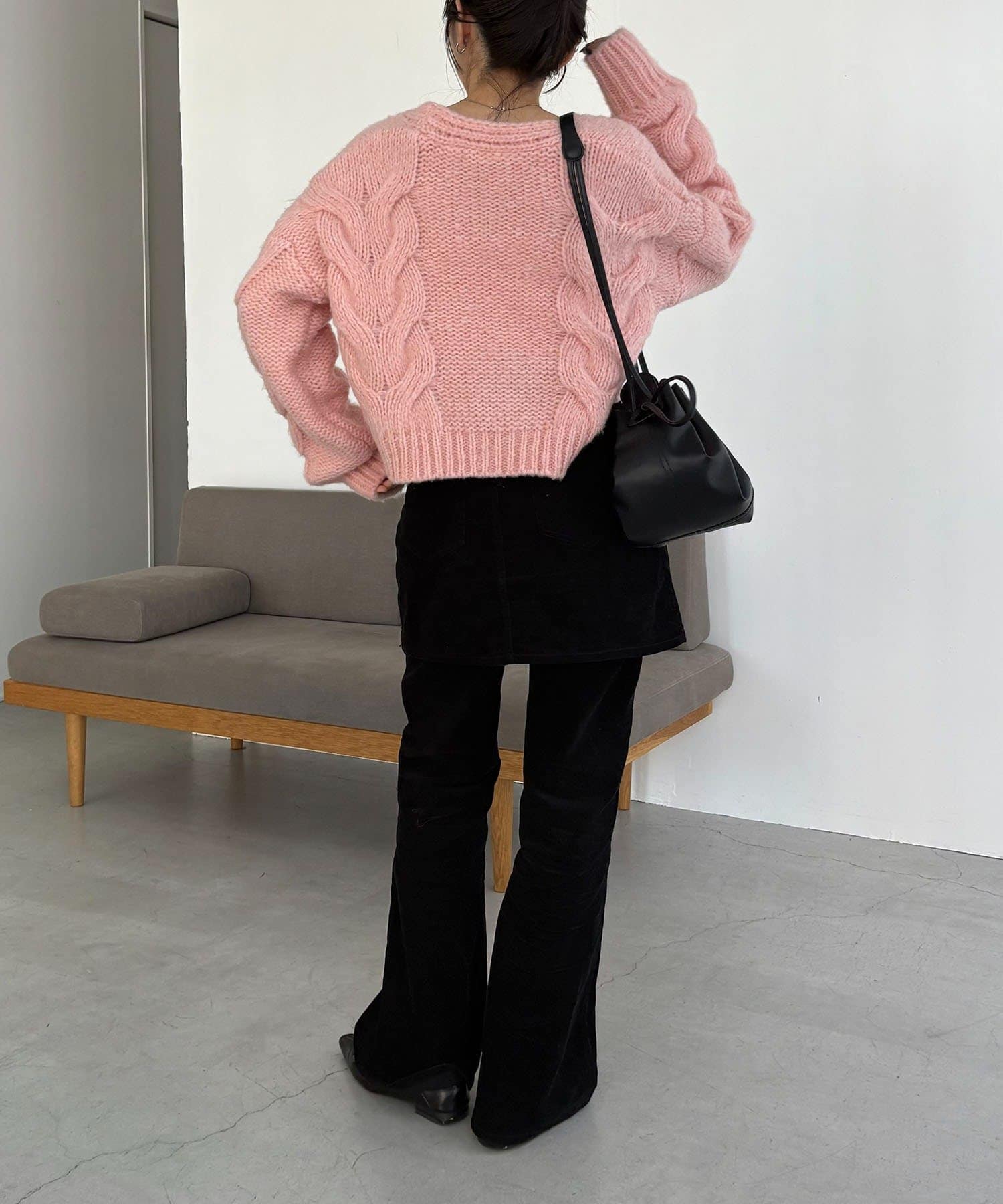 【ピンク着用アイテム】skirt:コーデュロイ台形スカート、pants:コーデュロイフレアパンツ