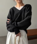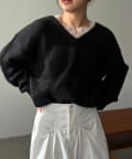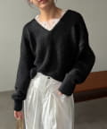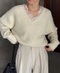 ・インナーが見えにくいVネックラインで顔周りにすっきり感をプラス