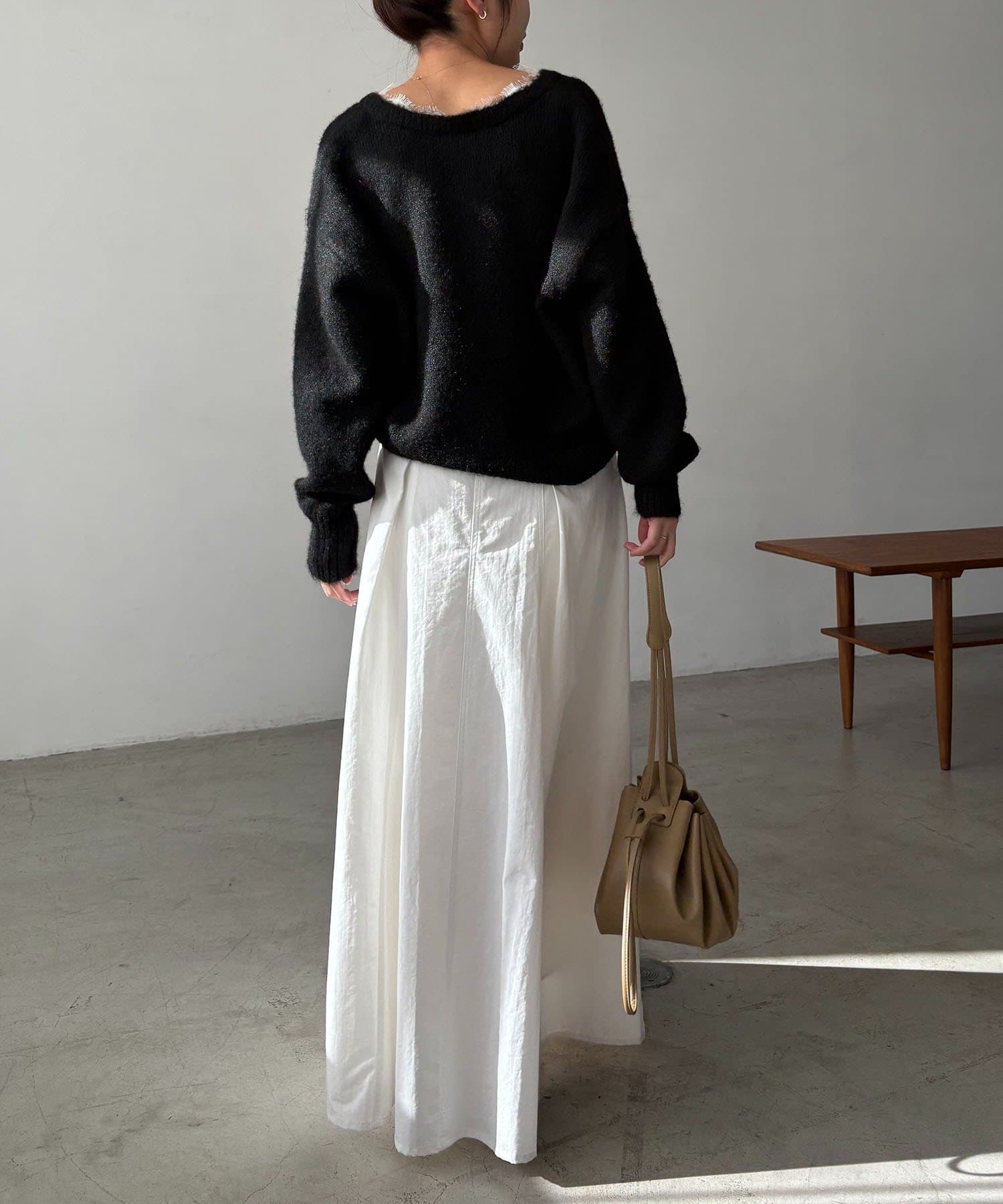 ・マキシスカート合わせの女性らしいスタイリングもおすすめ