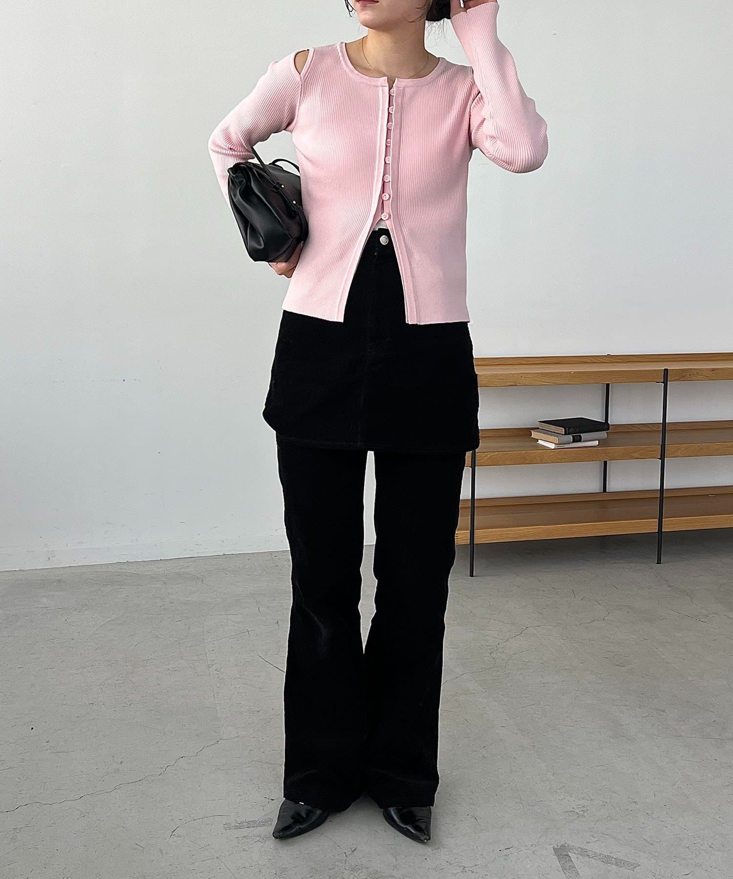 【ピンク着用アイテム②】pants:コーデュロイフレアパンツ・skirt:コーデュロイ台形スカート