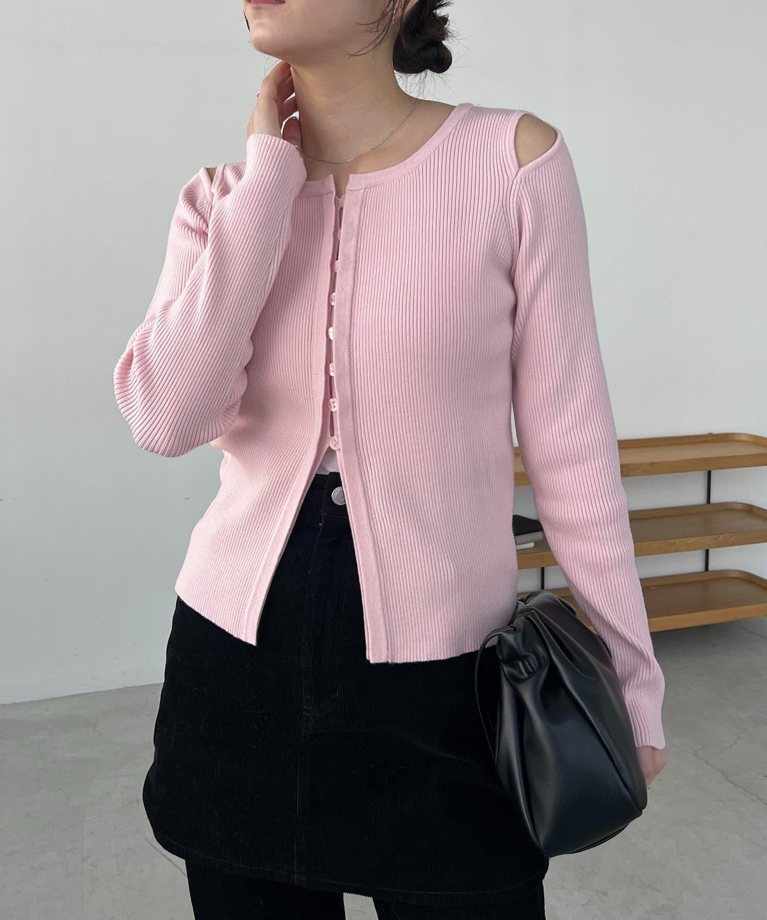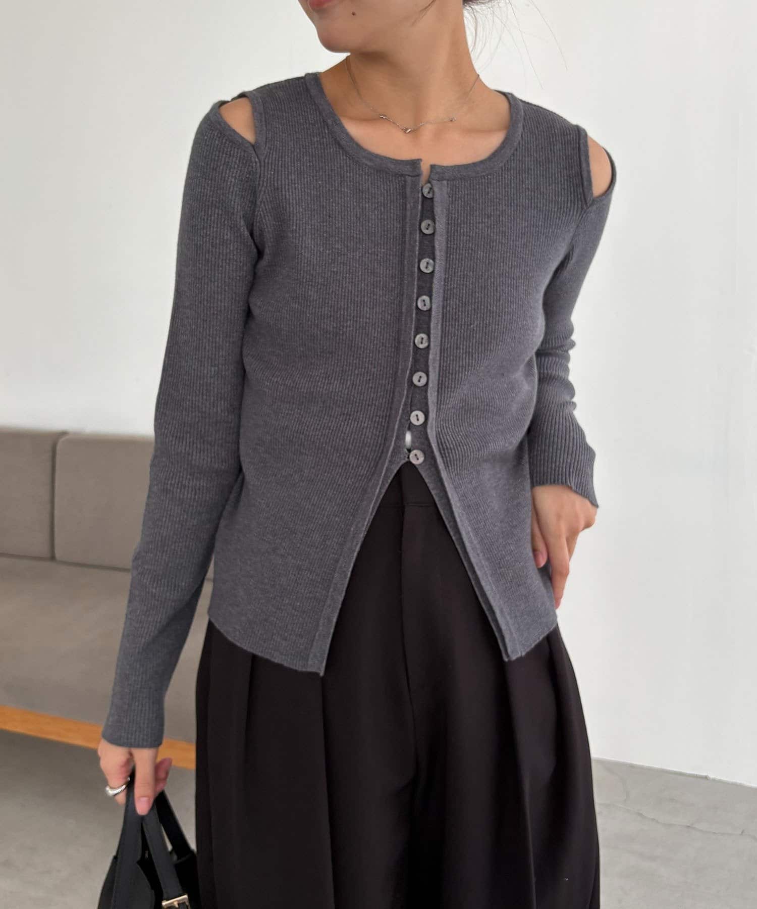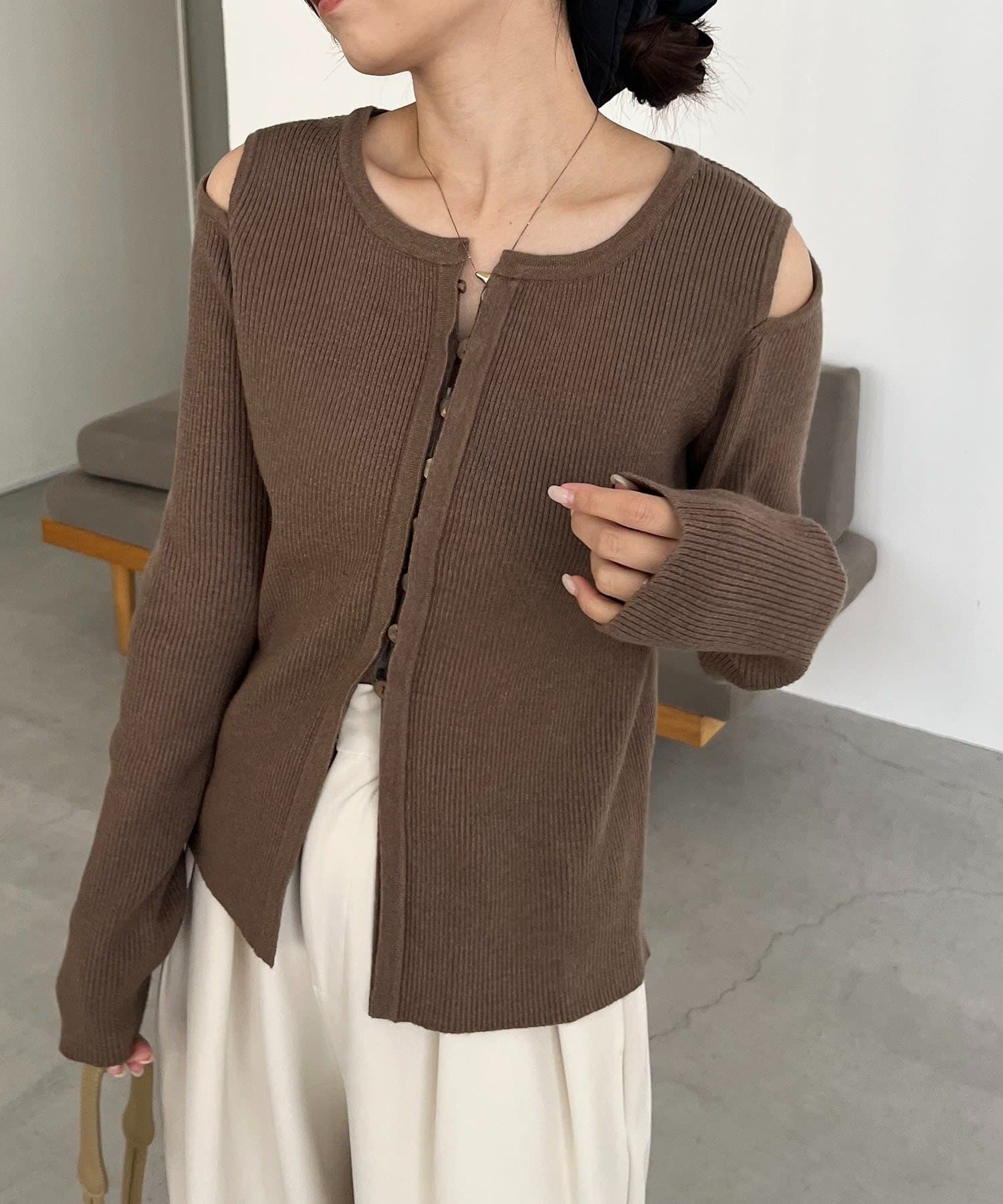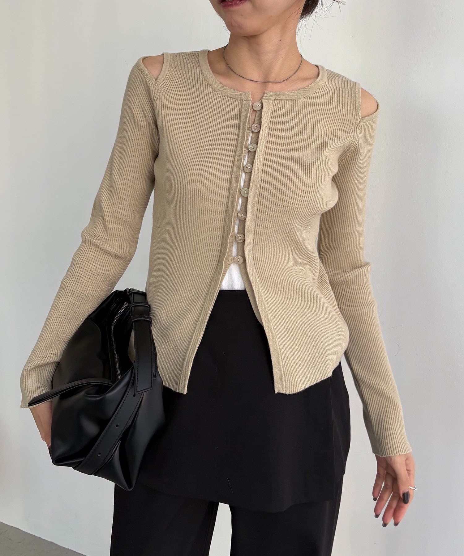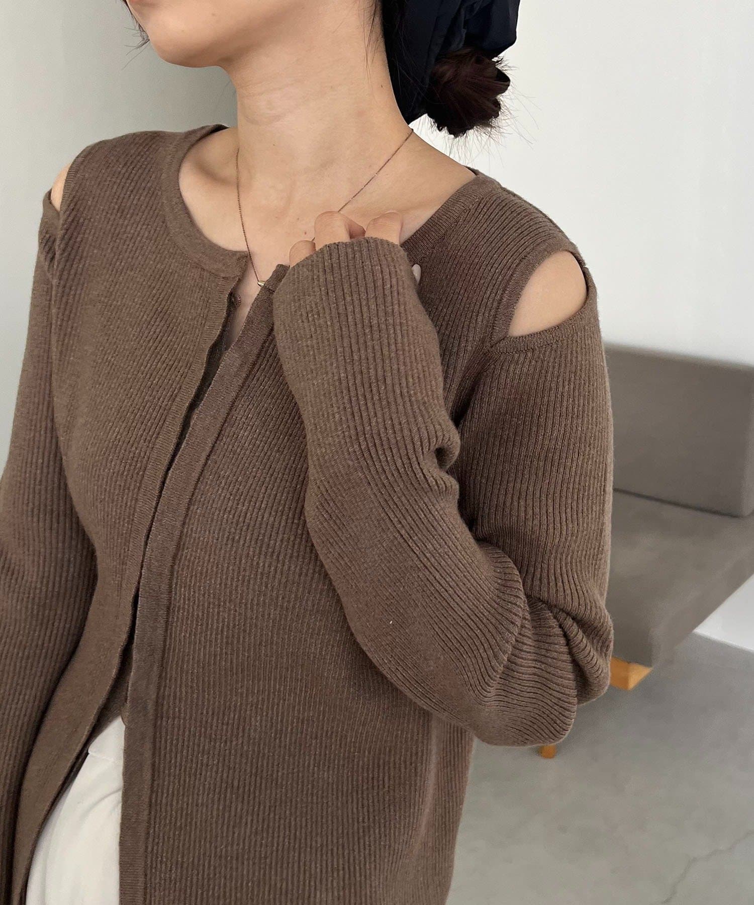 【CAPRICIEUX LE'MAGE】肩開きセッパボタンカーディガン