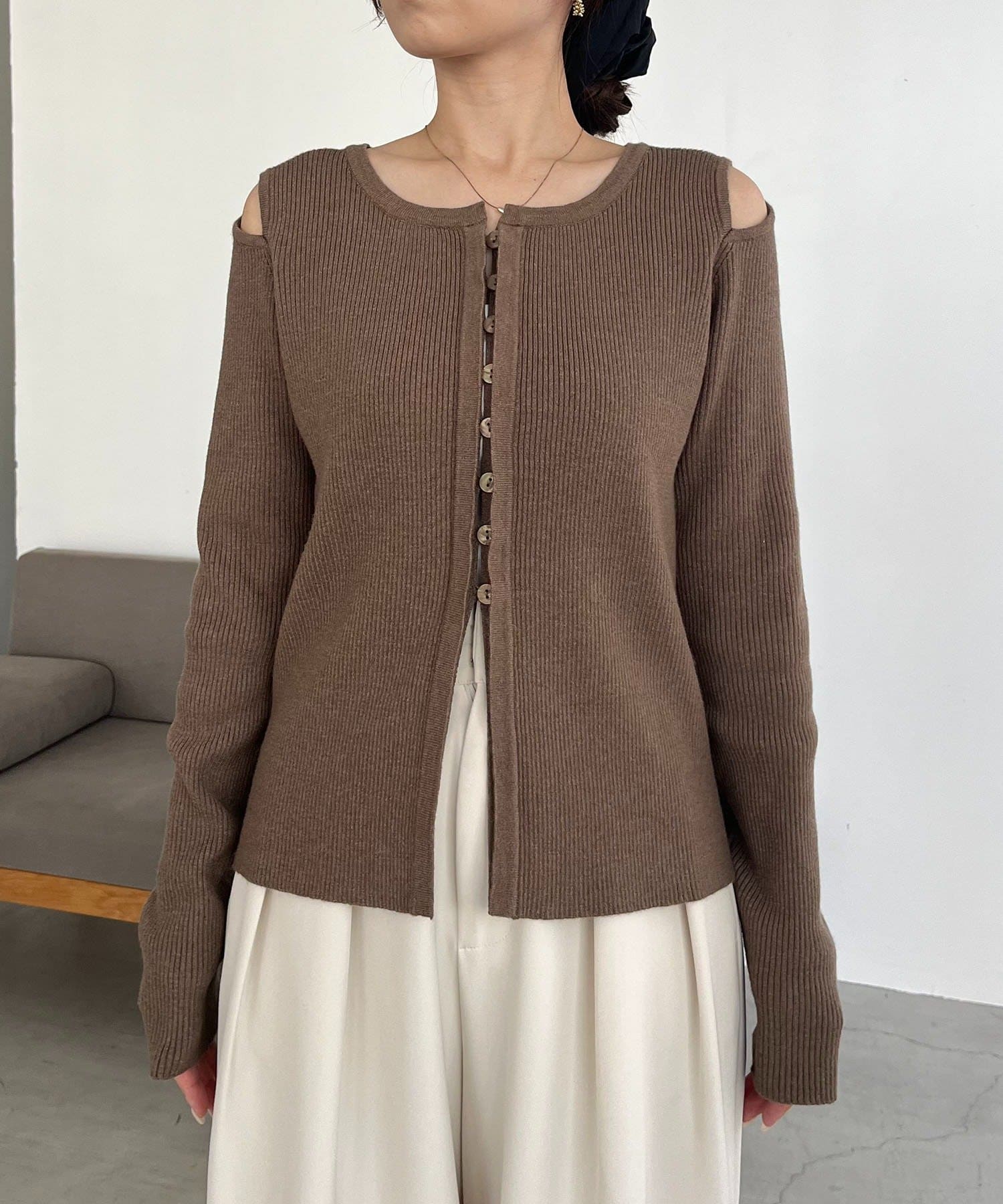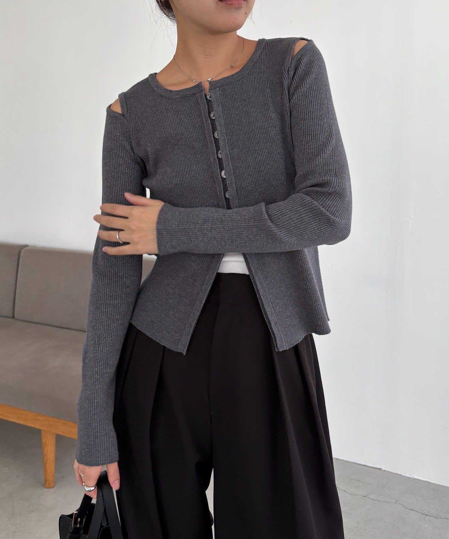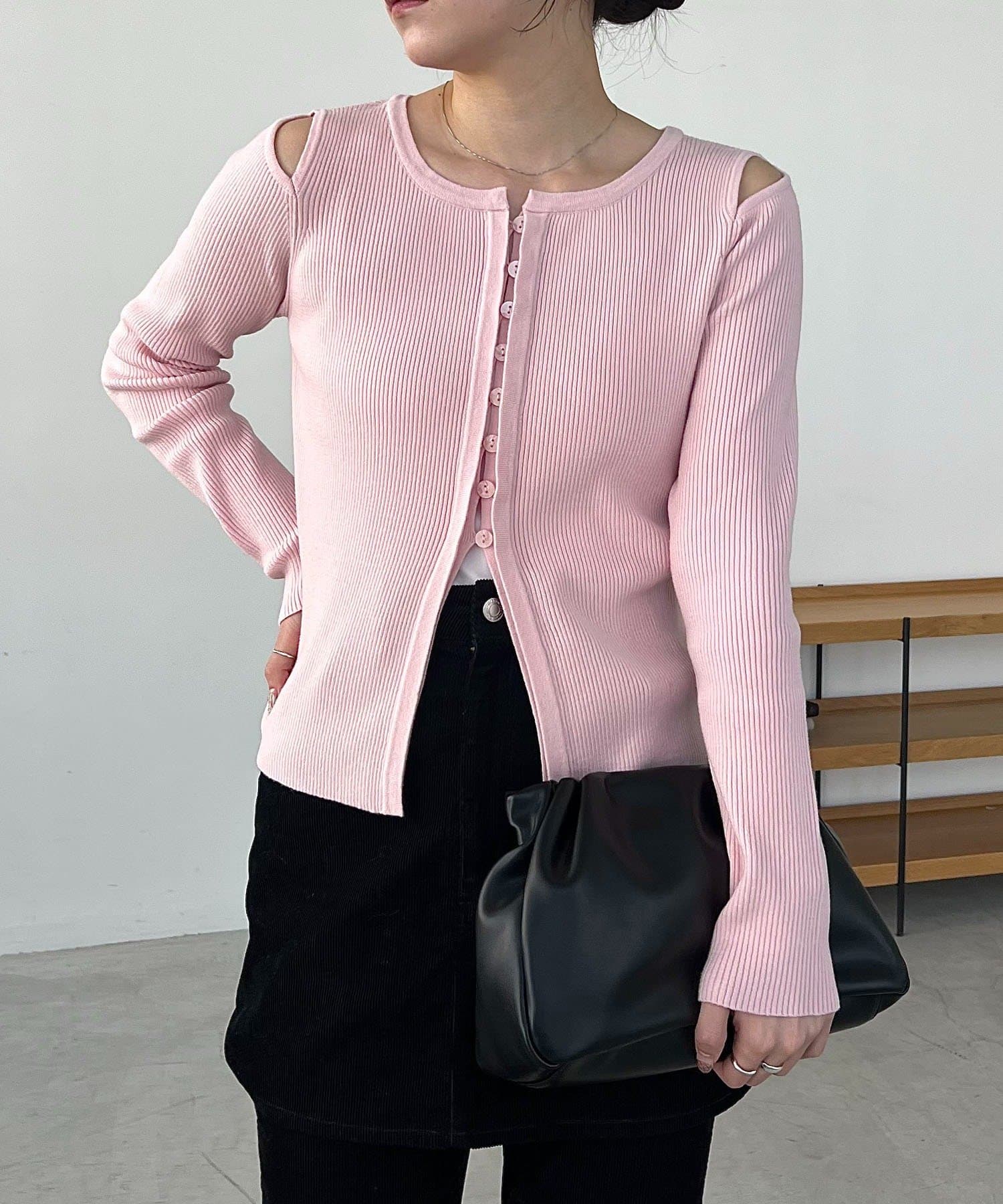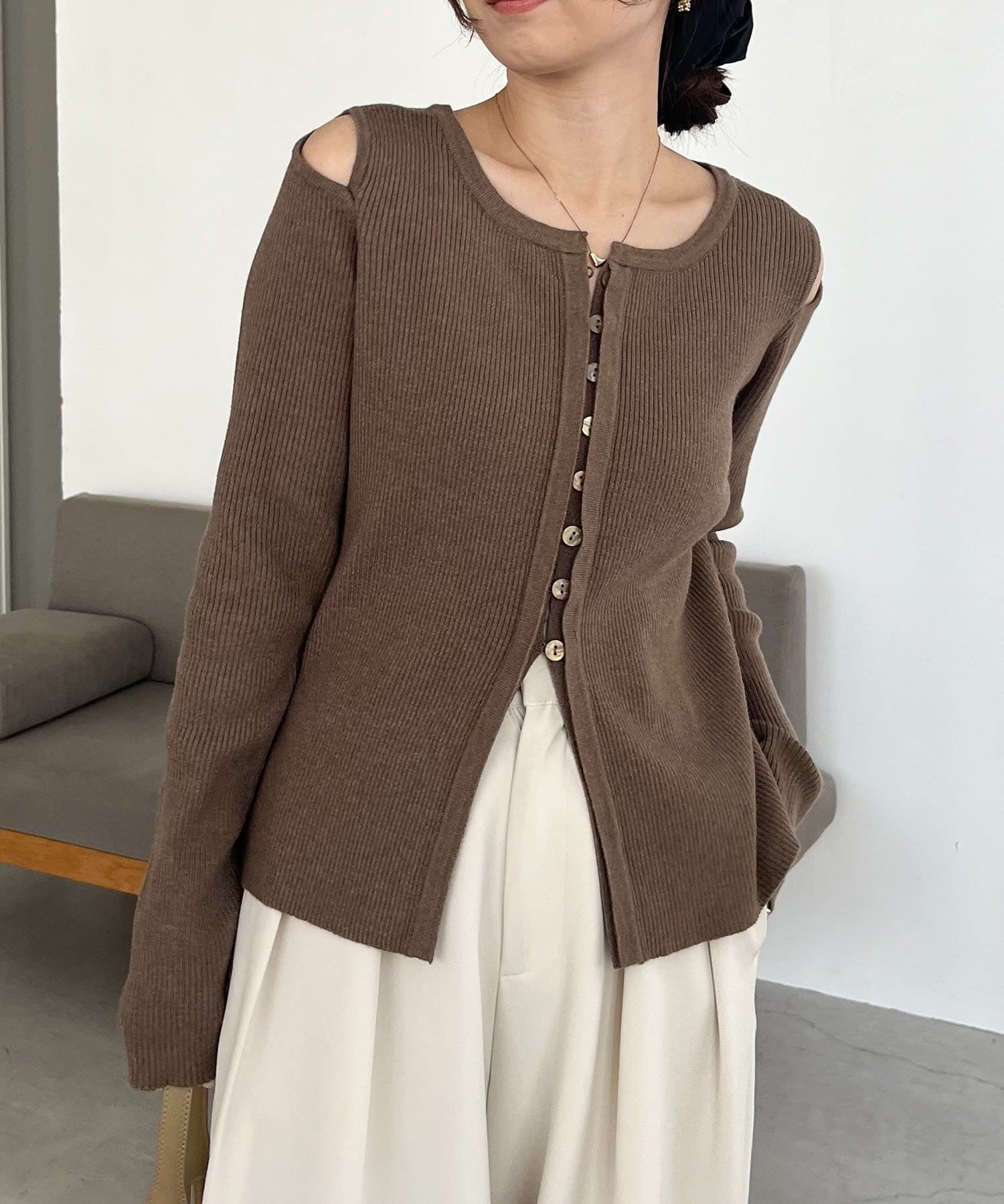 【CAPRICIEUX LE'MAGE】肩開きセッパボタンカーディガン