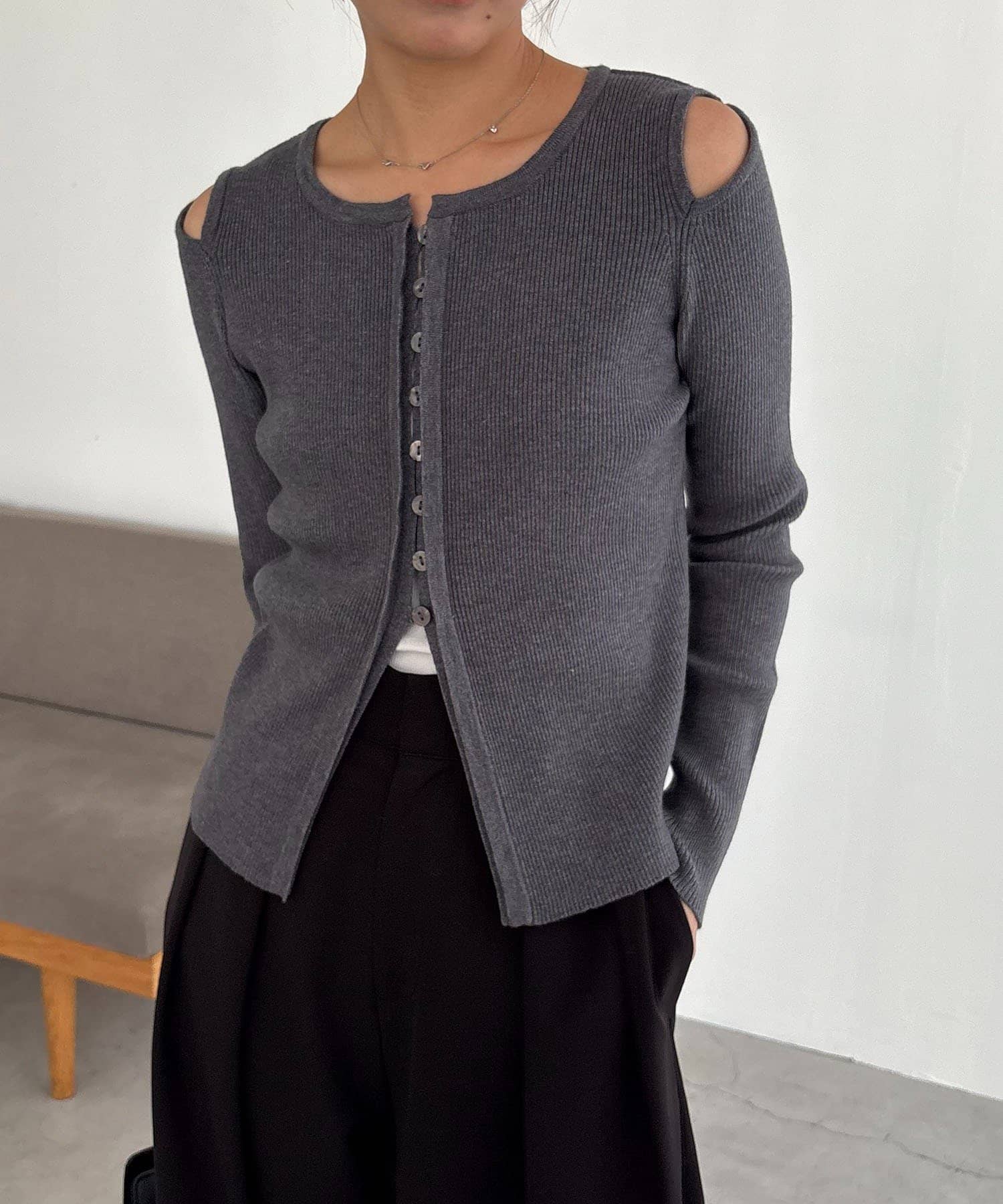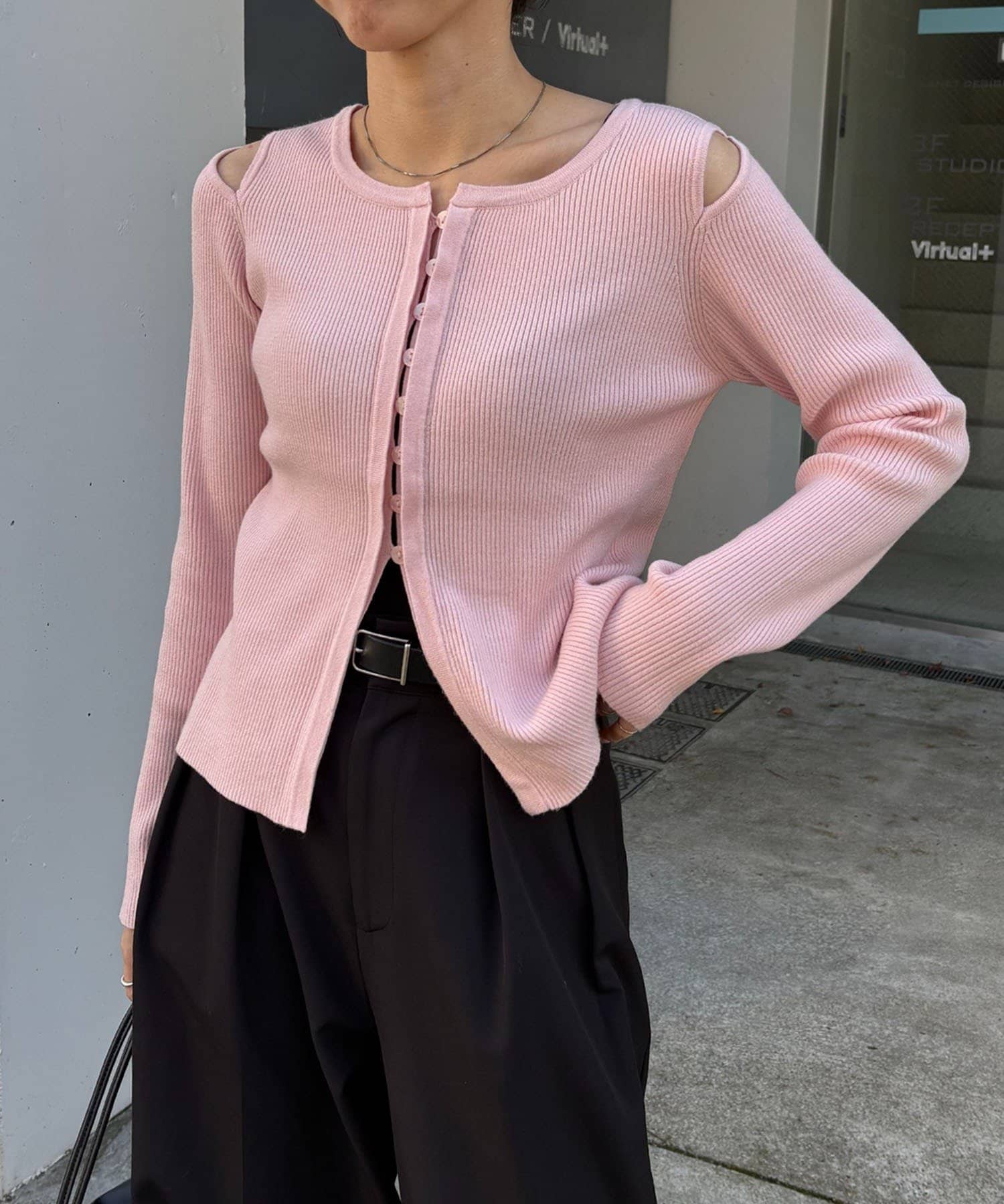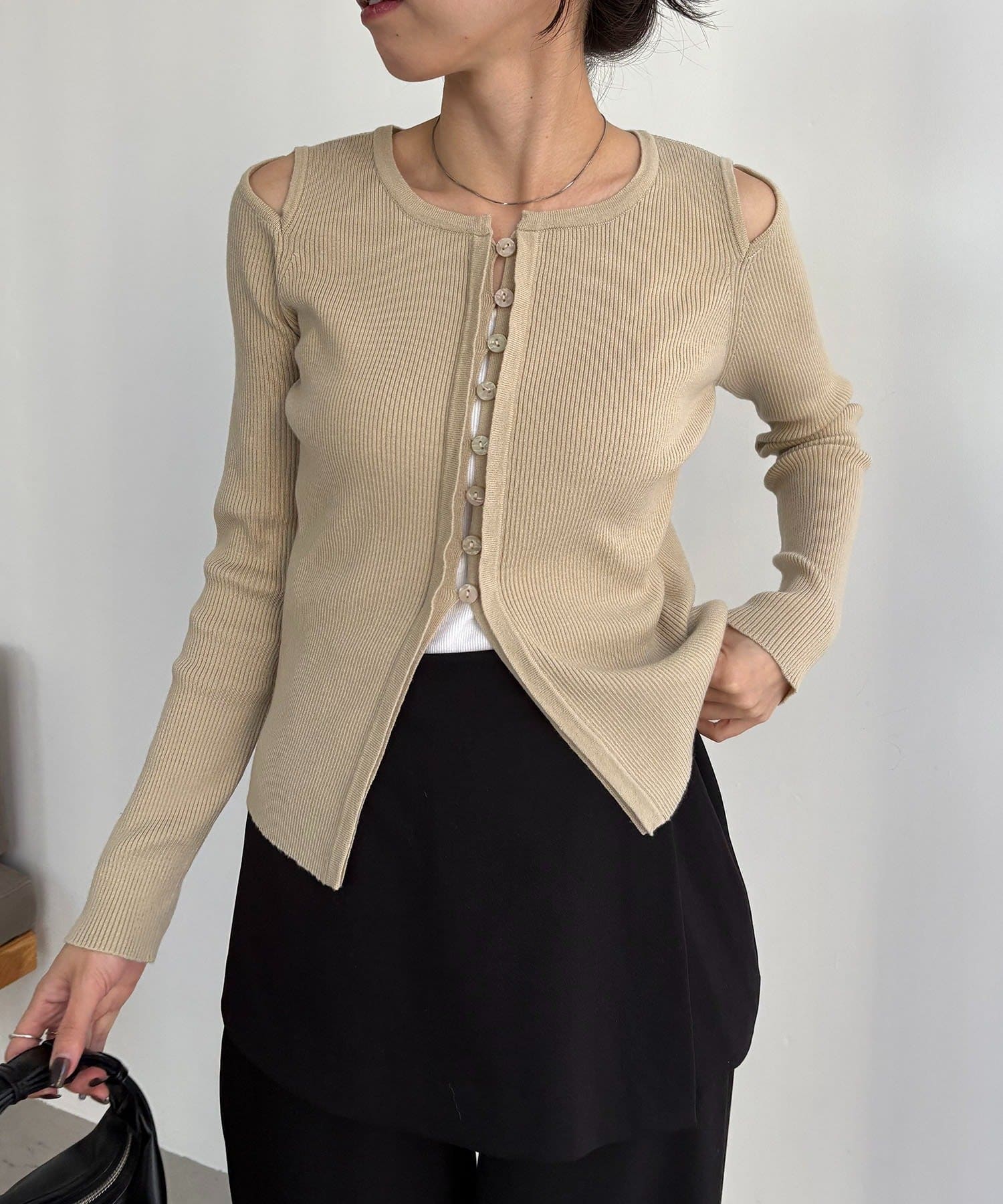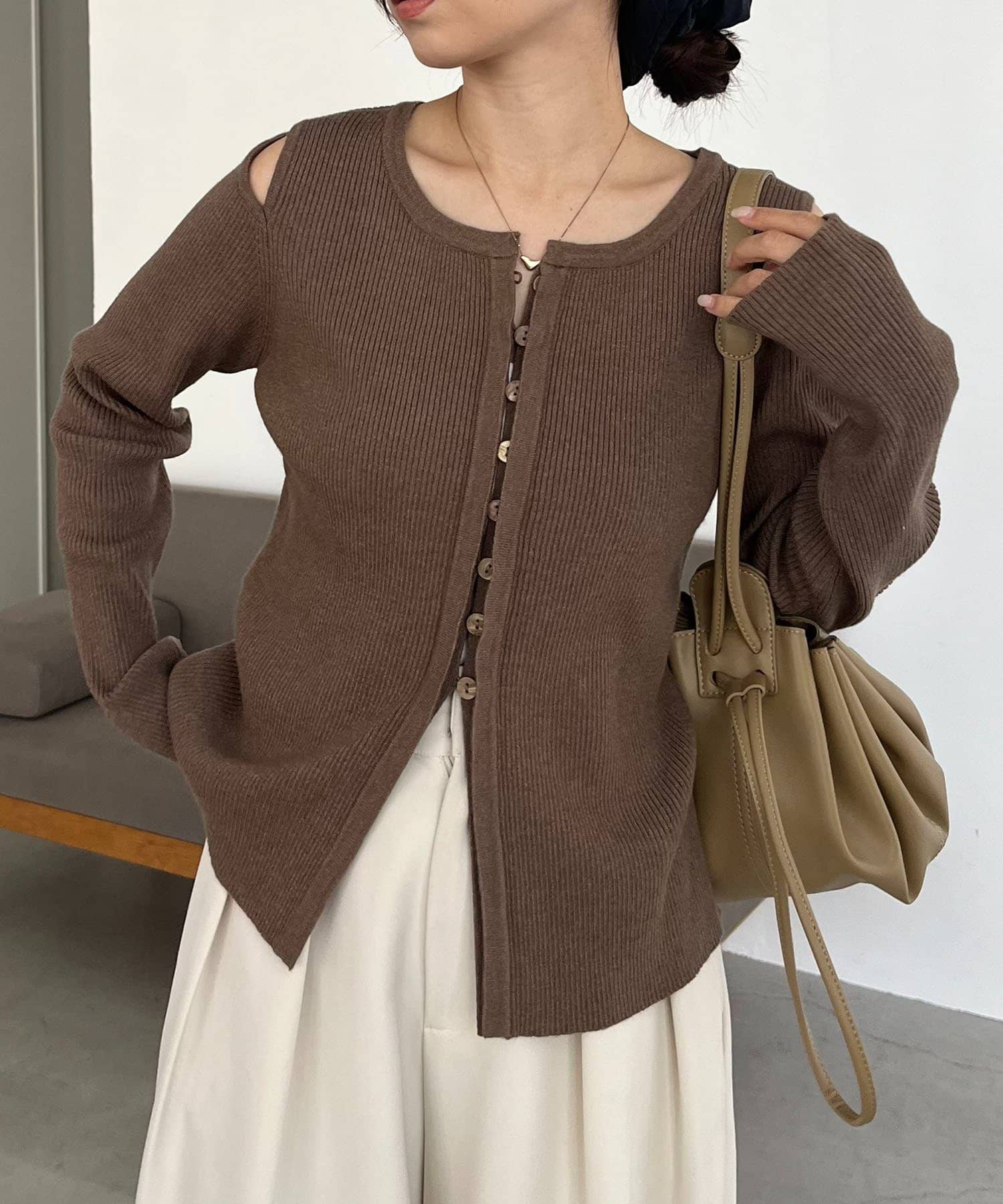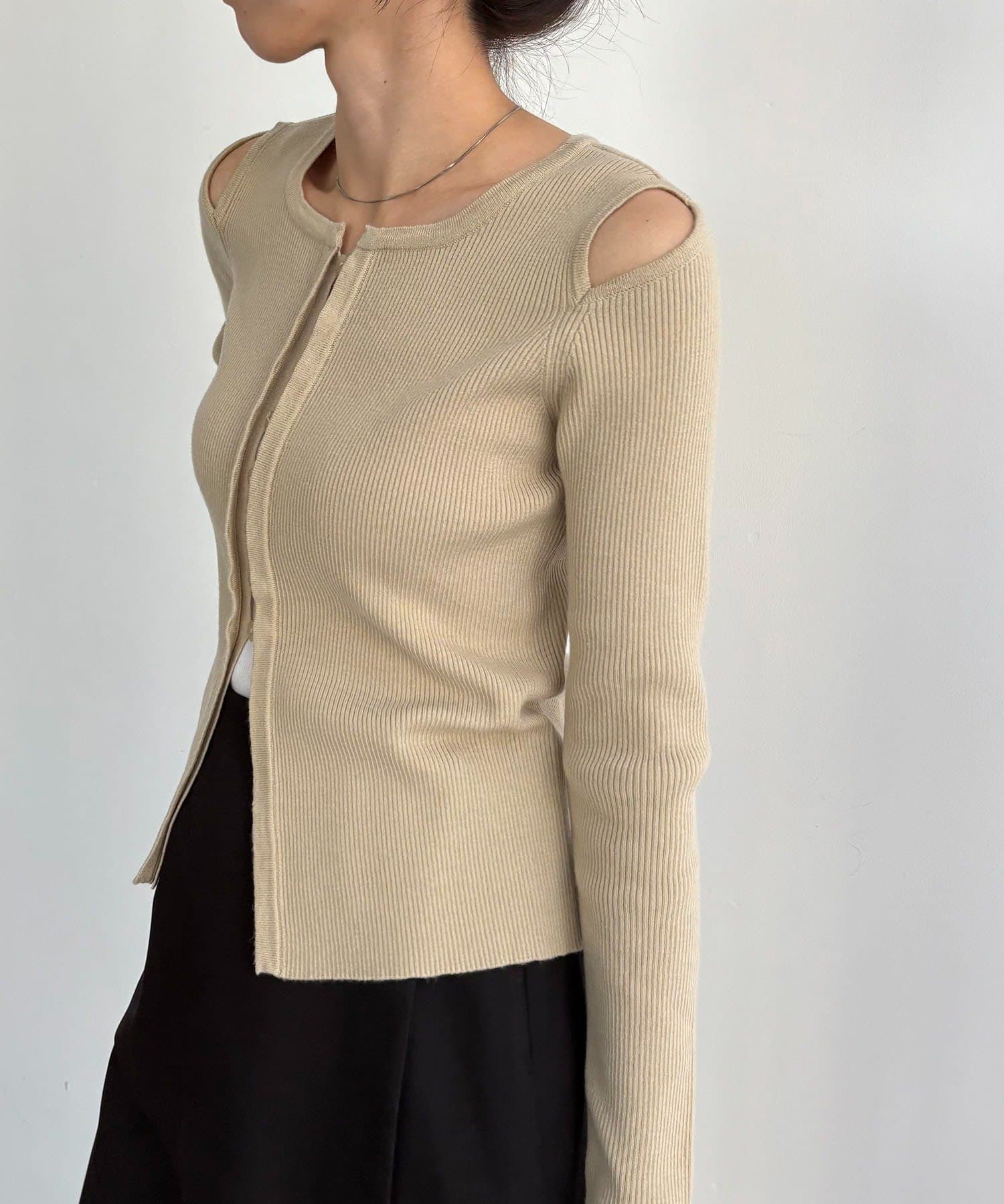 【CAPRICIEUX LE'MAGE】肩開きセッパボタンカーディガン
