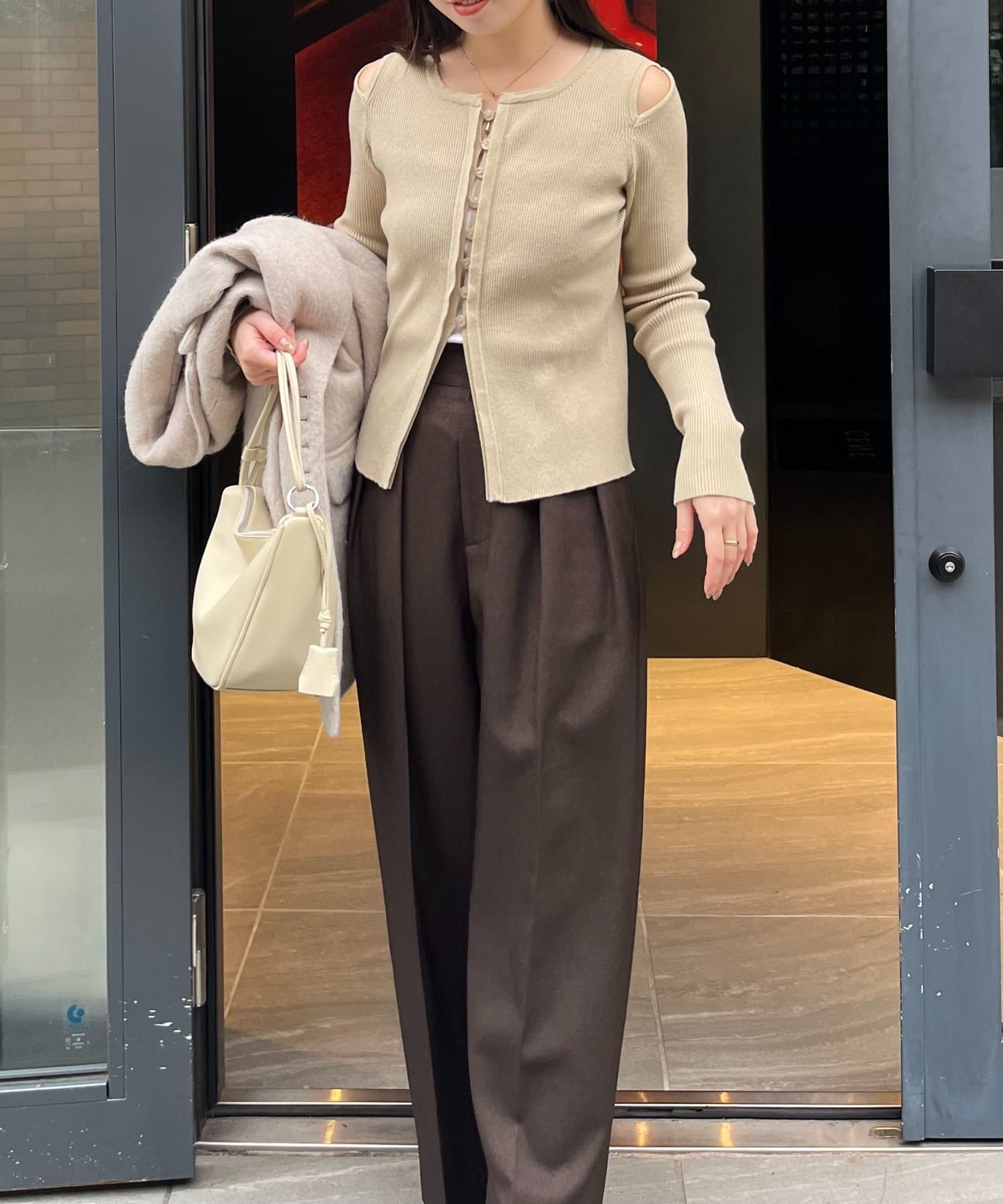【ベージュ着用アイテム①】2タックワイドパンツ