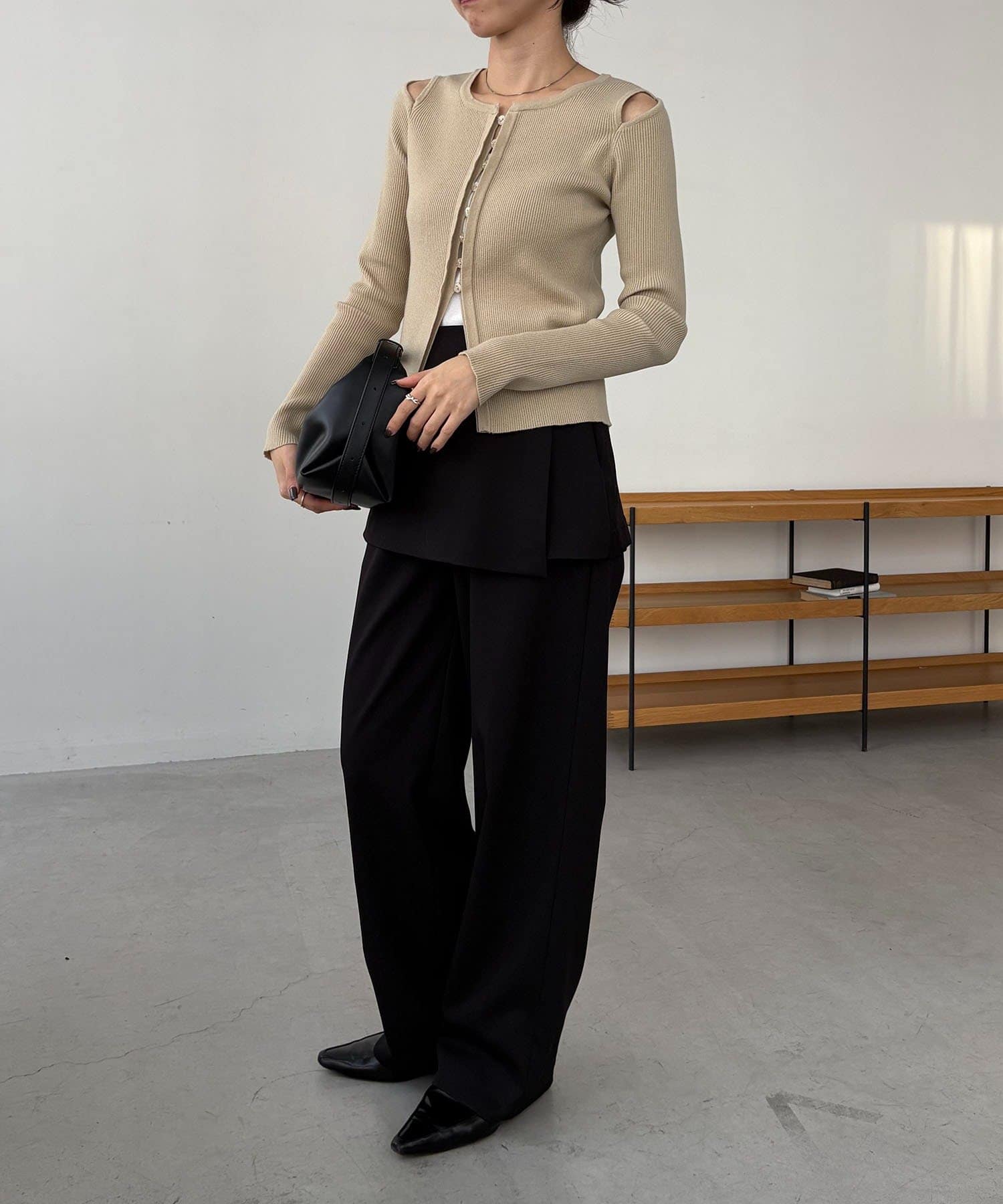 ・裾がスリット開きでインしなくても抜け感のあるスタイリングに