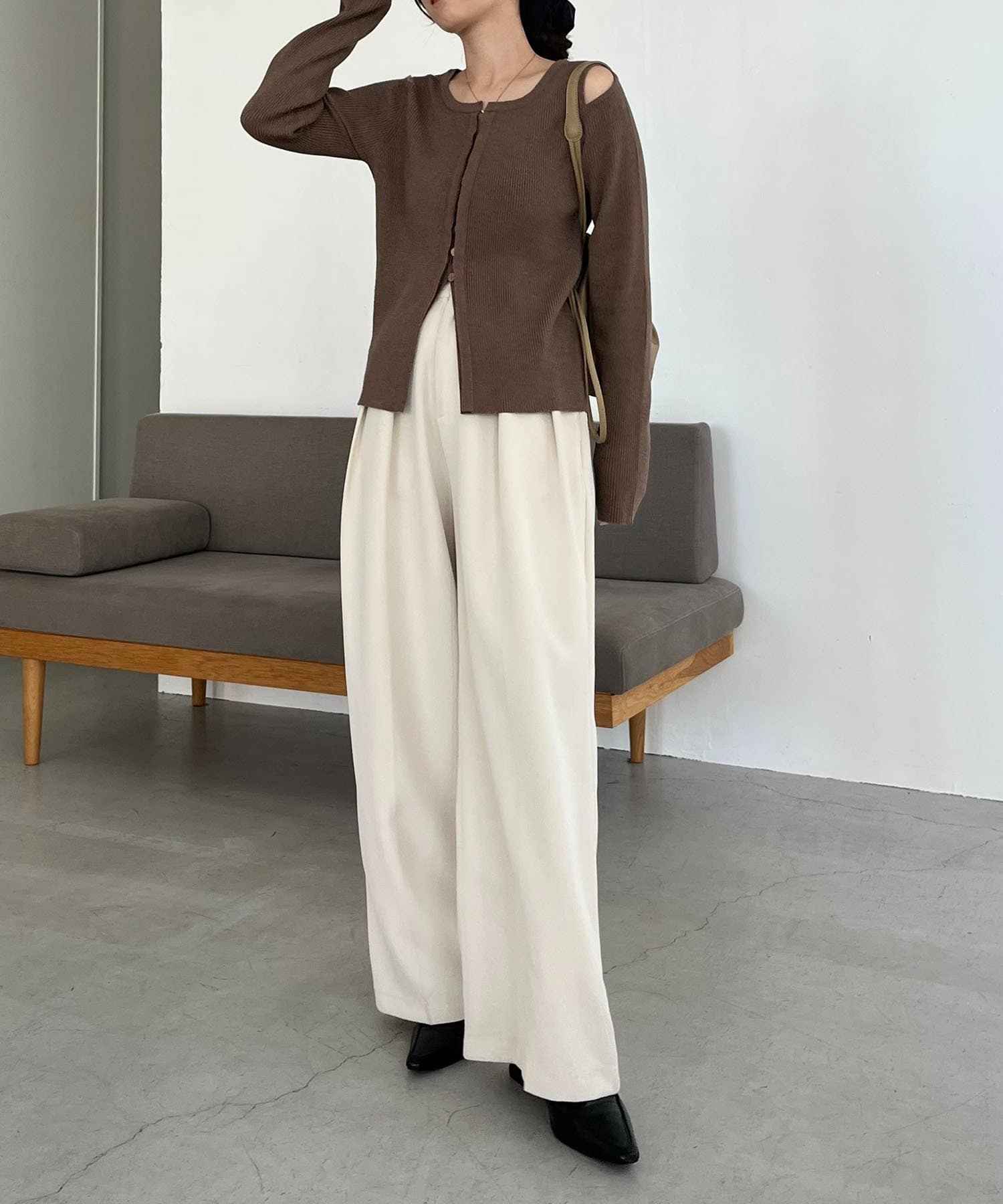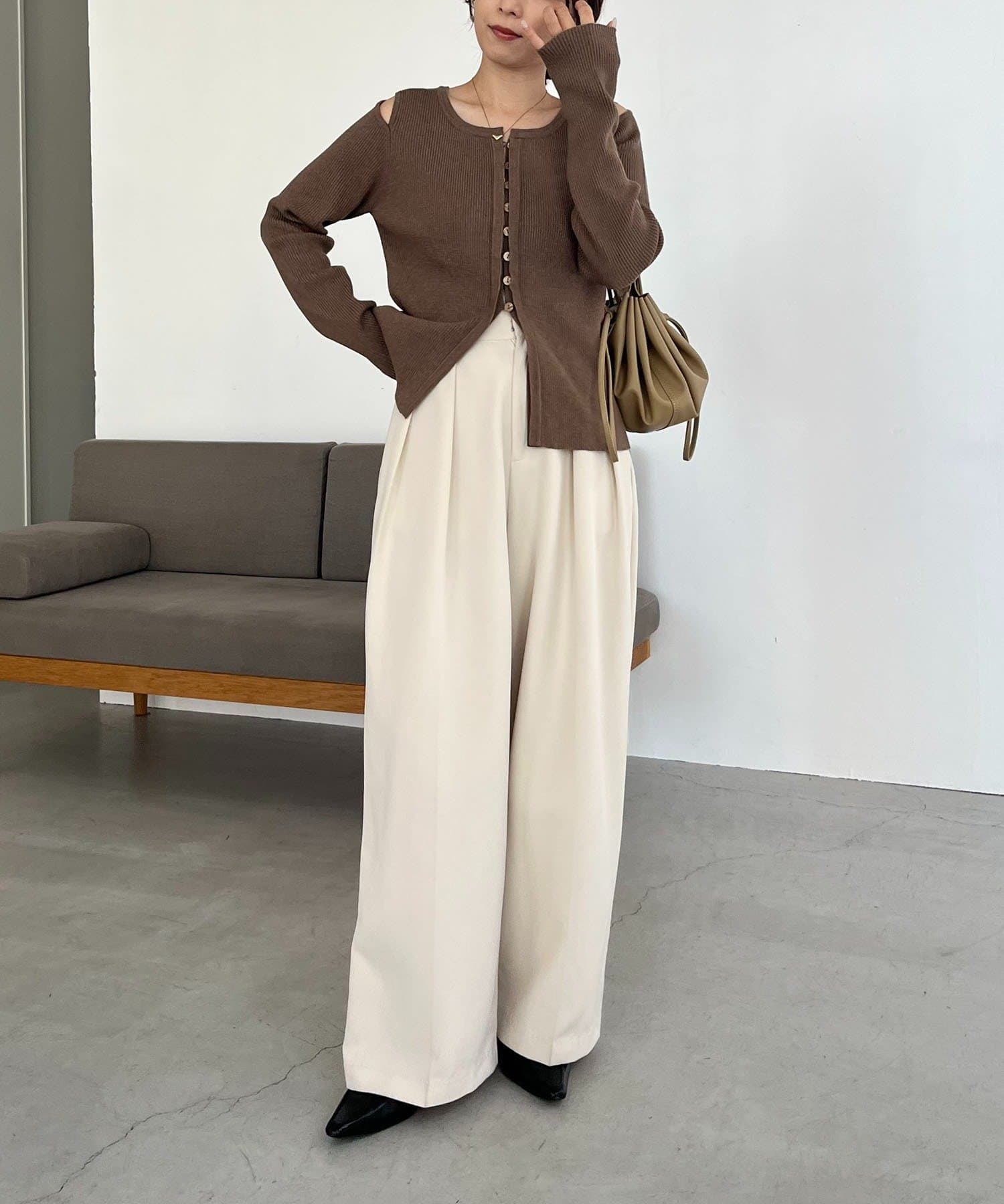 【ブラウン着用アイテム】2タックワイドパンツ