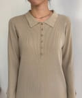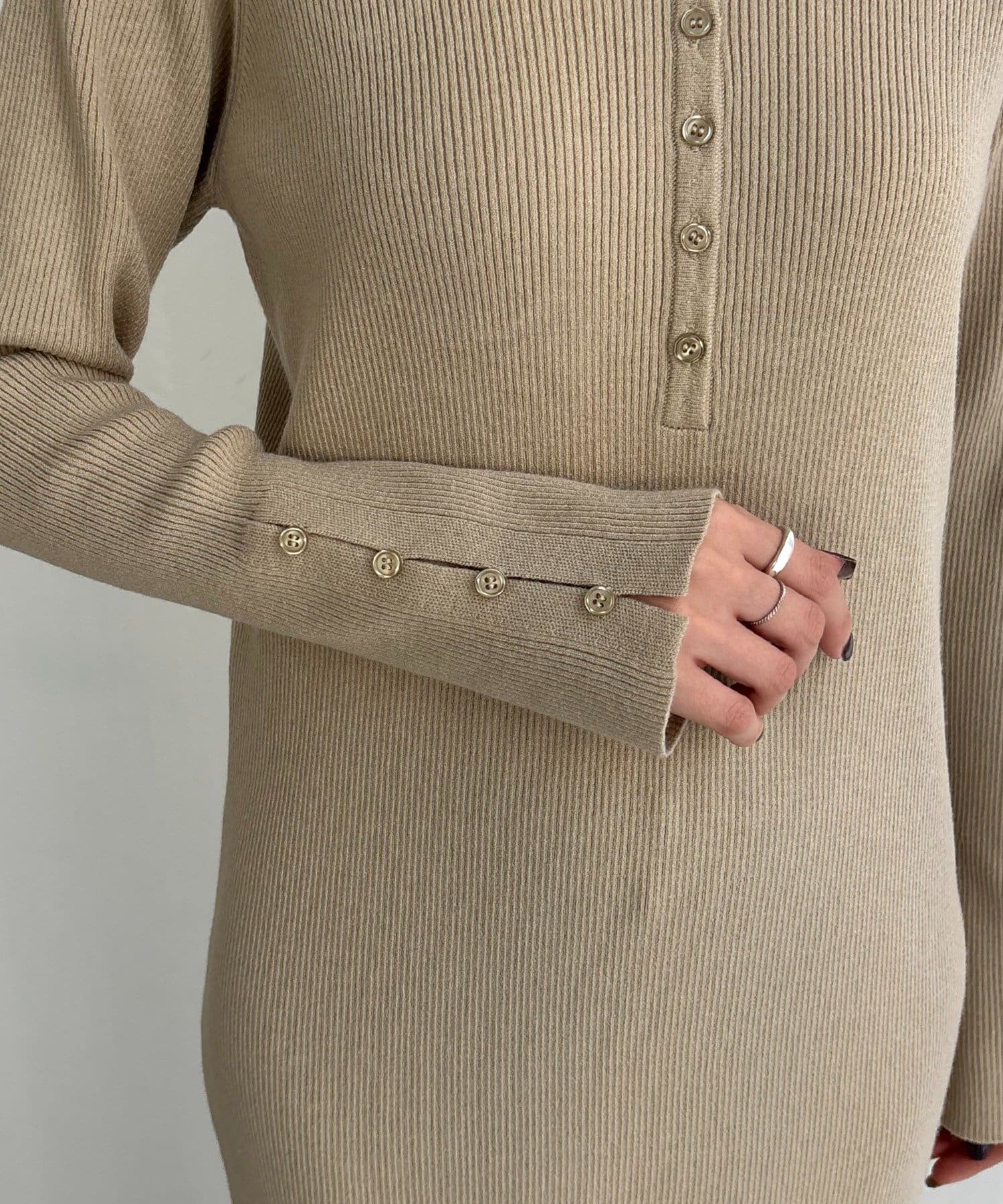 ・ヘンリーネックなのでボタンを開けてすっきりと抜け感をプラスした着方がおすすめ