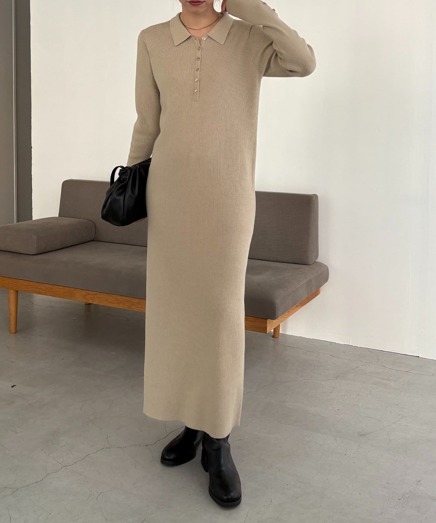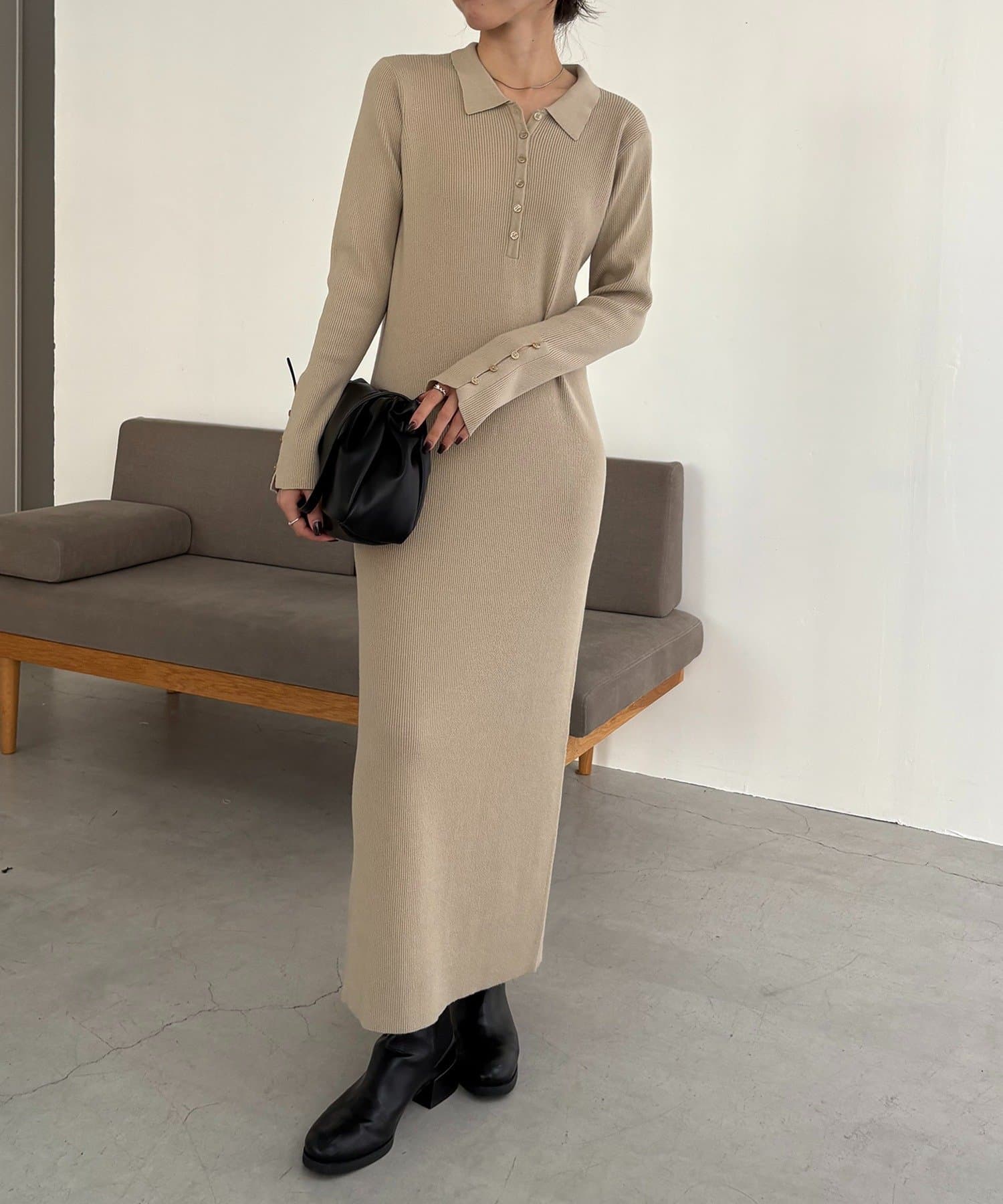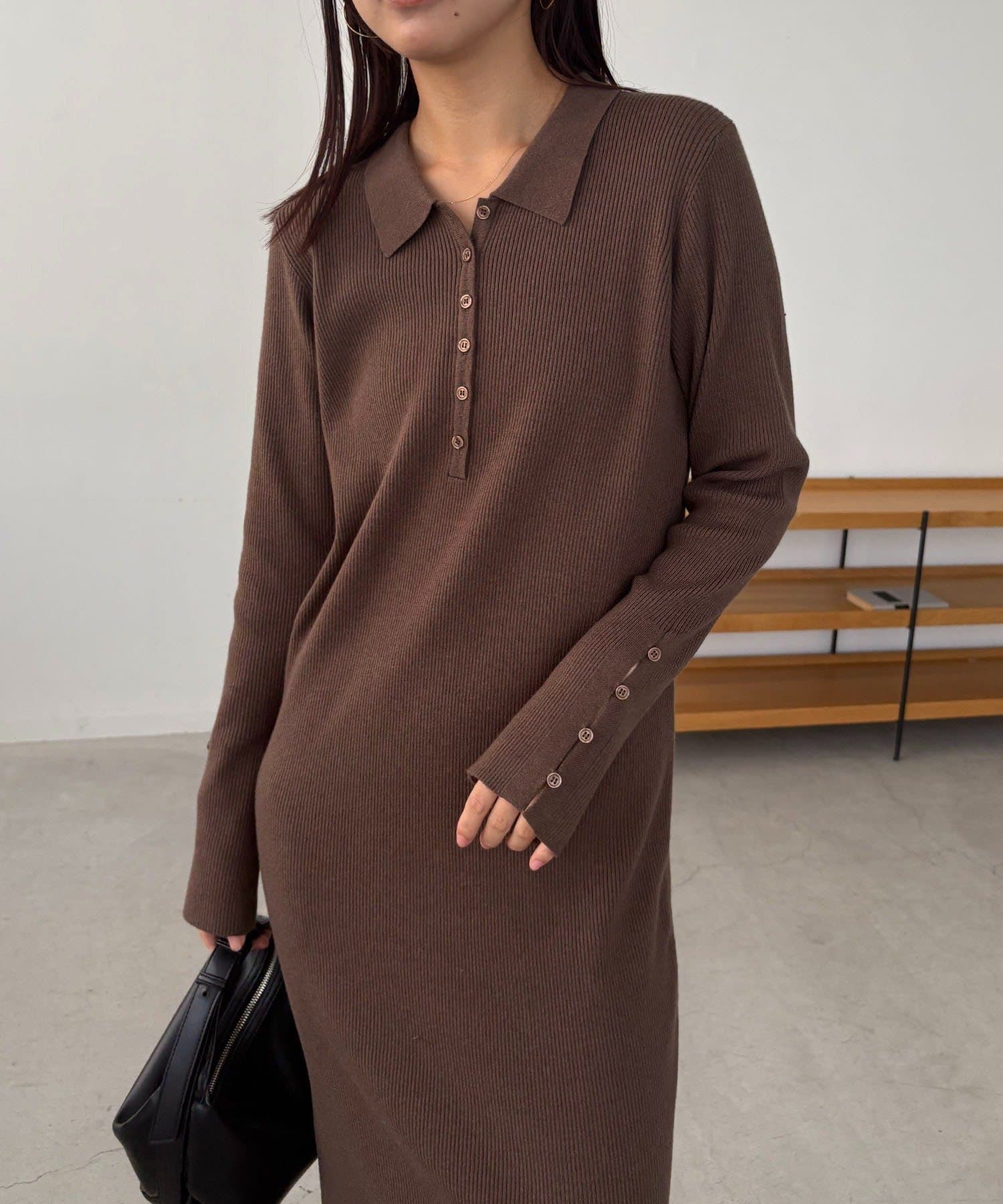 • CAPRICIEUX LE'MAGE(カプリシュレマージュ) 【低身長サイズあり】襟ニットワンピース