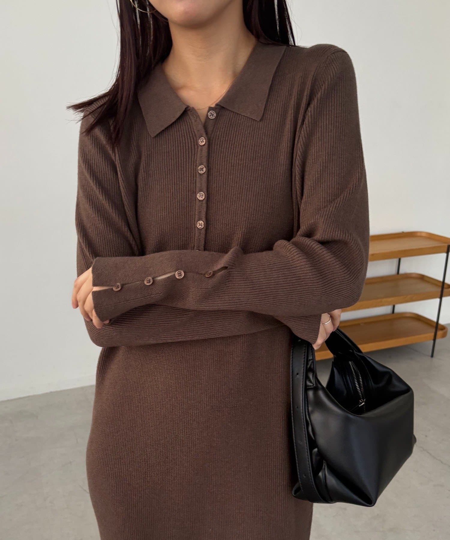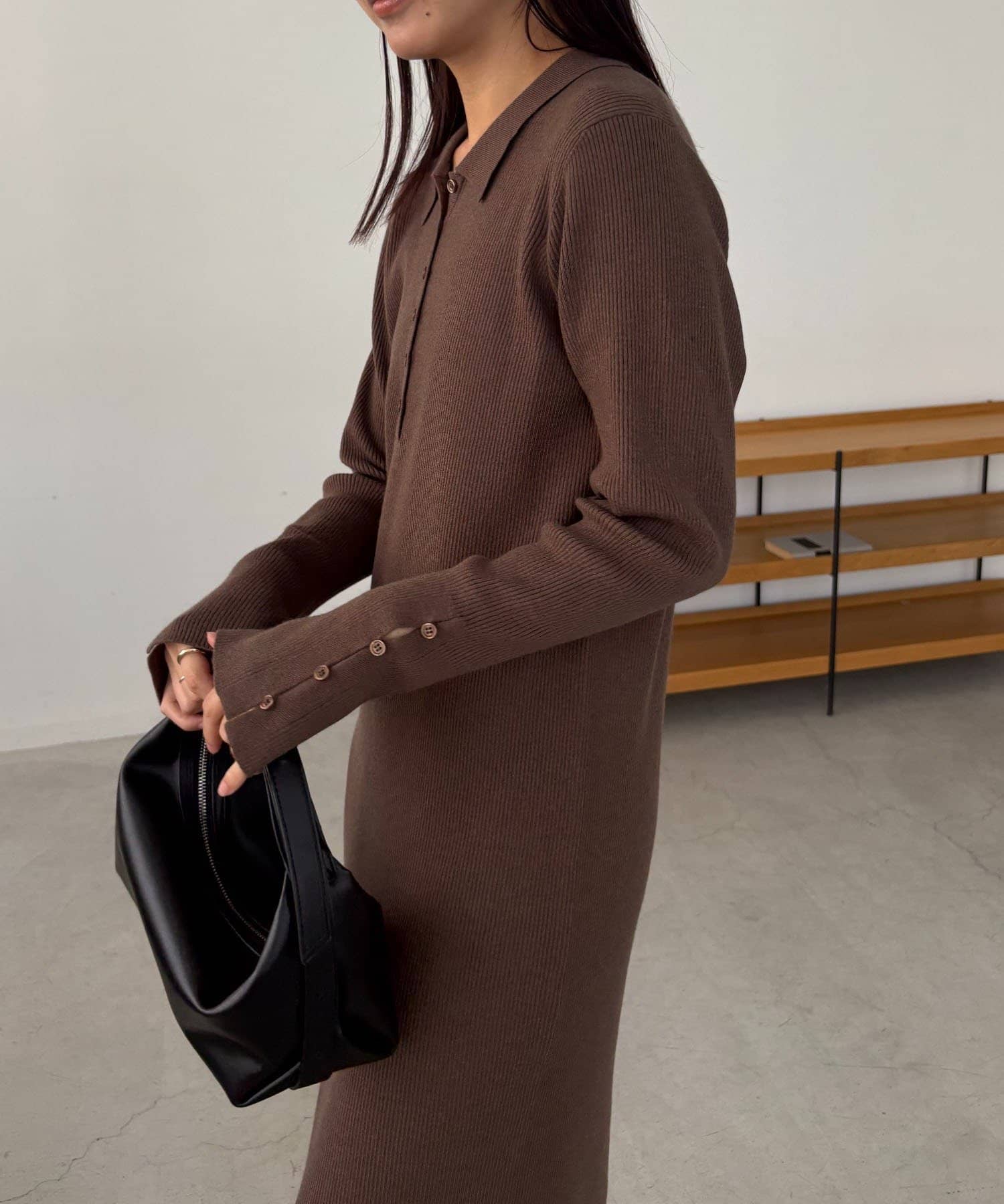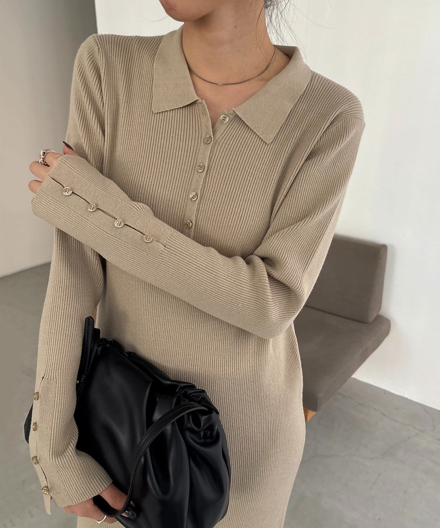 • CAPRICIEUX LE'MAGE(カプリシュレマージュ) 【低身長サイズあり】襟ニットワンピース