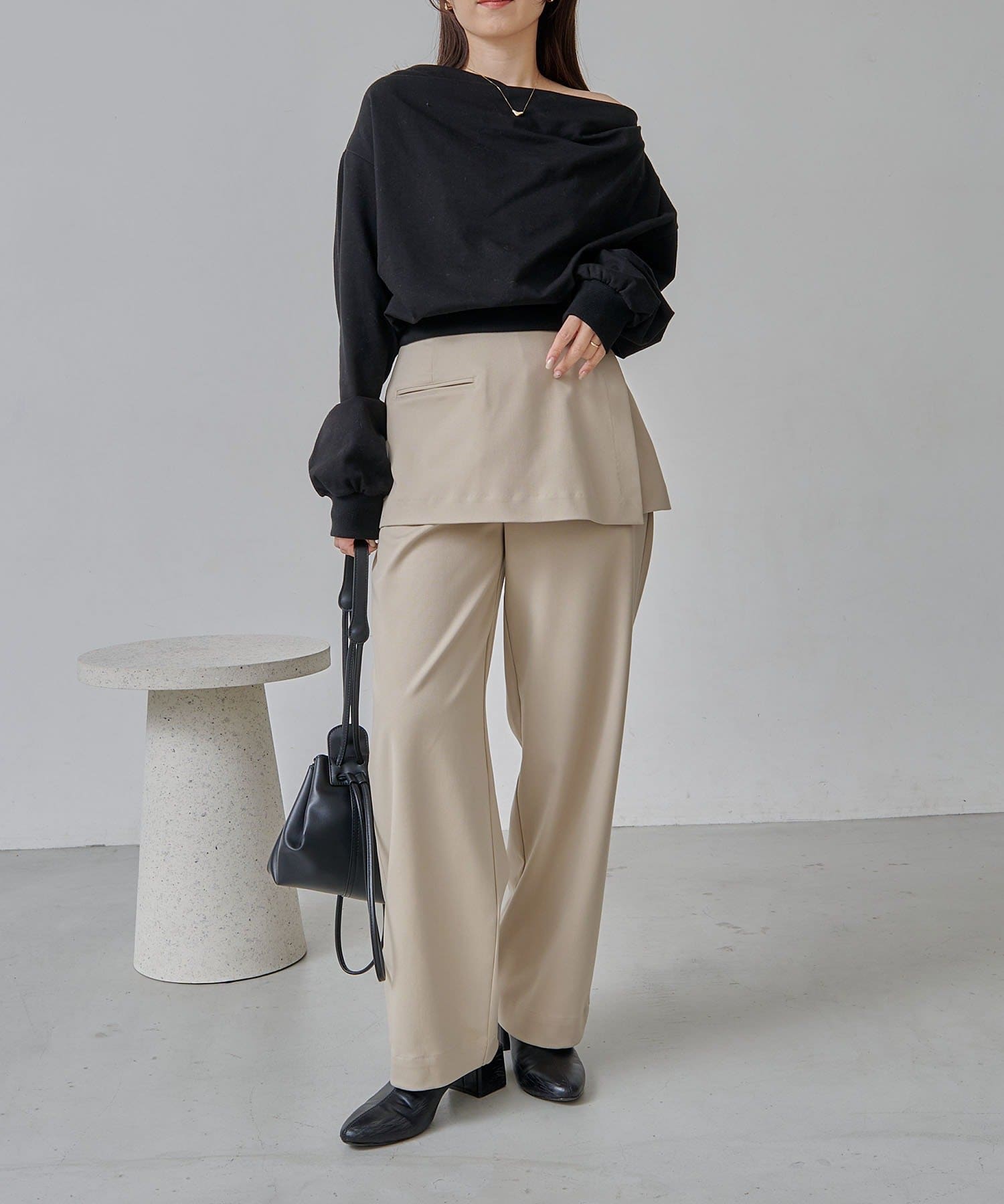 【ベージュ着用アイテム①】ドレープスウェット