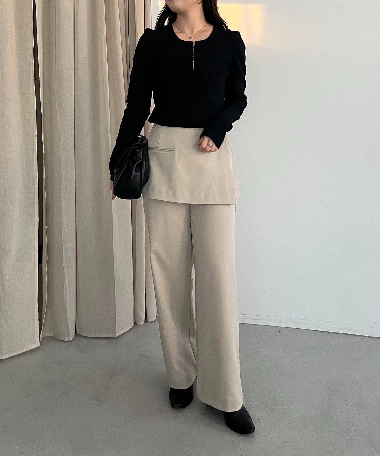【ベージュ着用アイテム②】ホックヘンリーパフニット