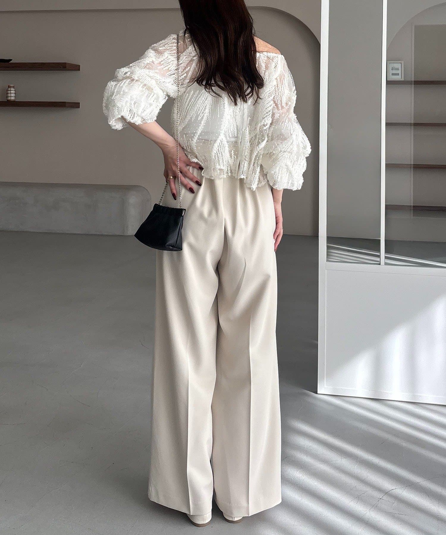 ・ジャガードシアーブラウスと合わせたきれいめスタイルがおすすめ