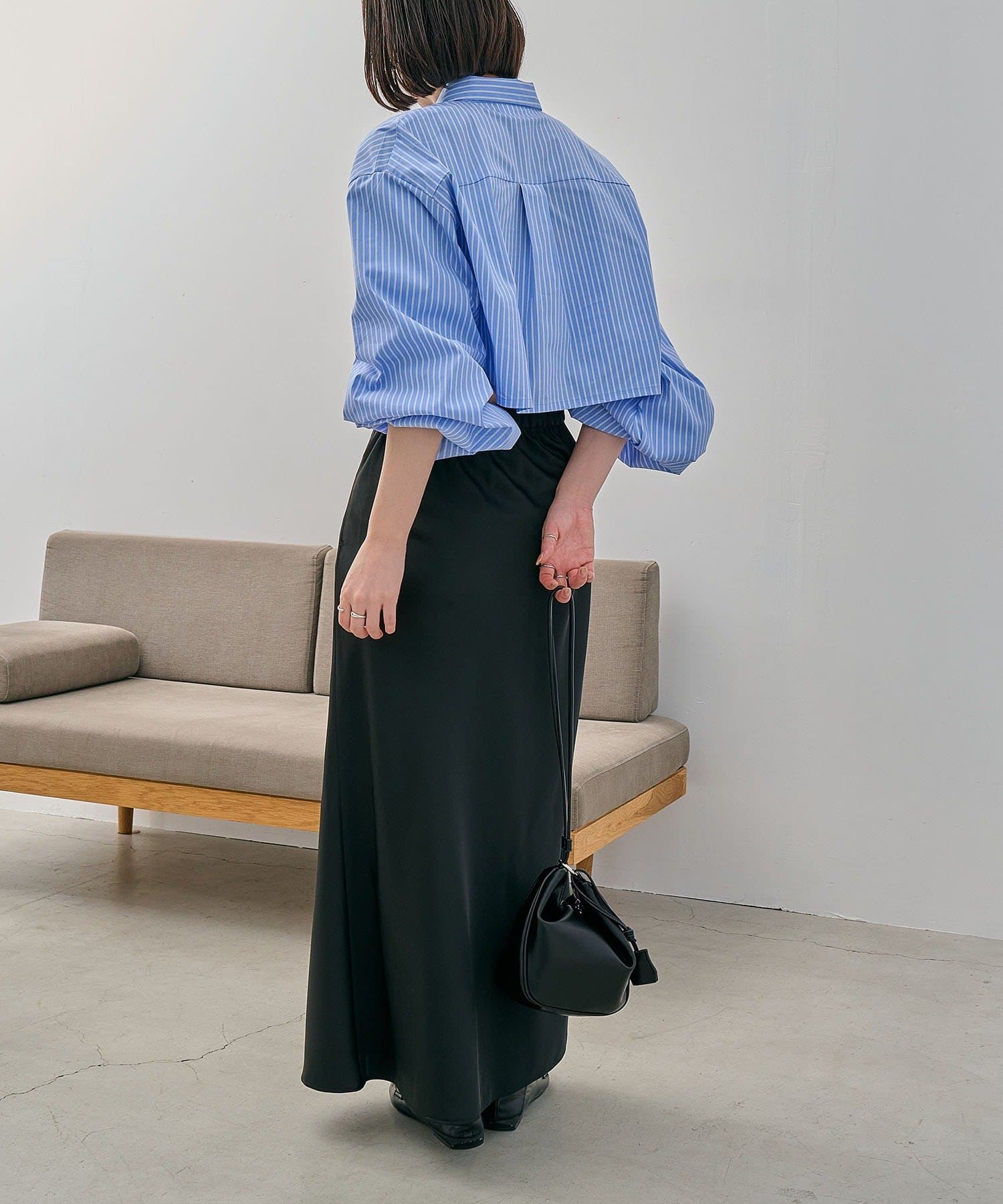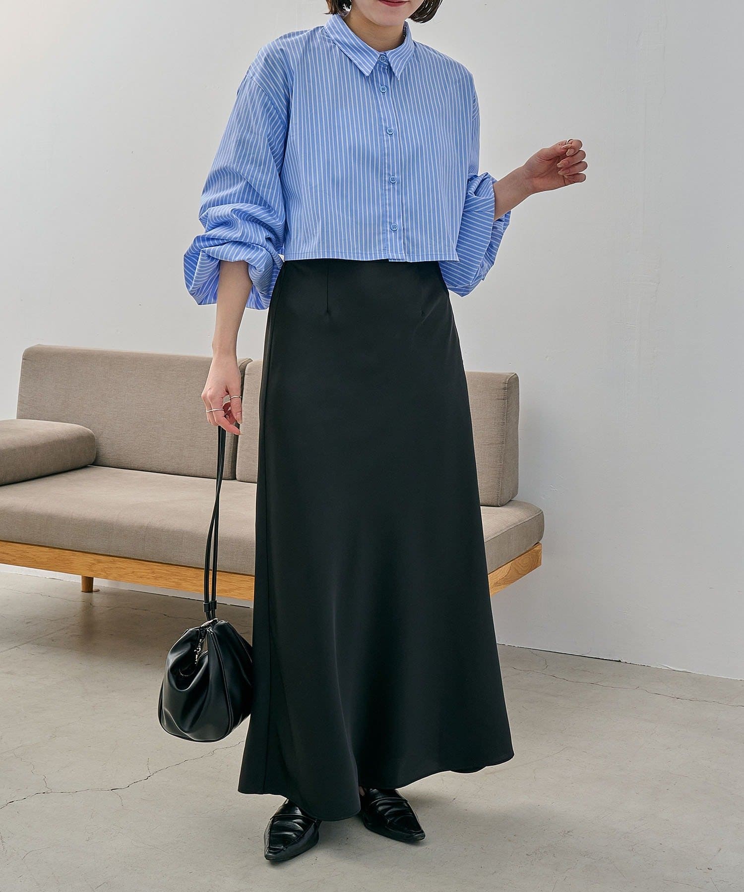 ・マキシスカートに合わせて女性らしく
