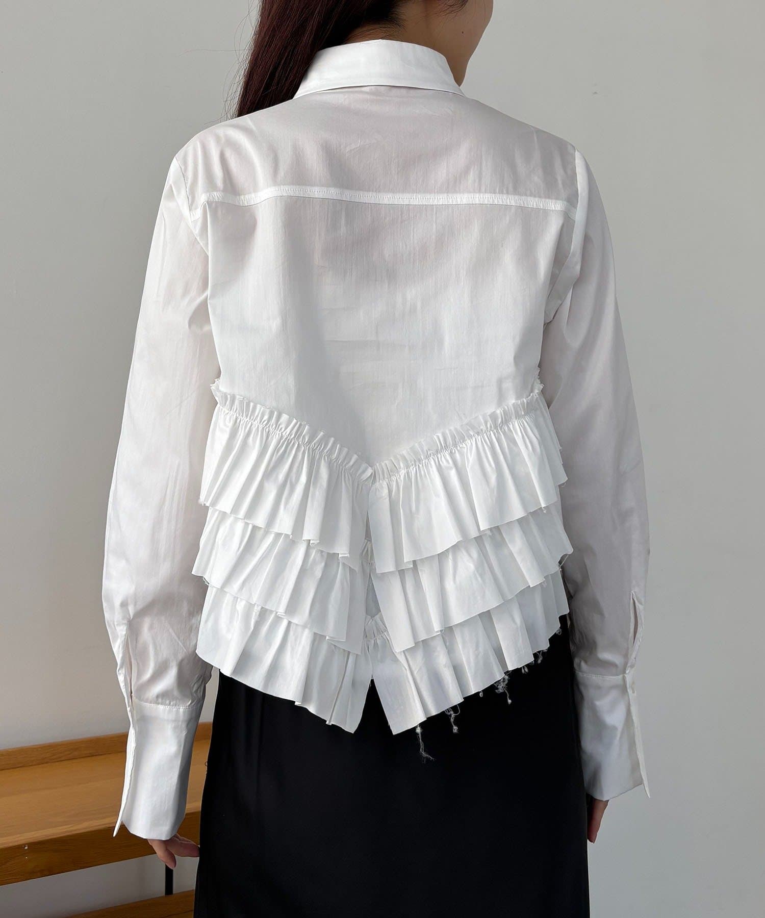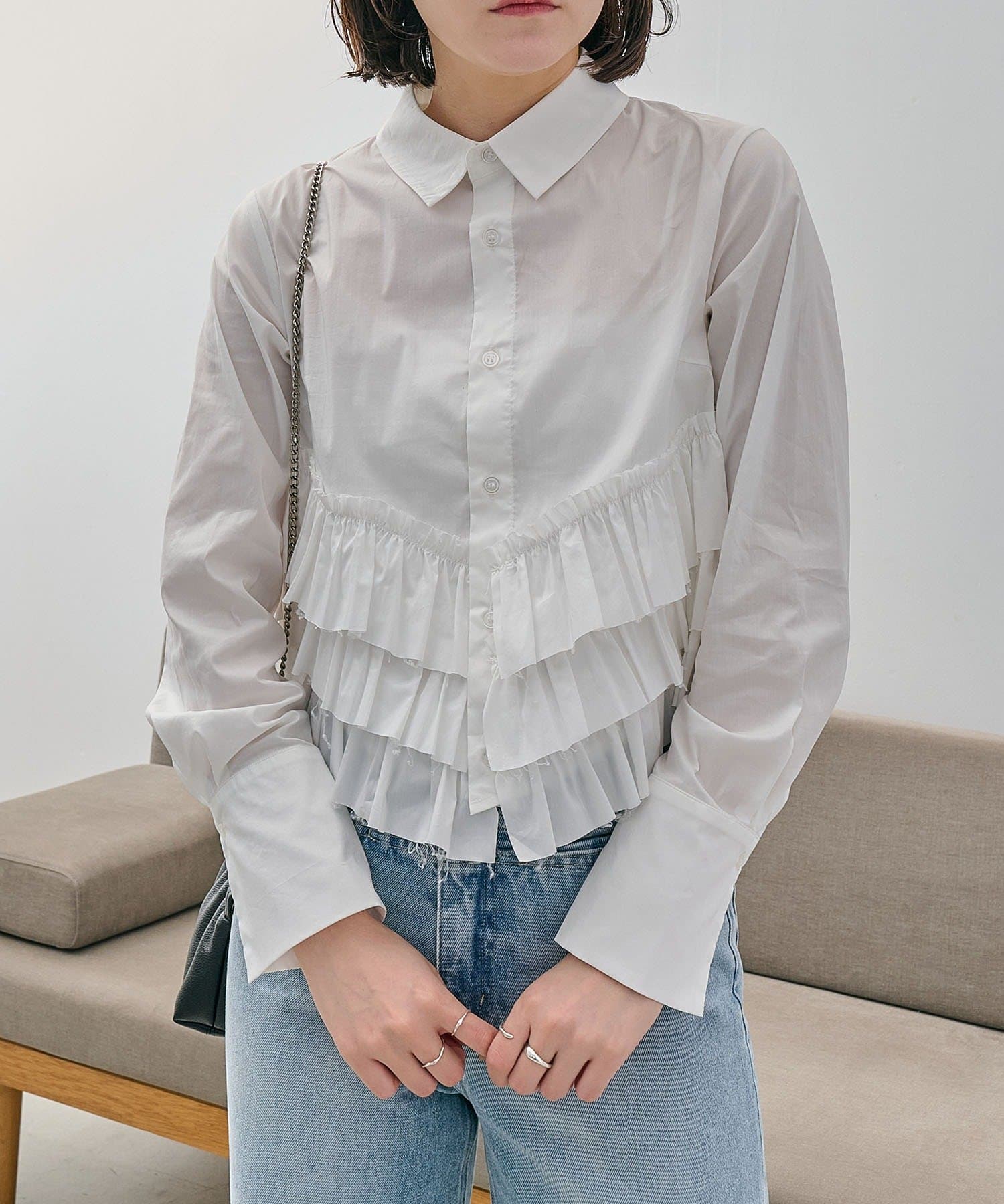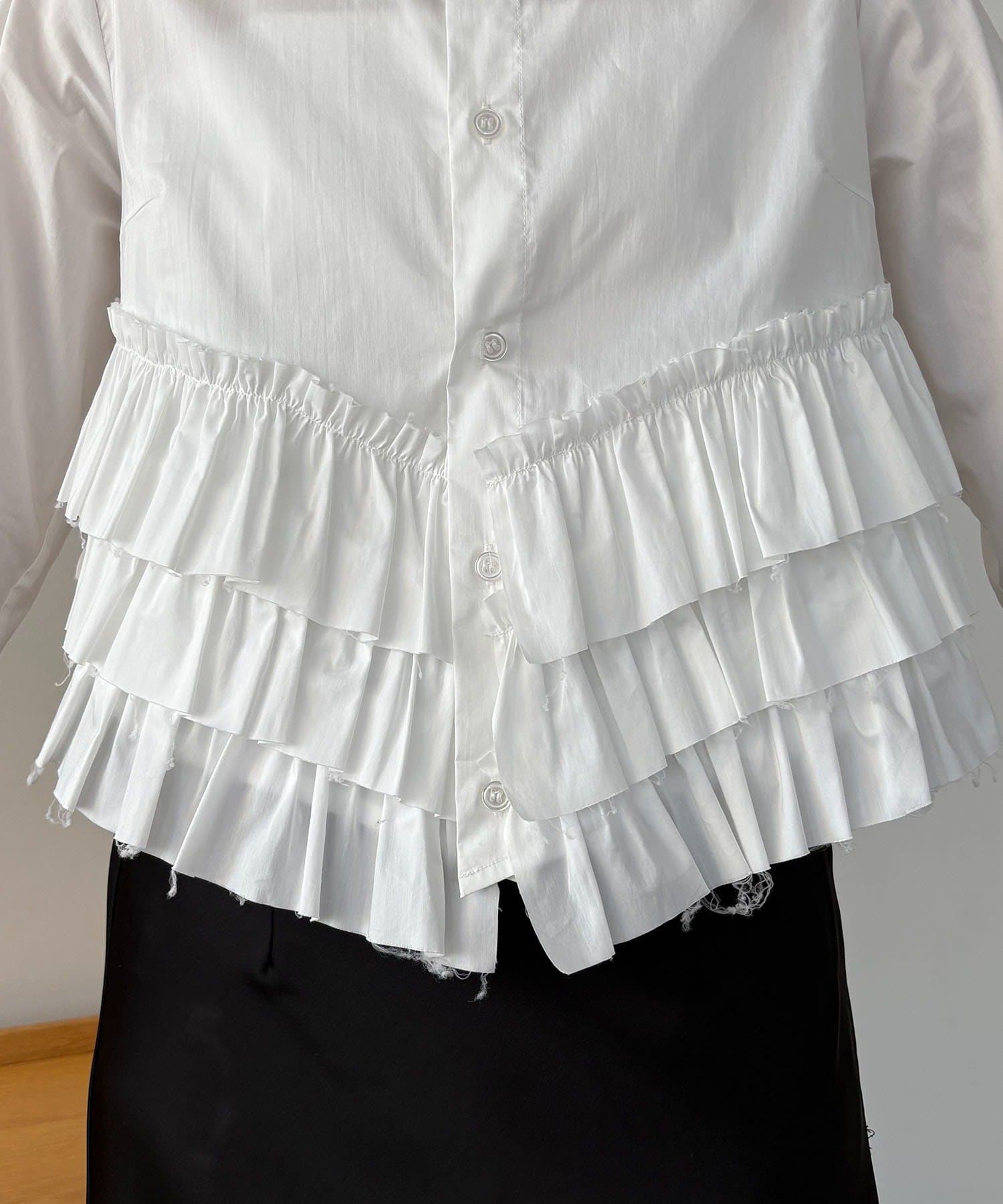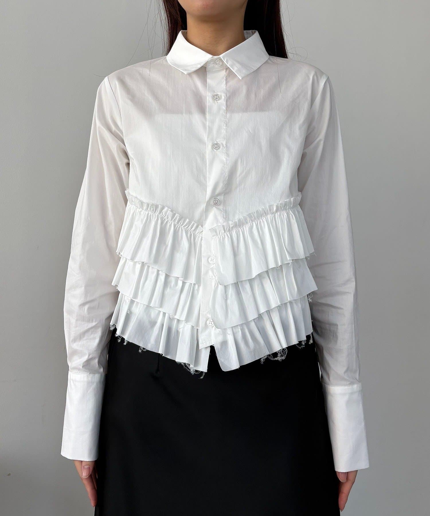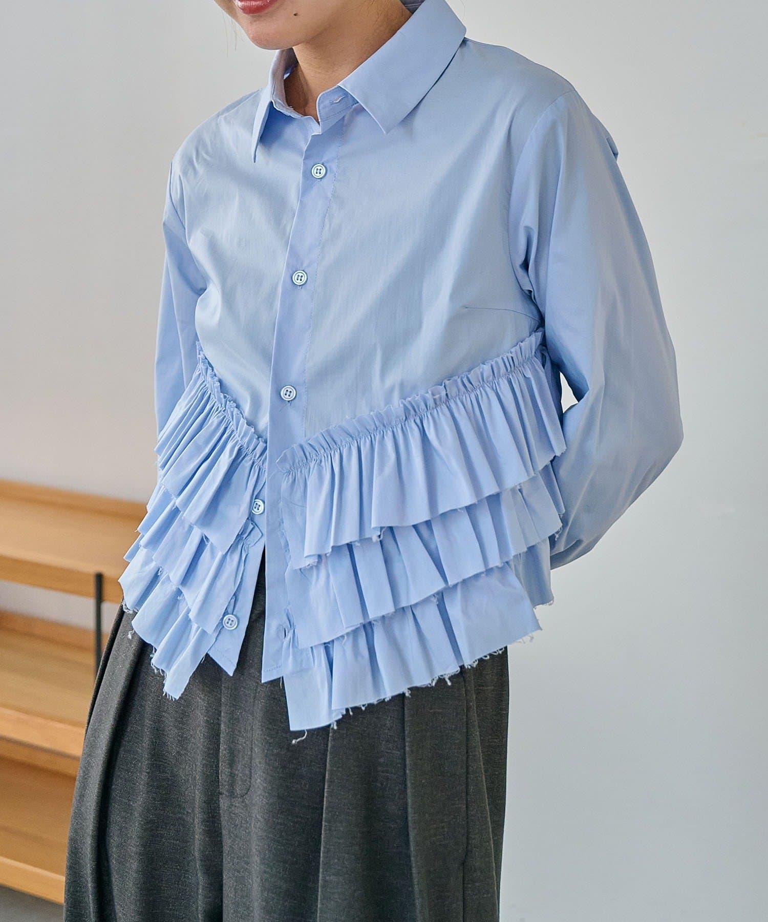 ・裾にフリルが施されたデザイン性のあるシャツ