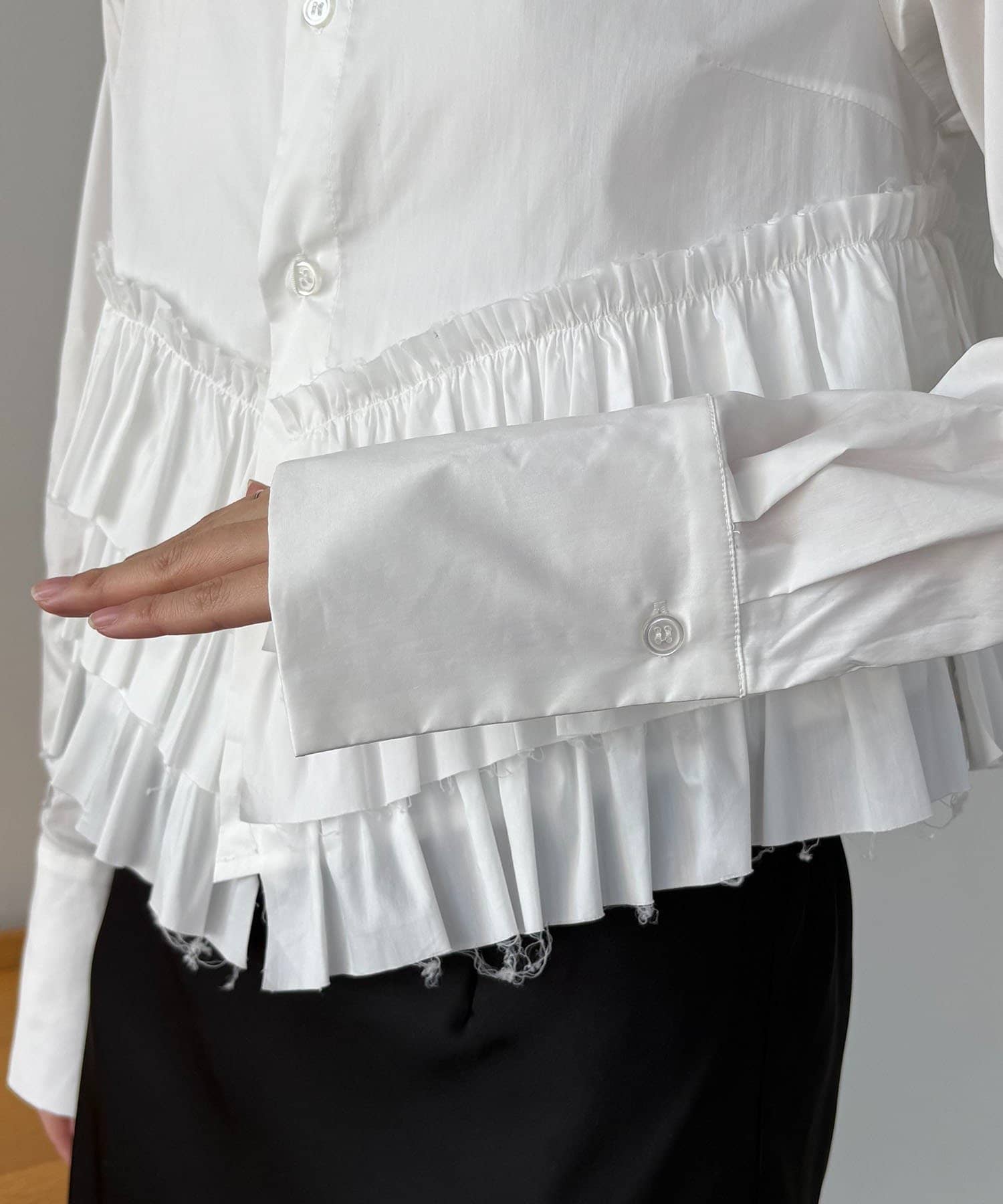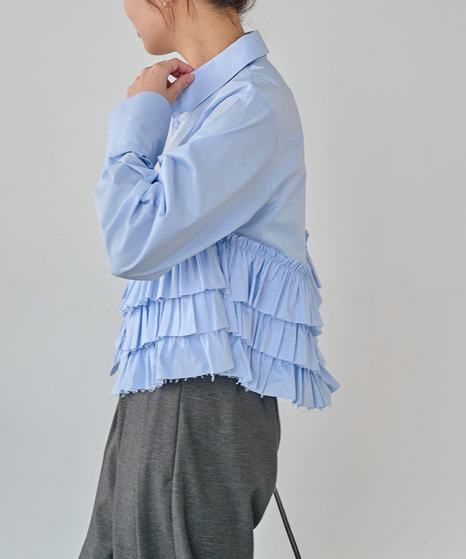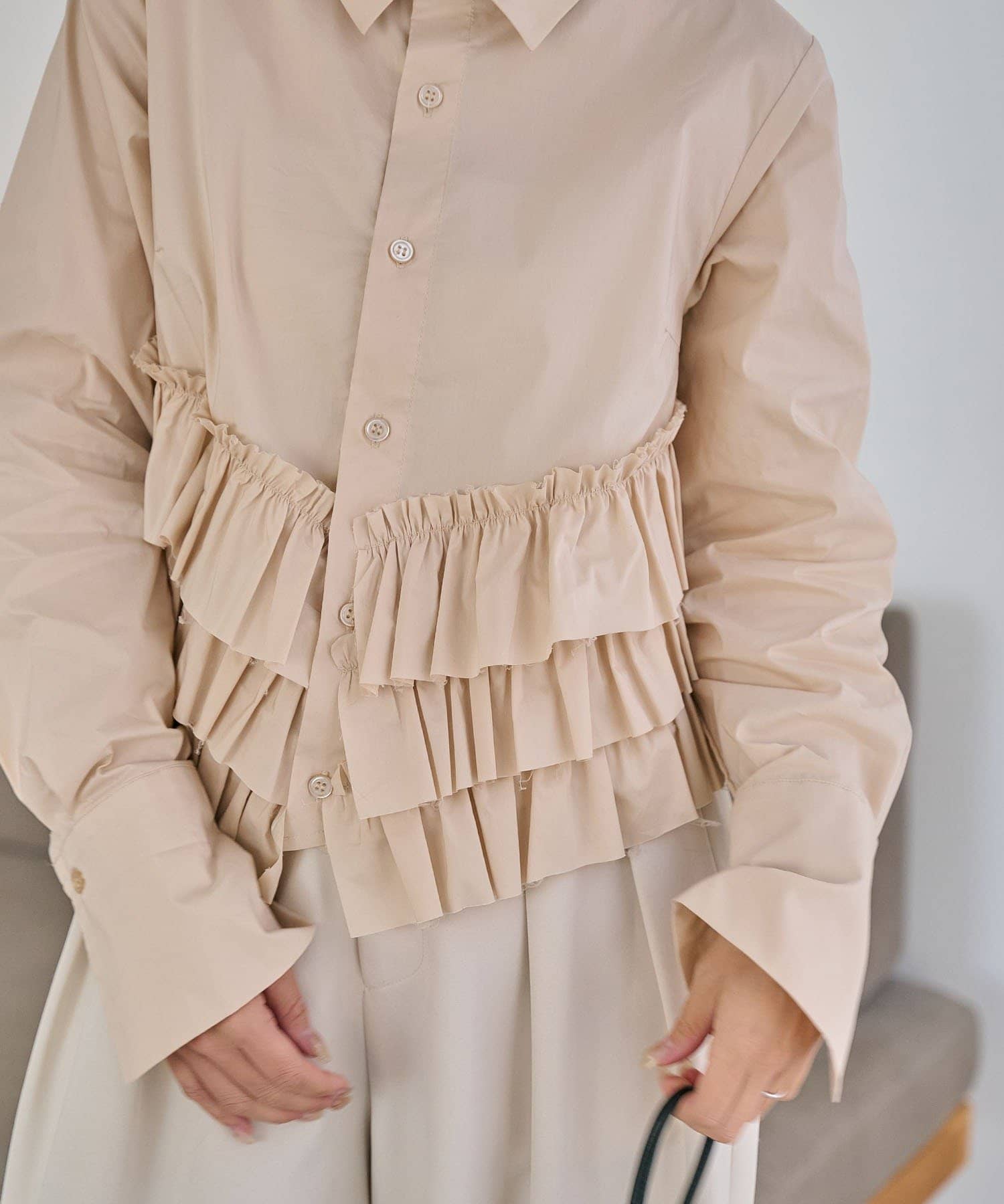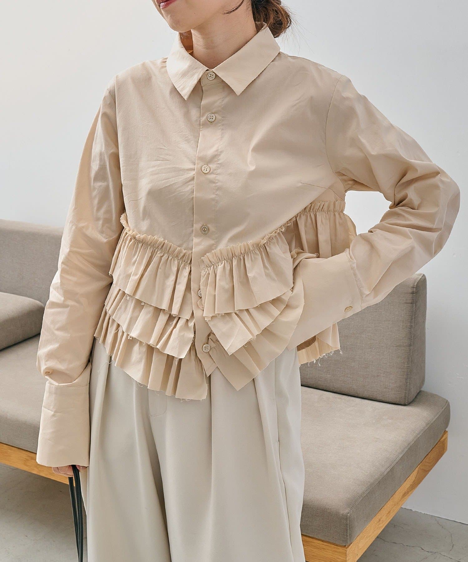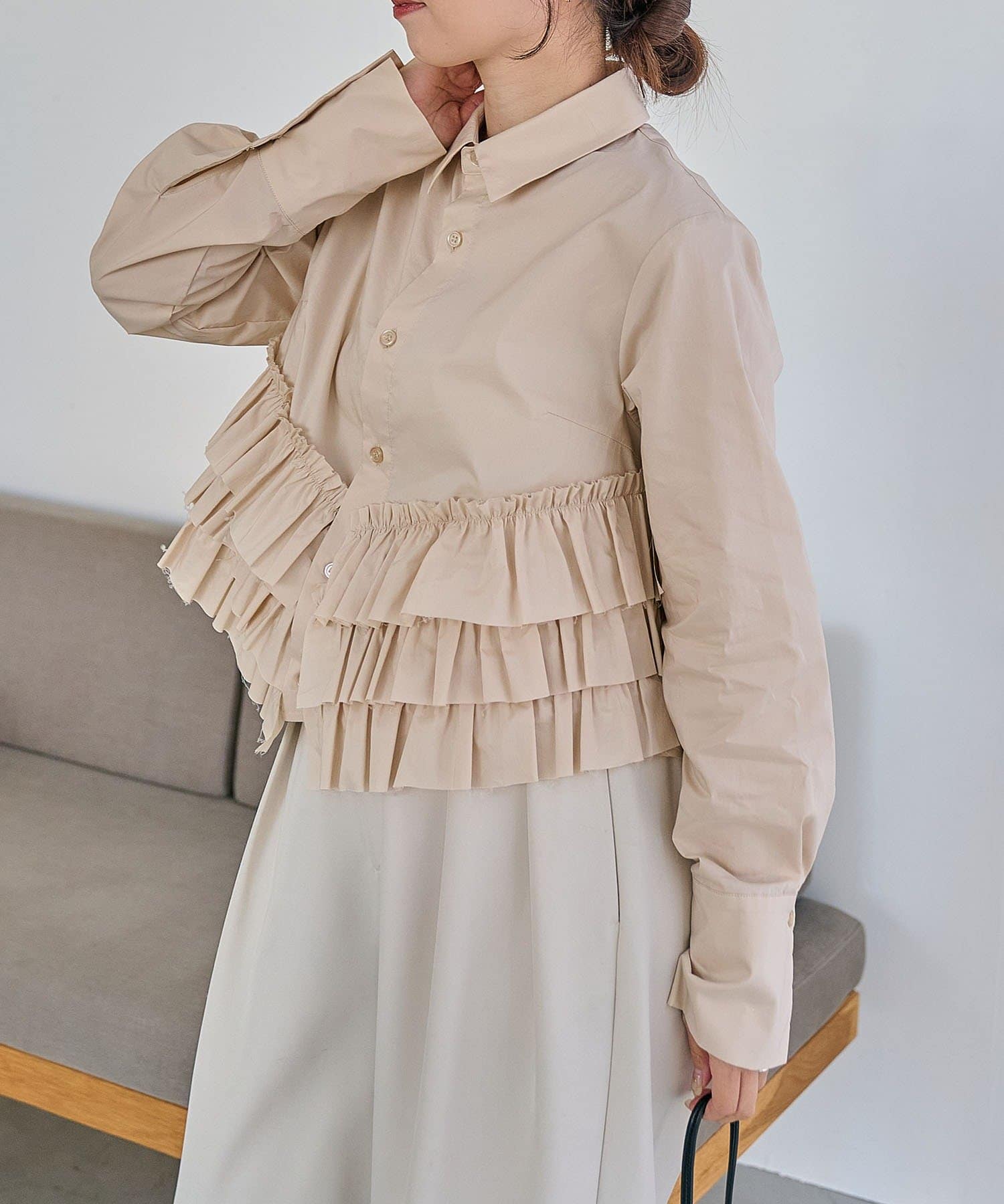・裾にフリルが施されたデザイン性のあるシャツ