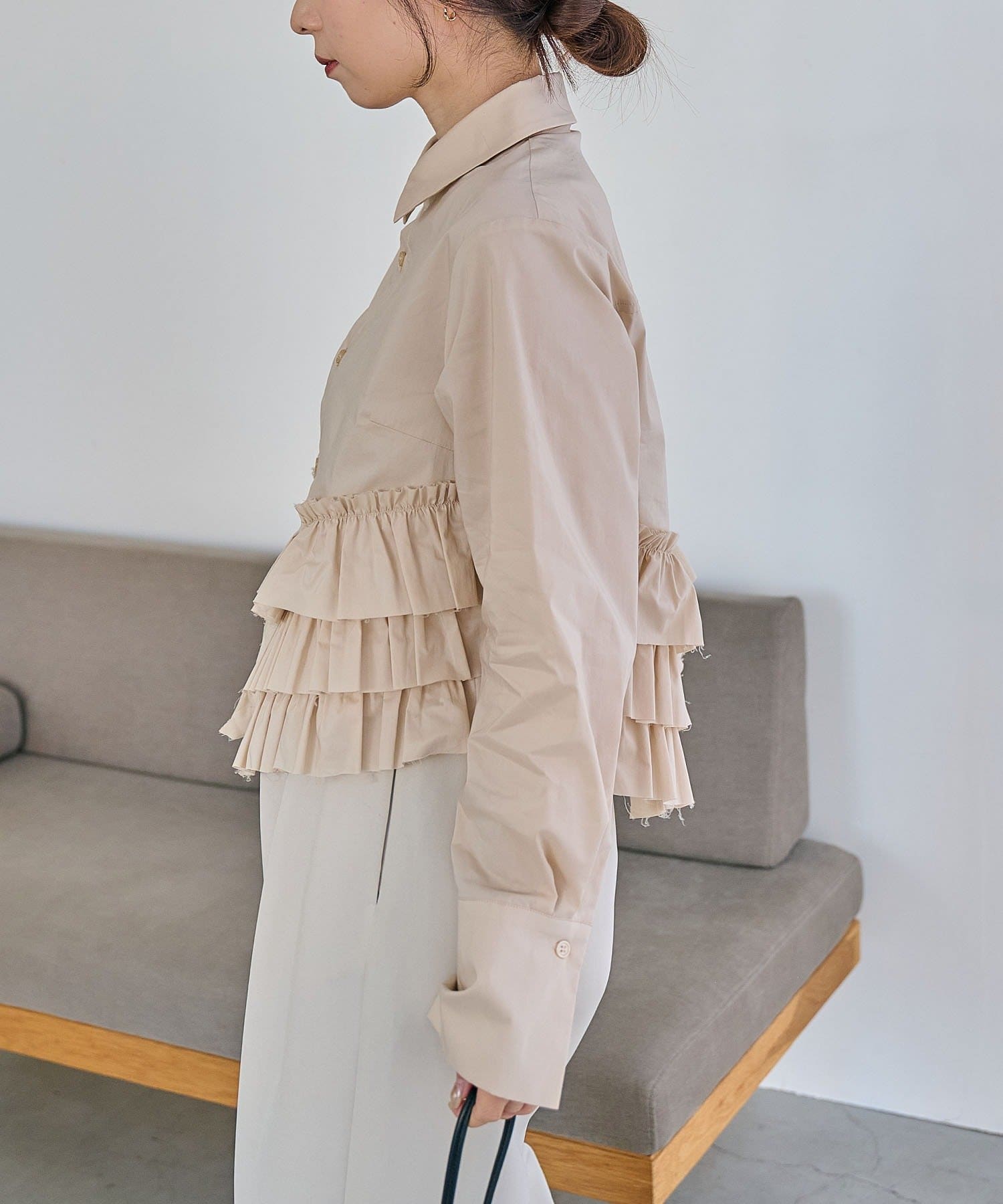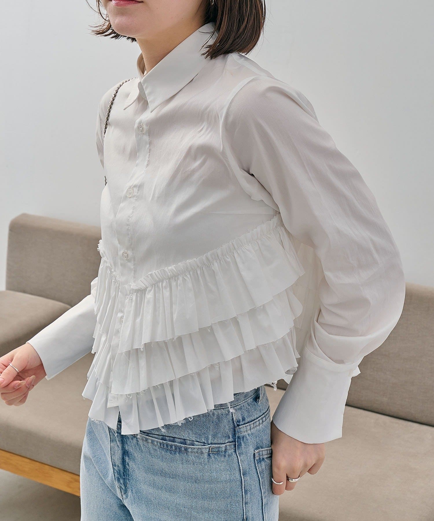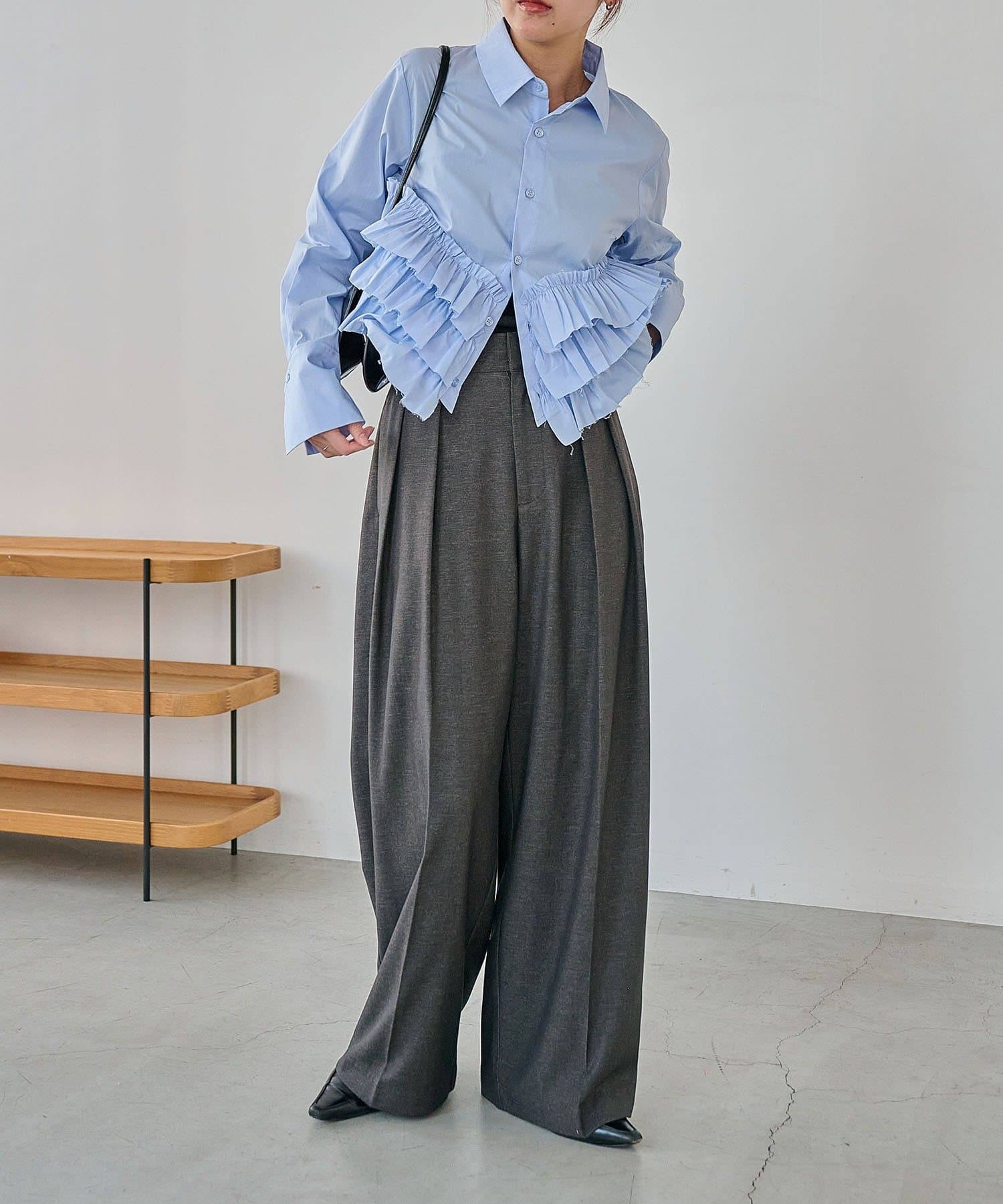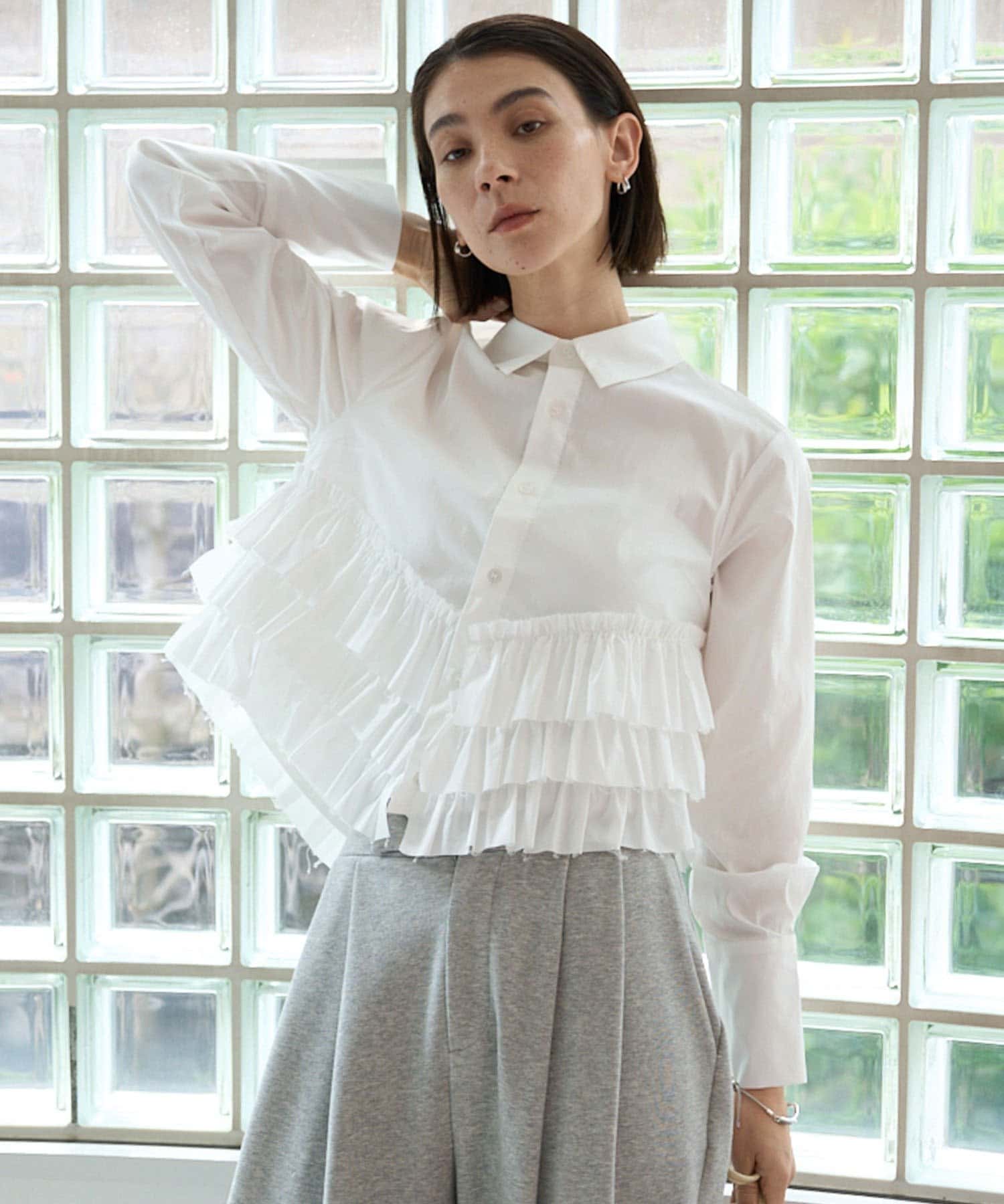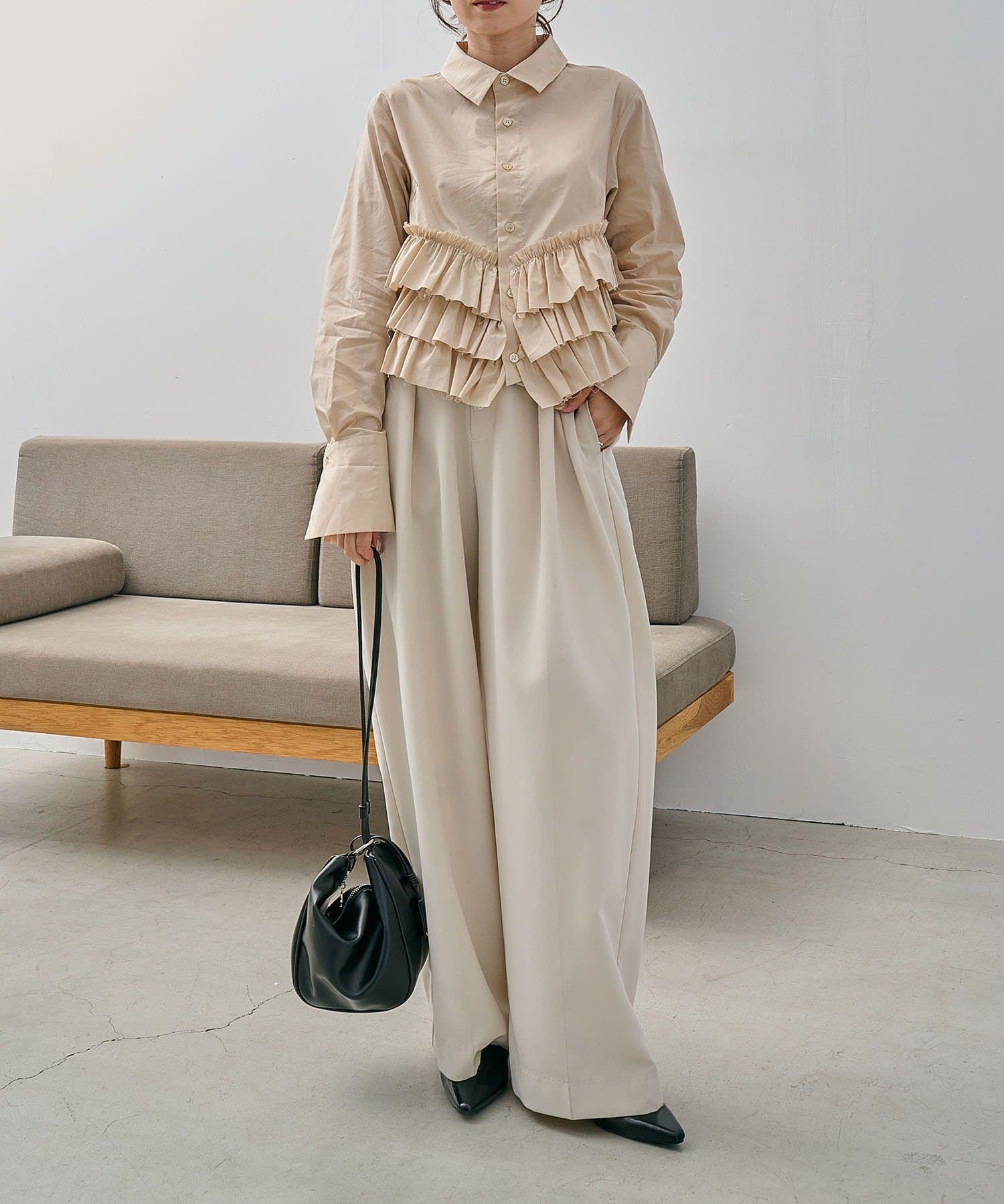 ・裾にフリルが施されたデザイン性のあるシャツ