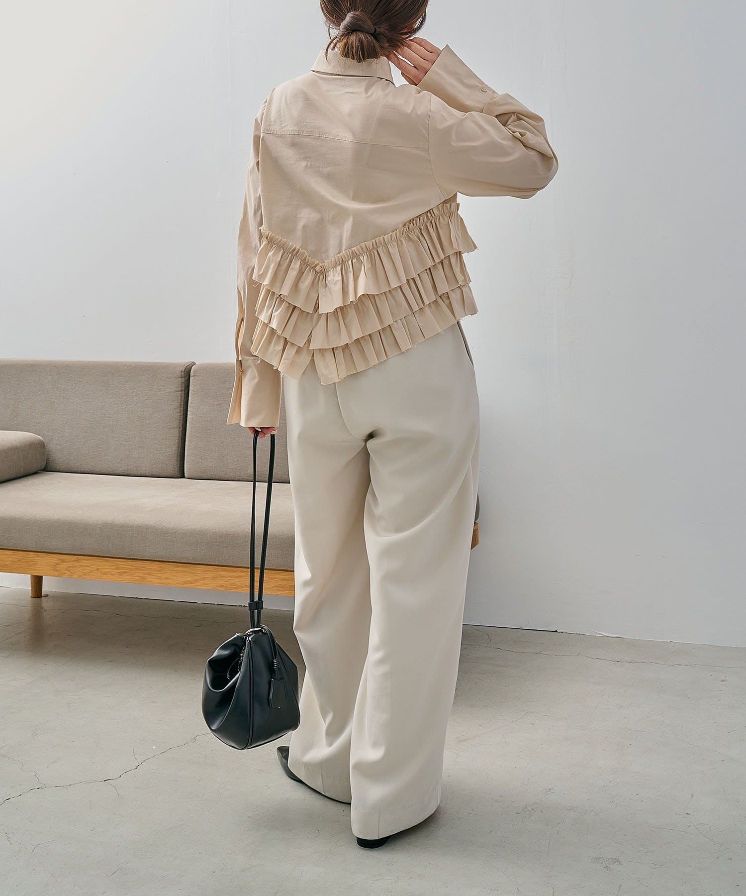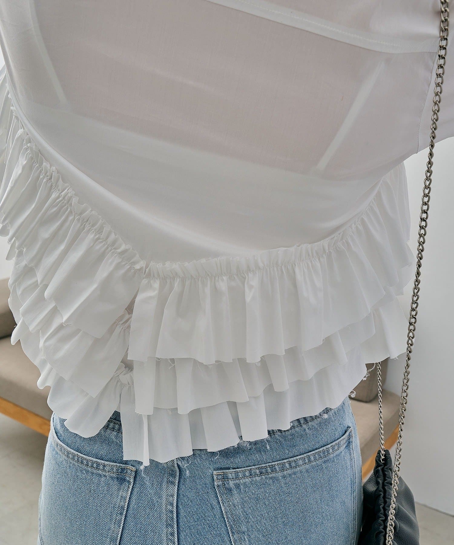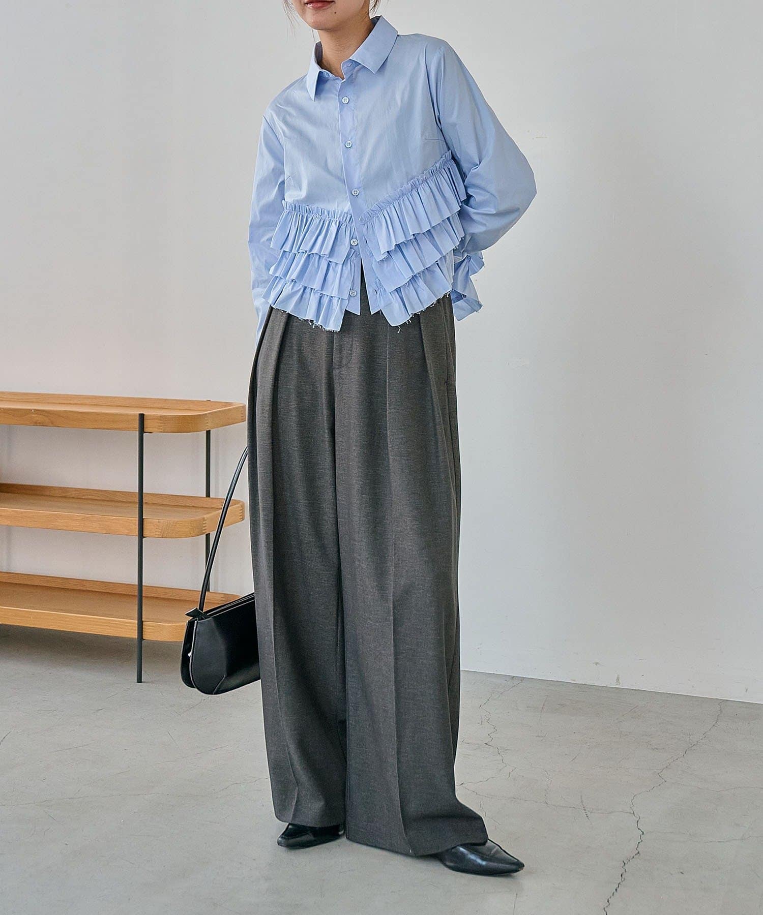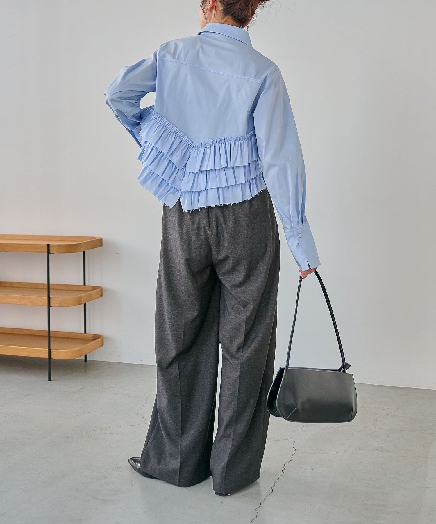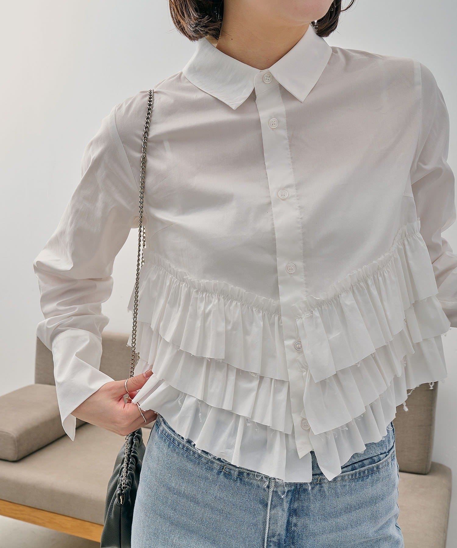 ・裾にフリルが施されたデザイン性のあるシャツ