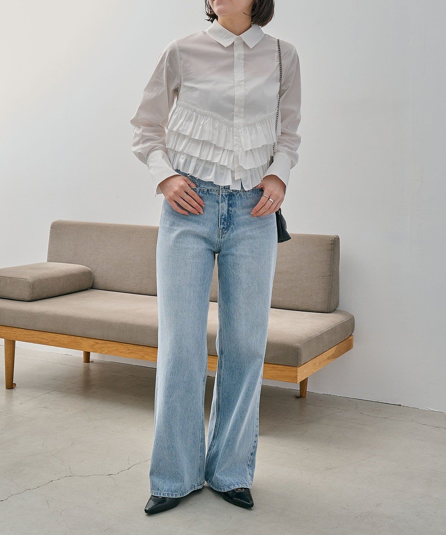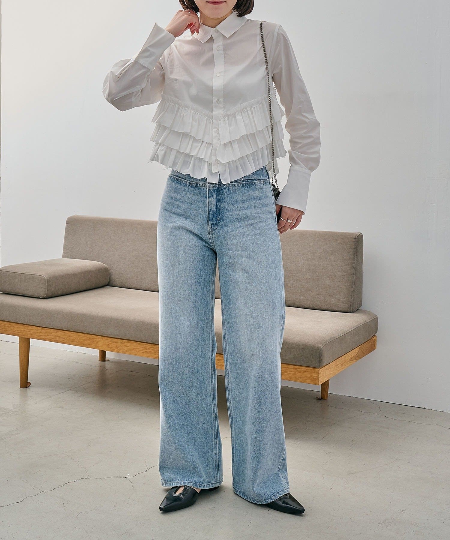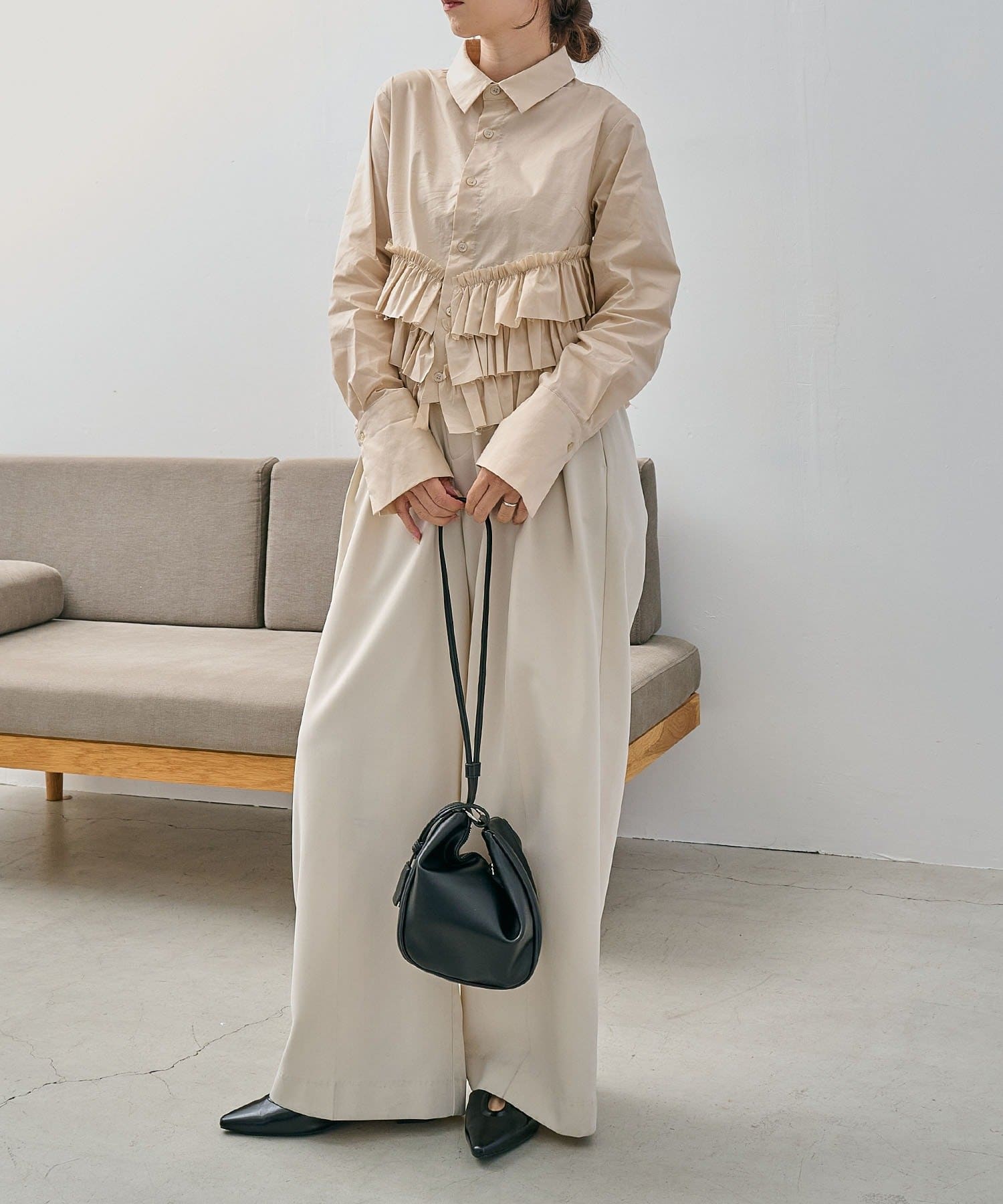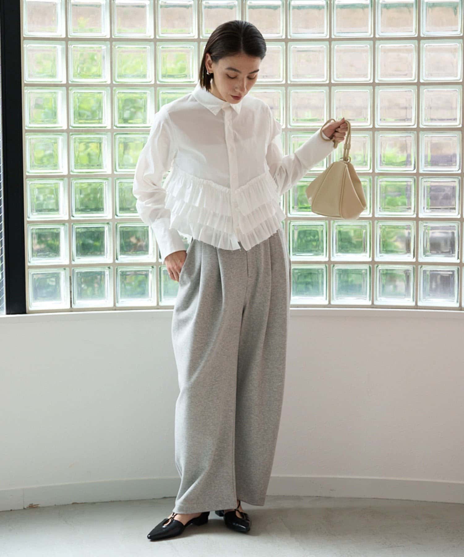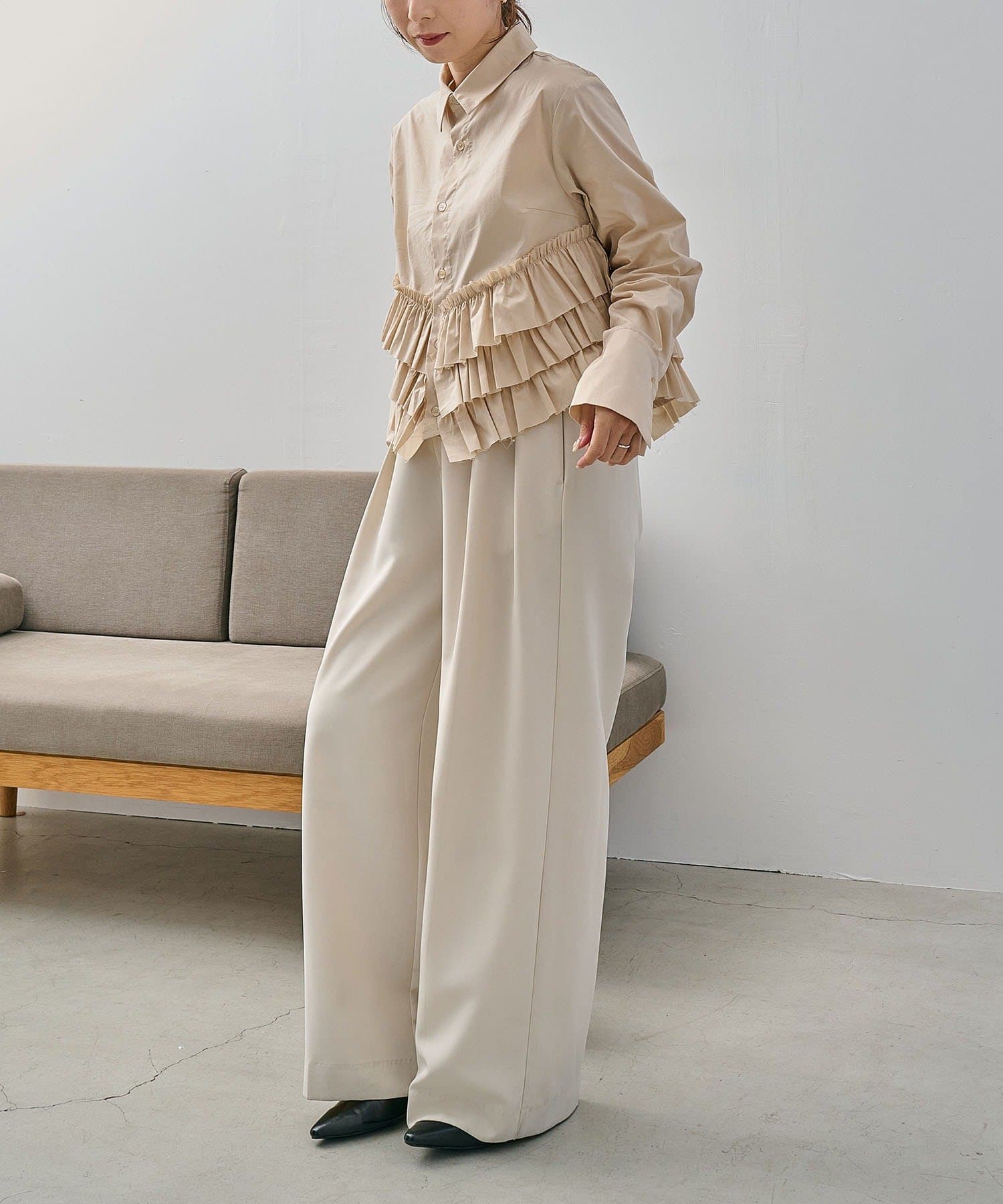 ・裾にフリルが施されたデザイン性のあるシャツ