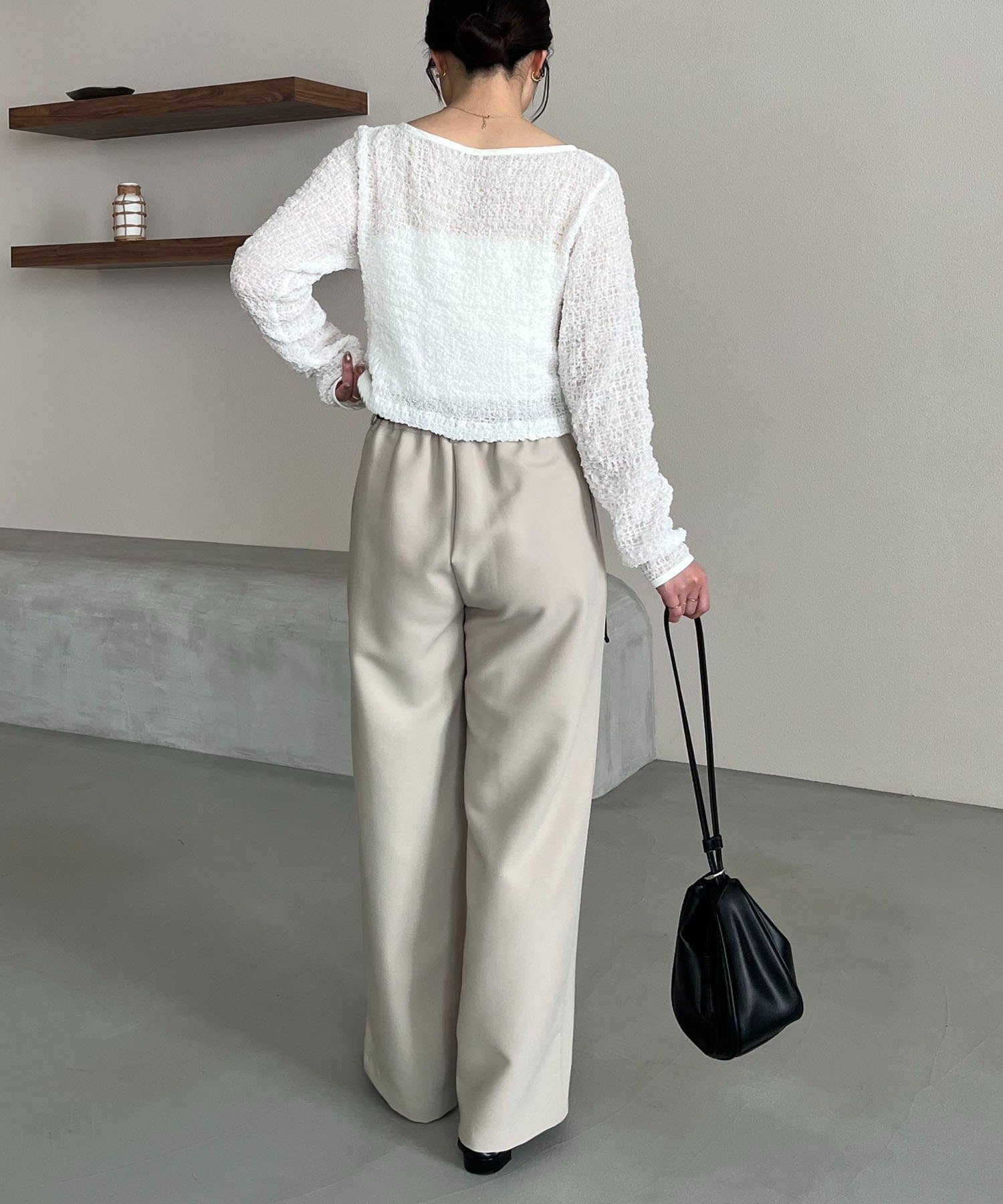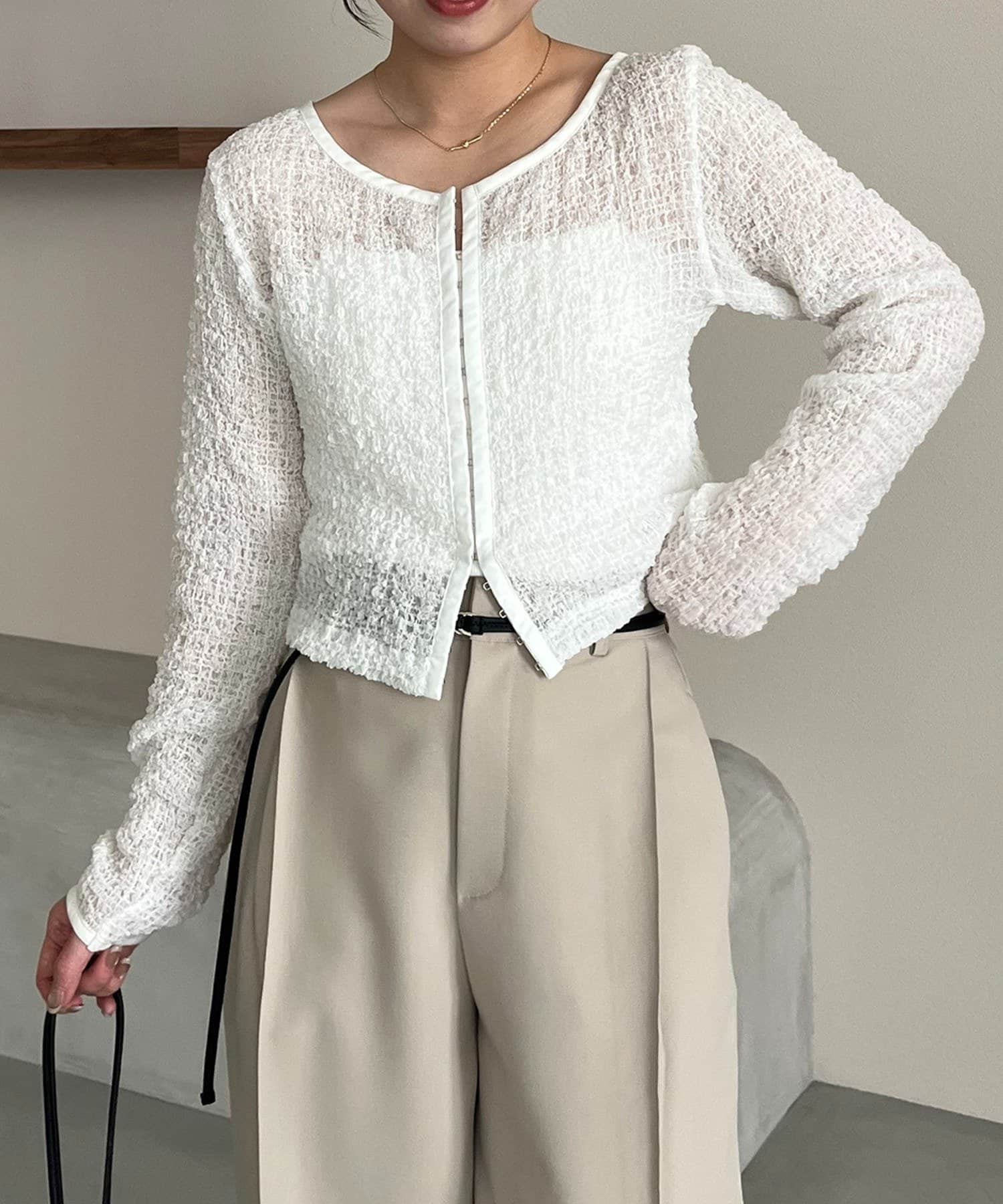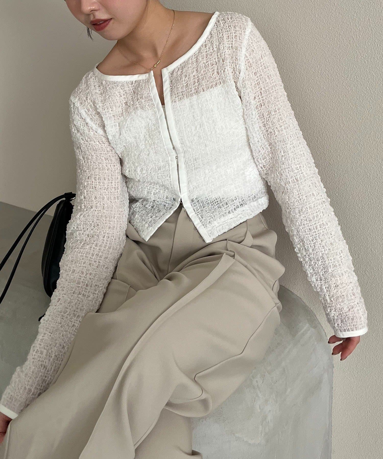 程よく透け感のあるジャガード生地が春らしい印象に。