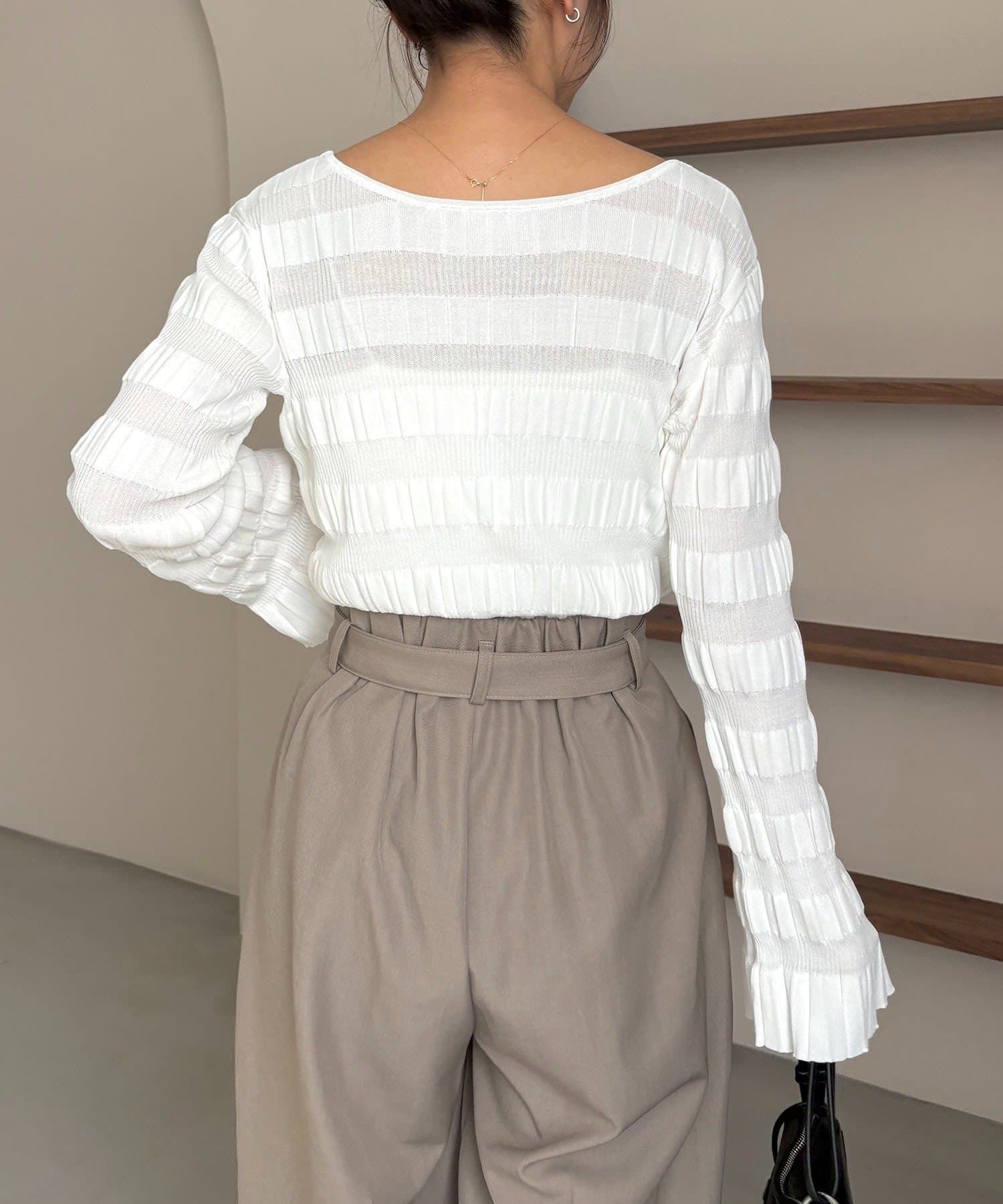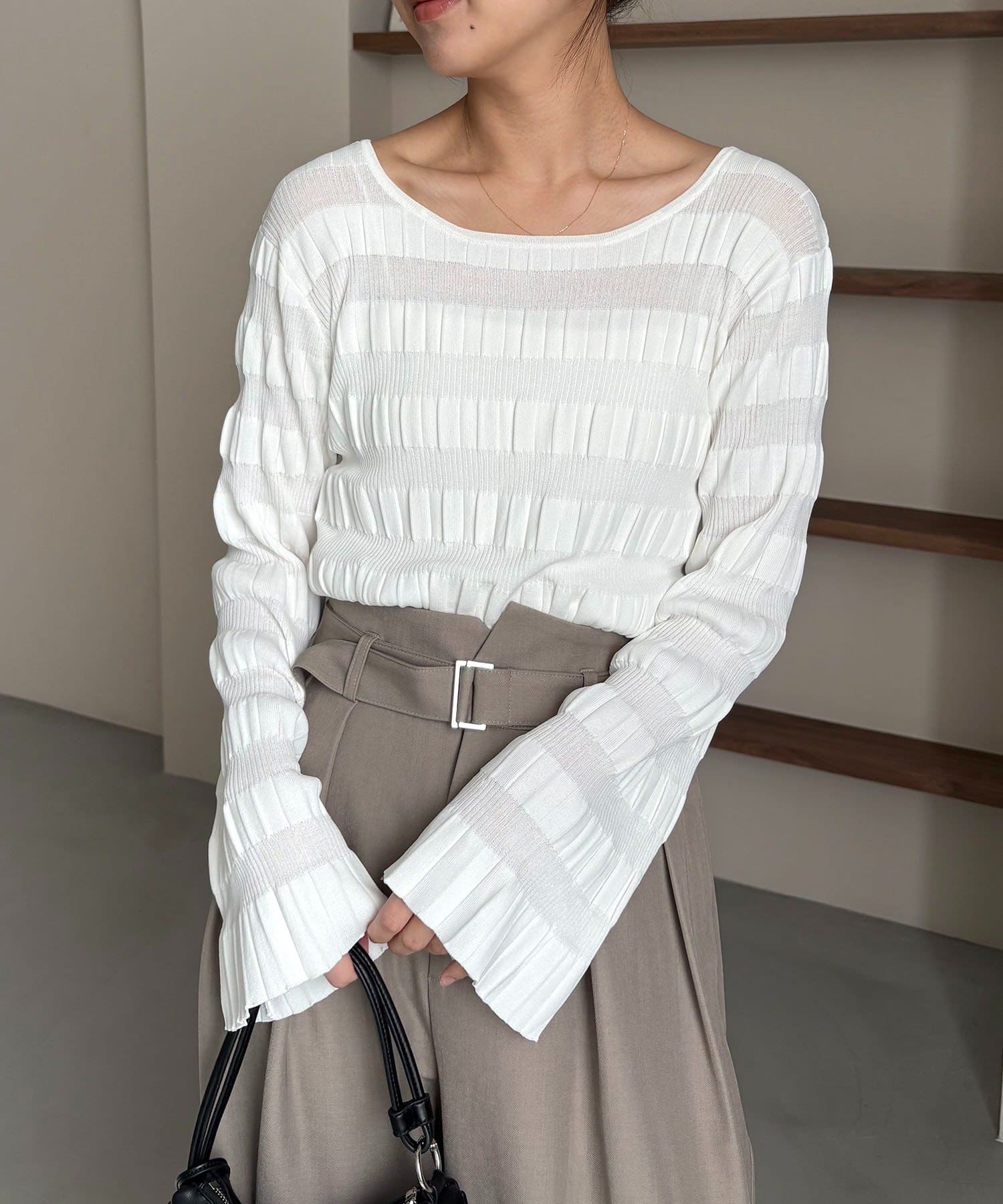 ・やや広めに開いたネックが抜け感をプラス