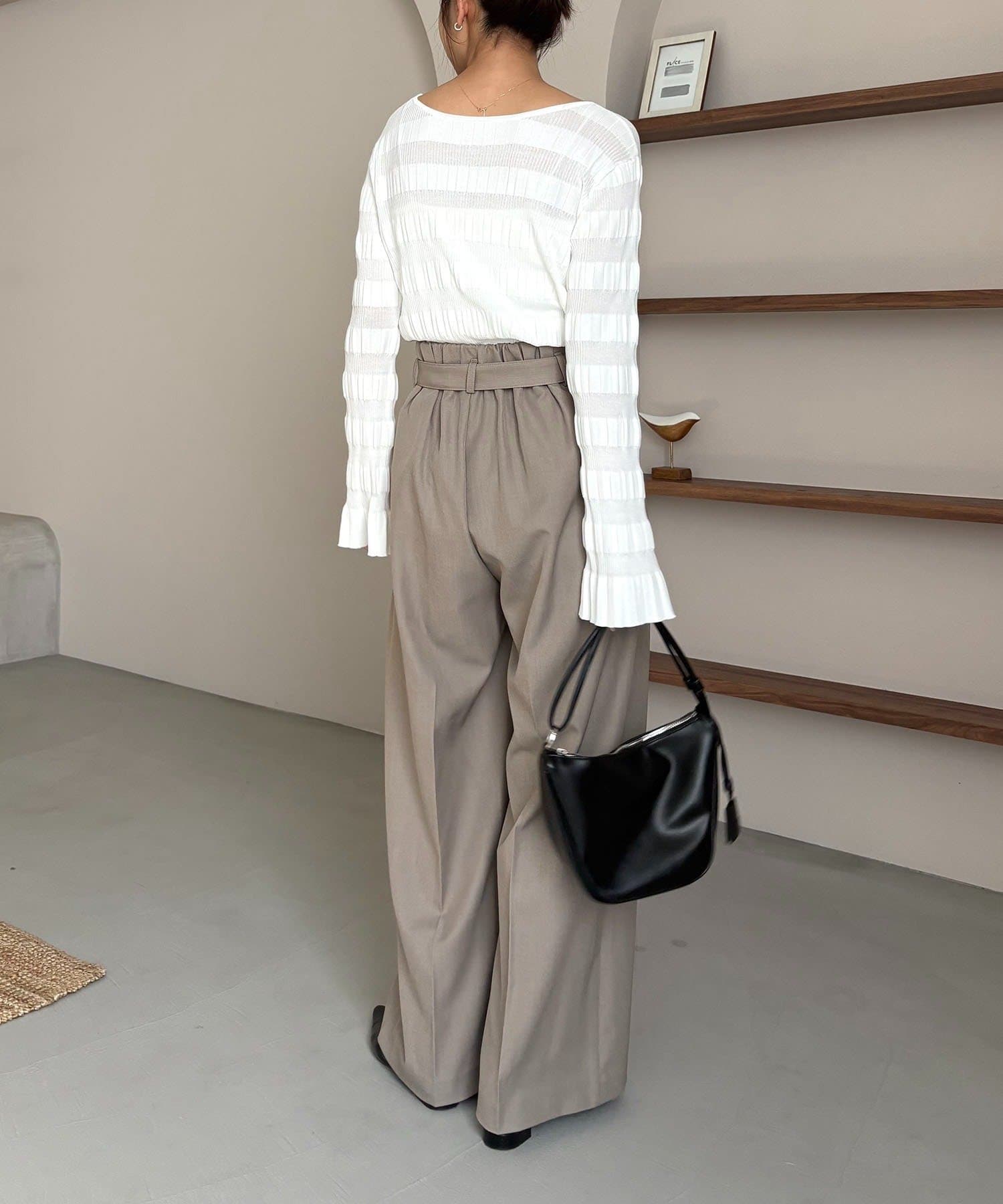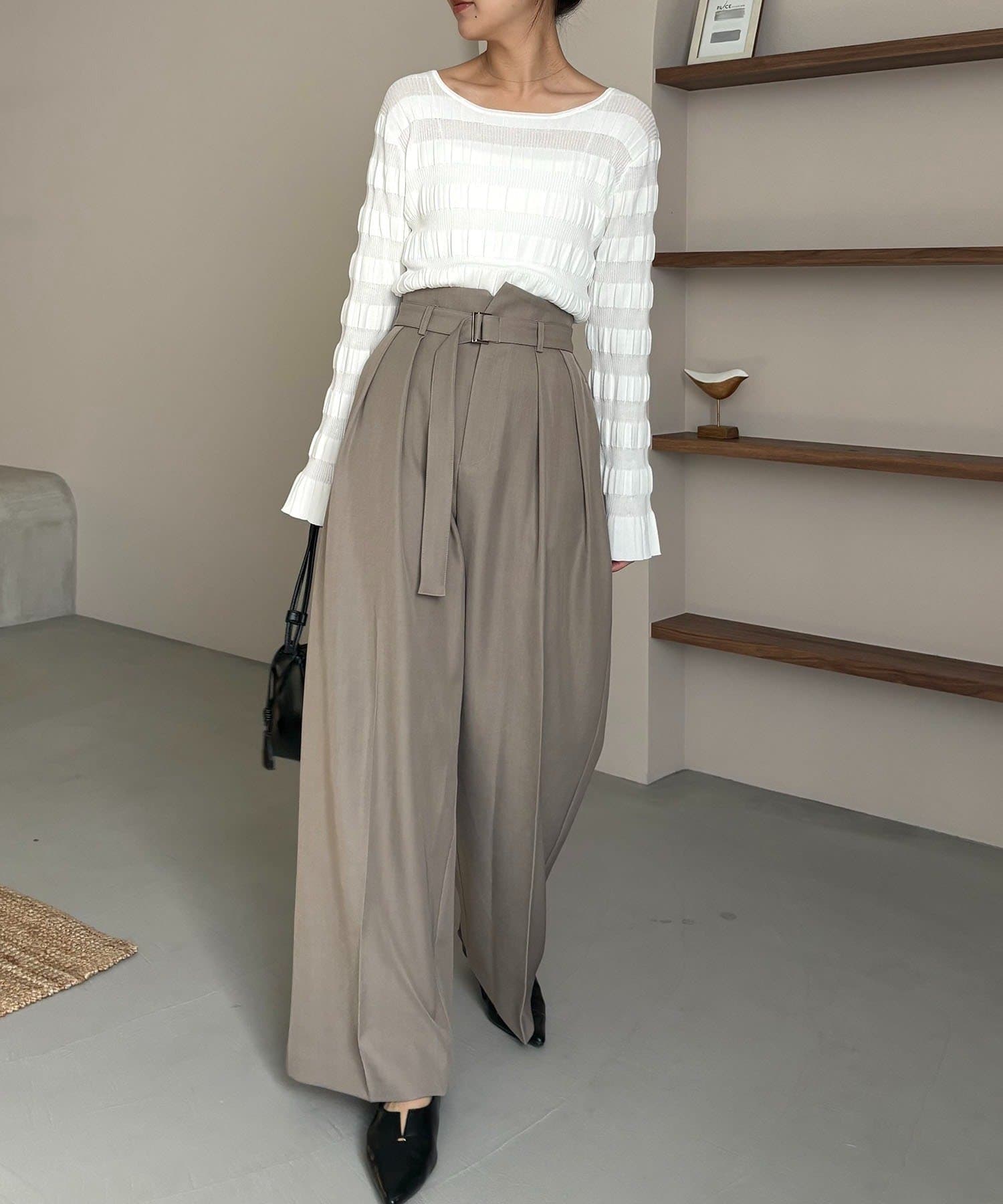 【グレー着用アイテム】カーブタックベルト付パンツ