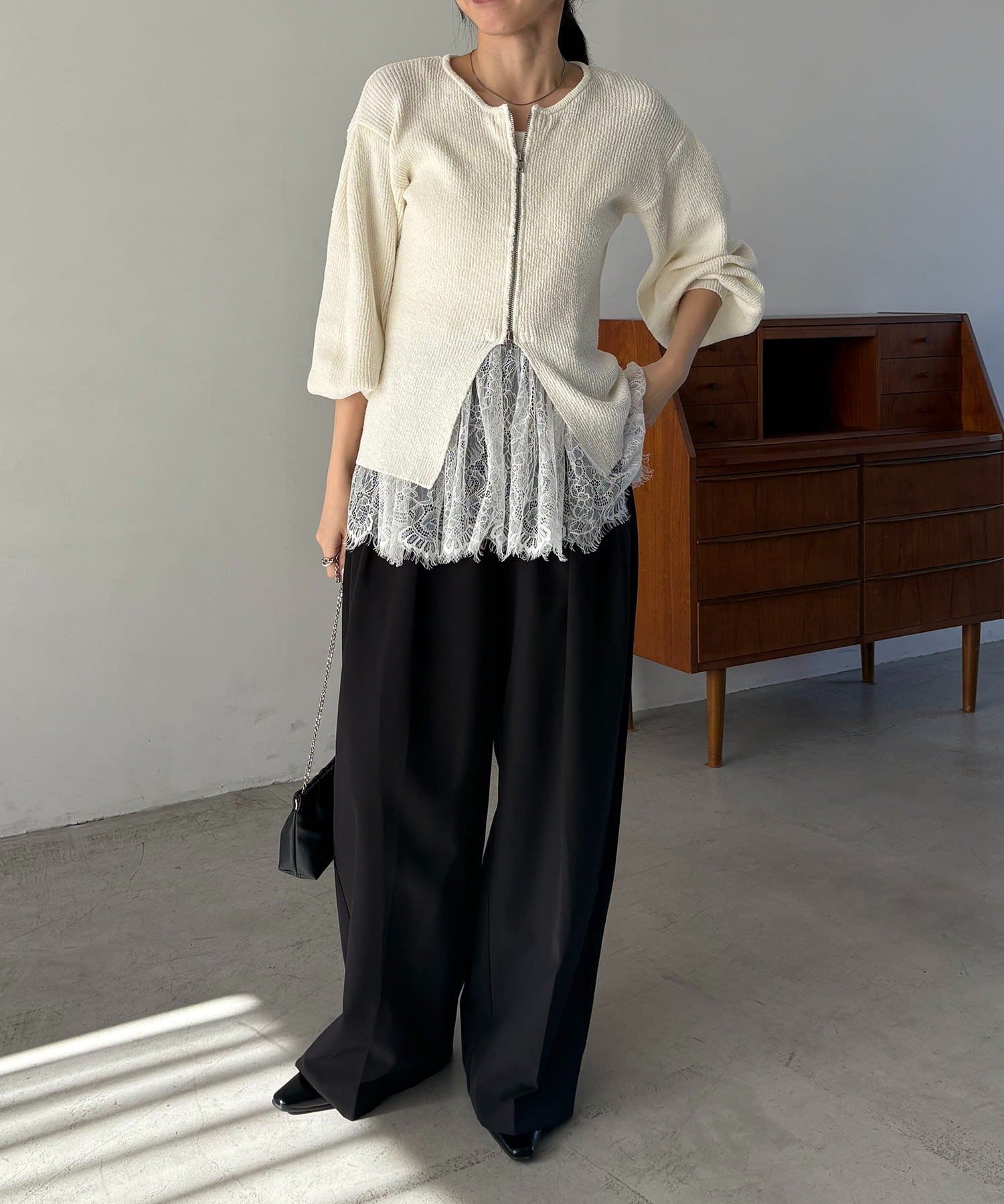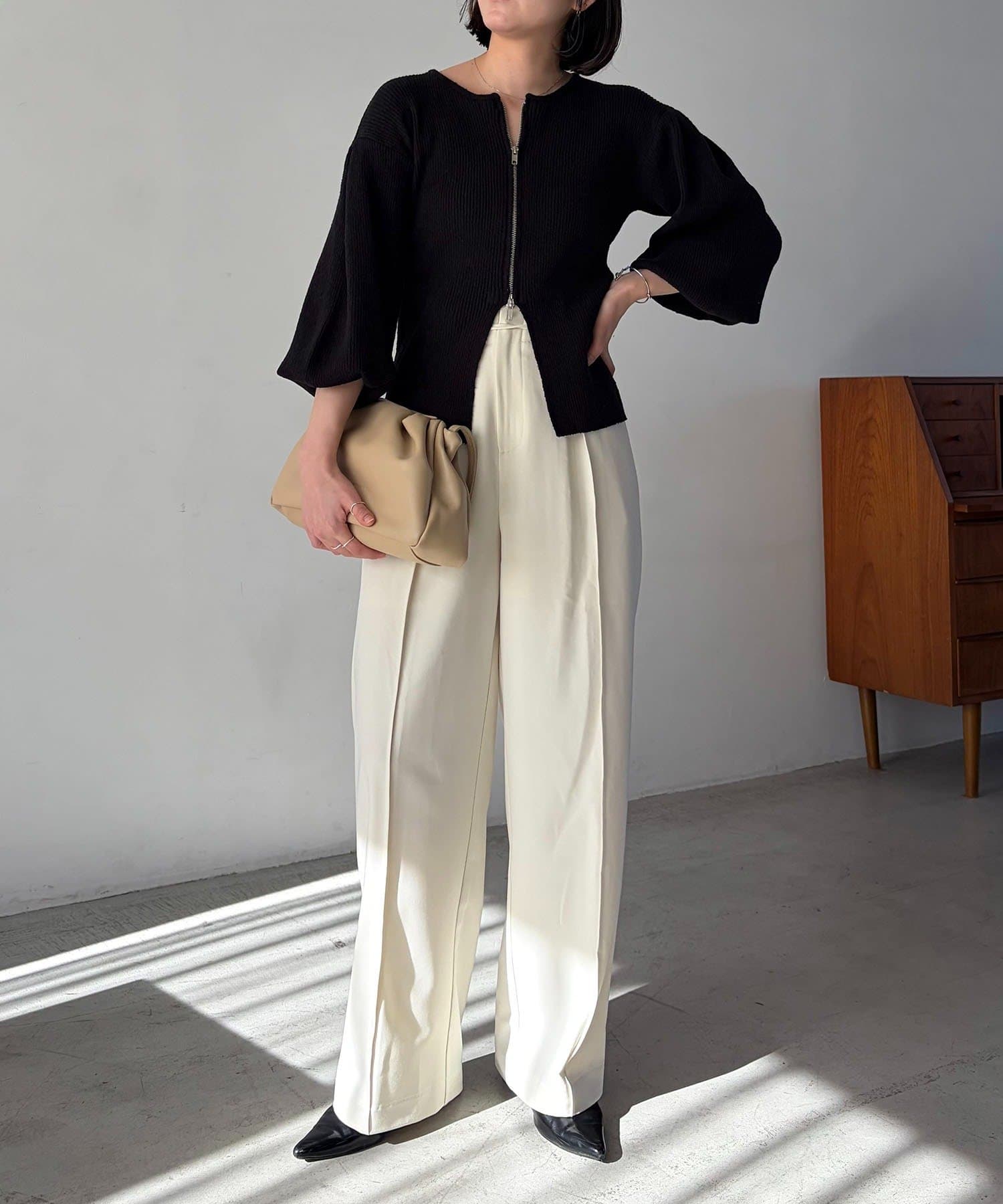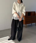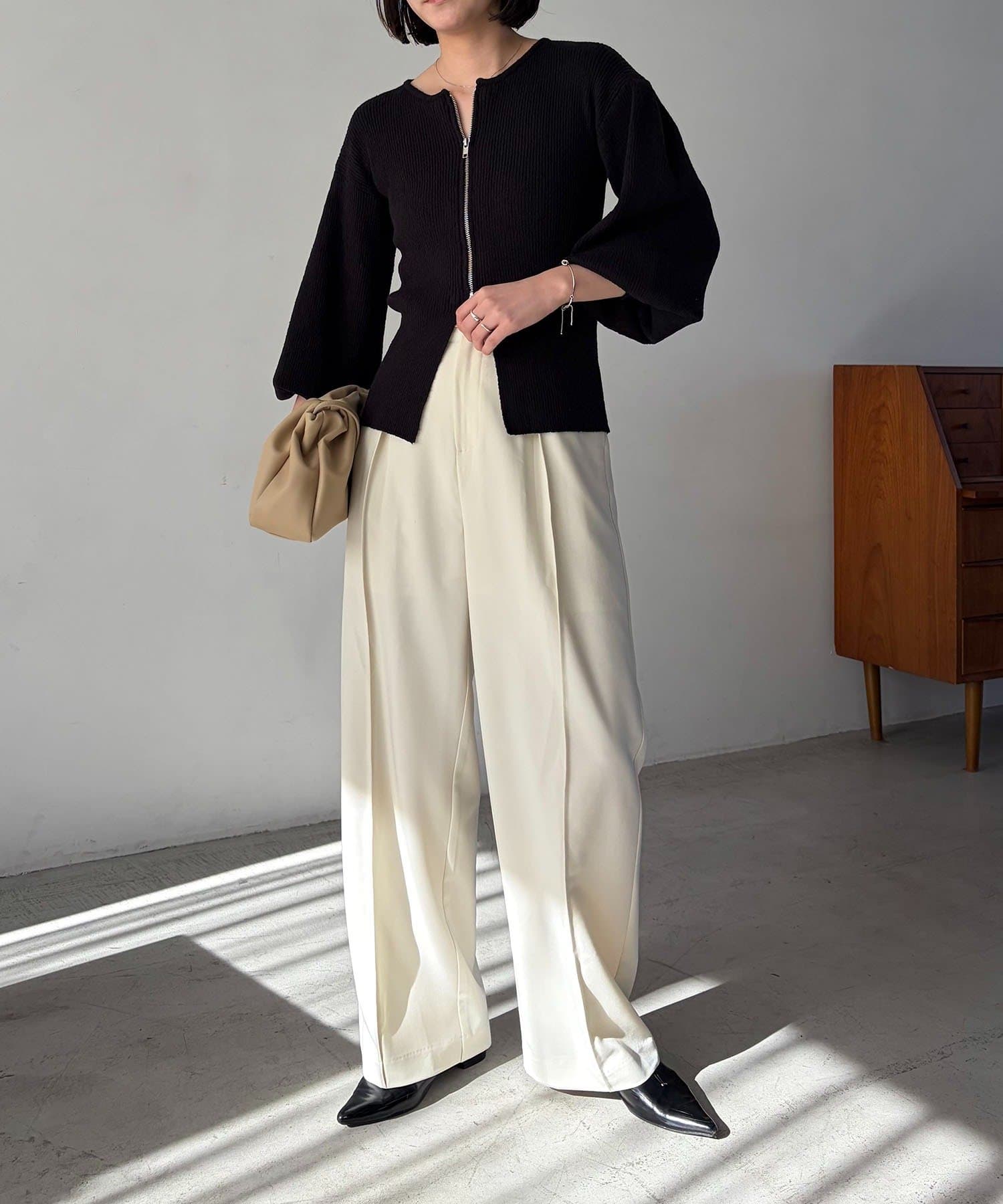 【ホワイト着用アイテム】pants:2タックワイドパンツ・inner:レースキャミ