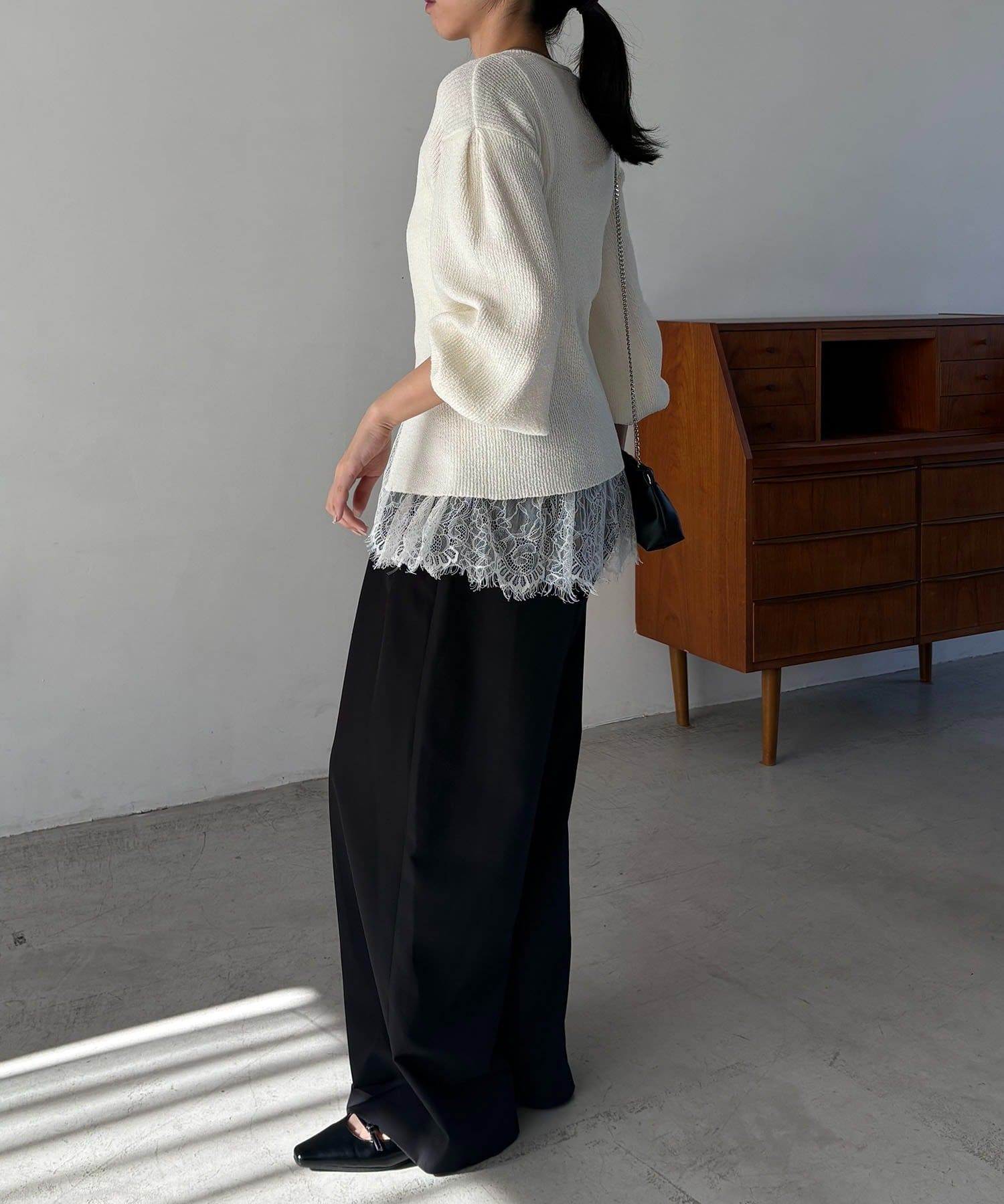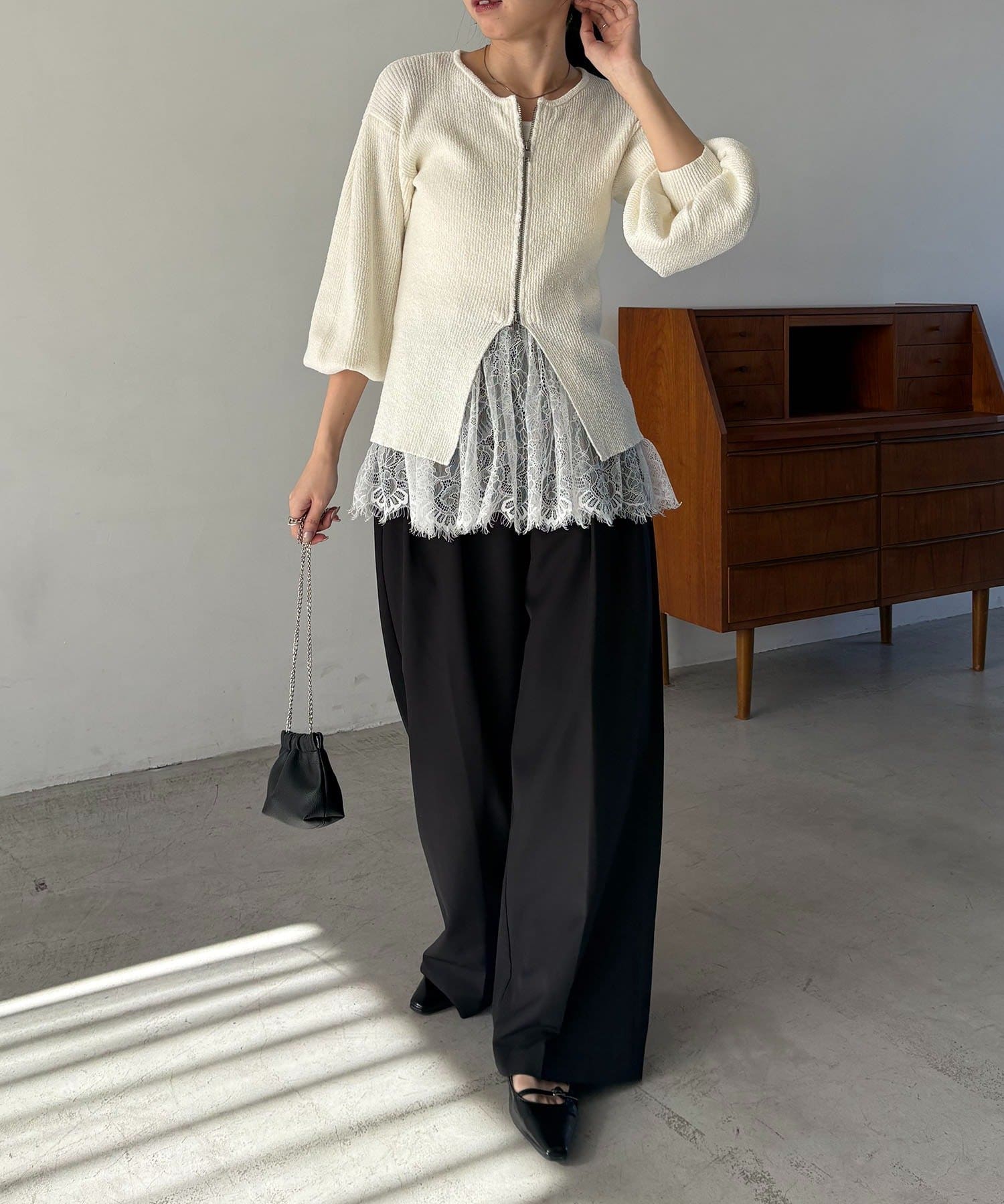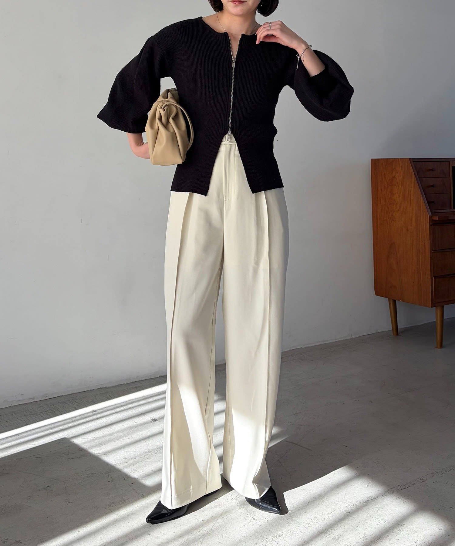 【ホワイト着用アイテム】pants:2タックワイドパンツ・inner:レースキャミ