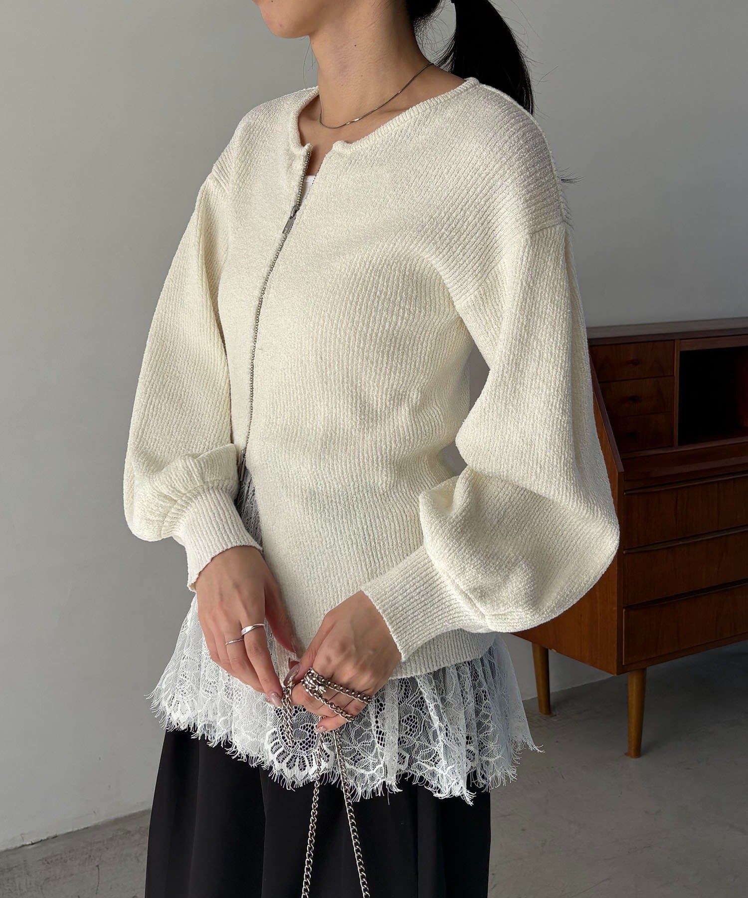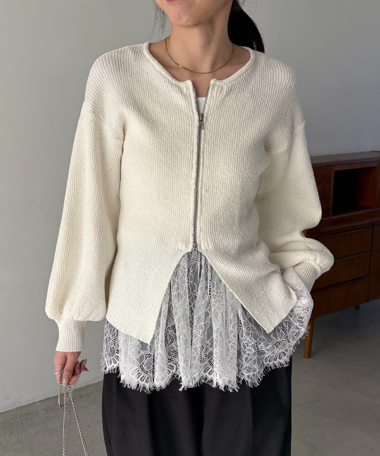 【CAPRICIEUX LE'MAGE】スラブジップパフカーディガン