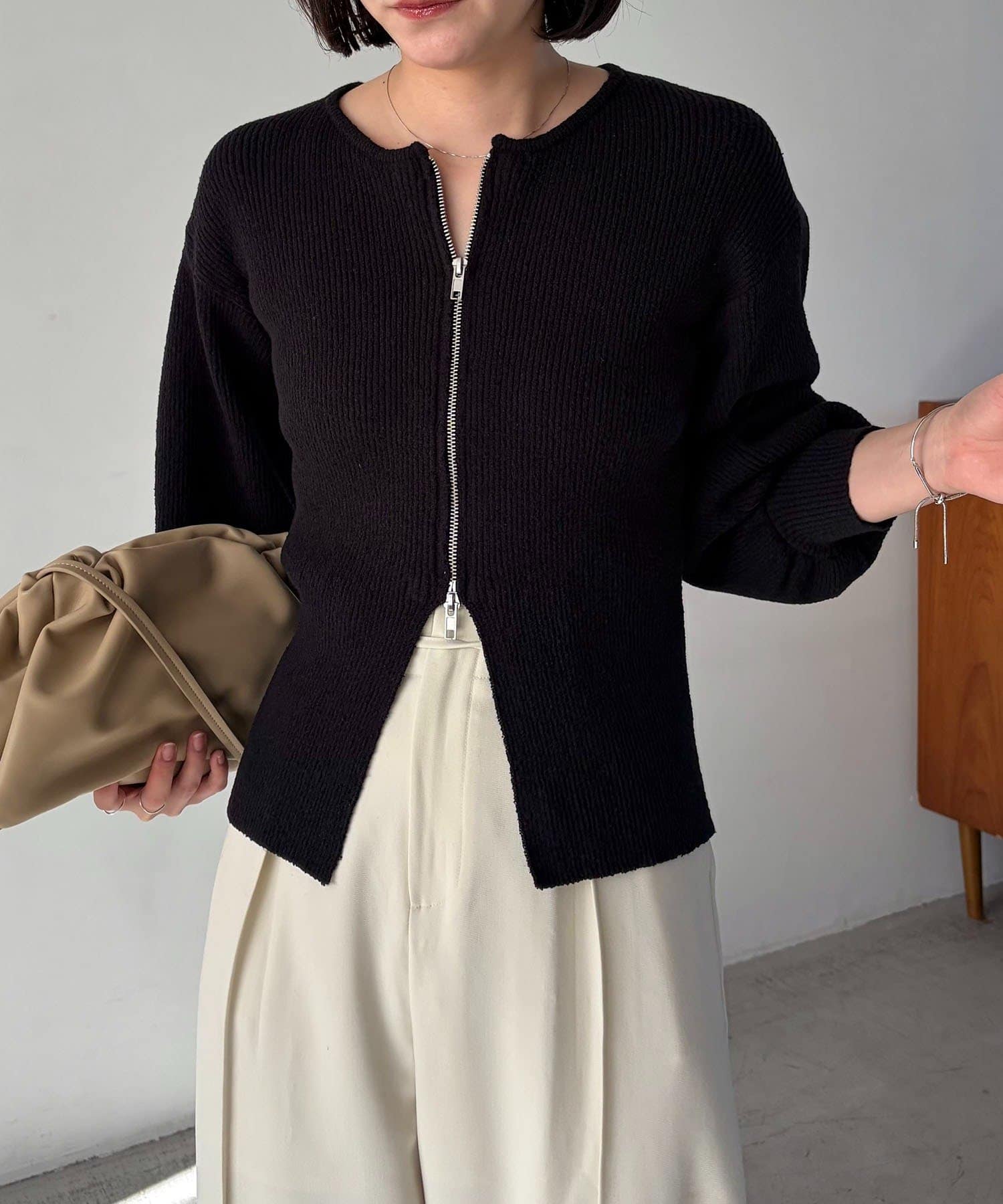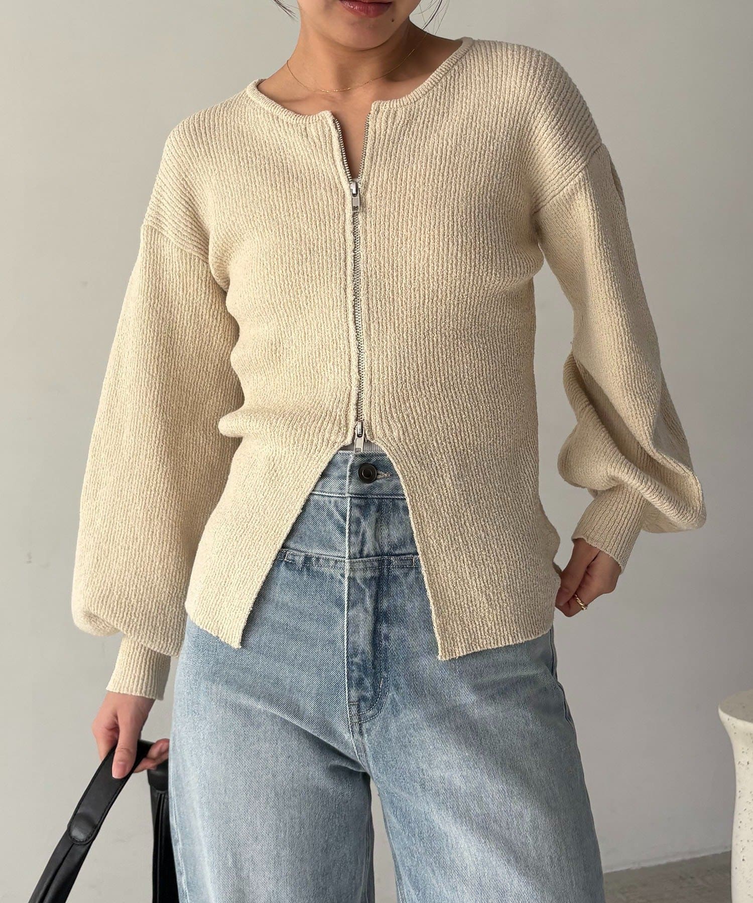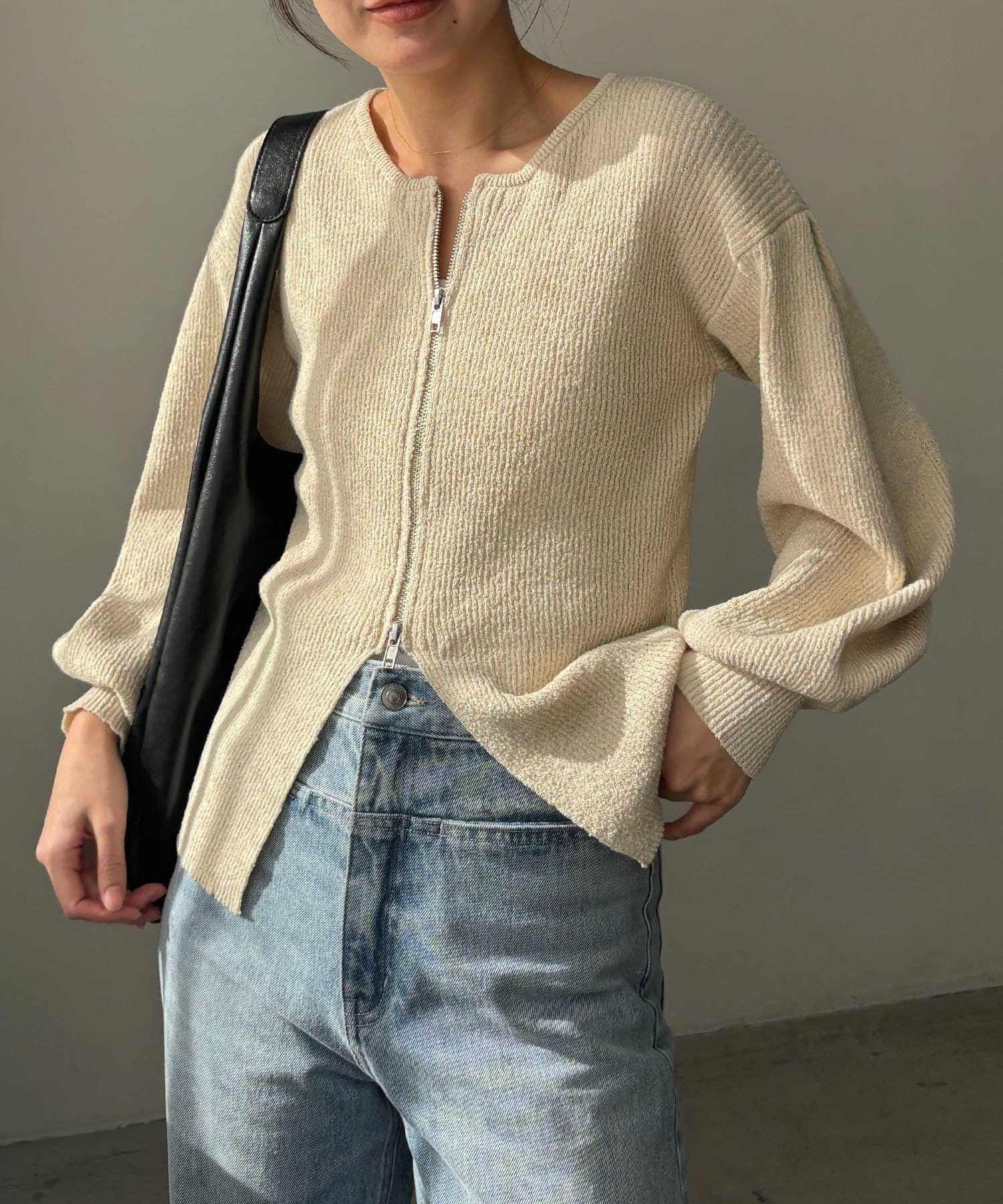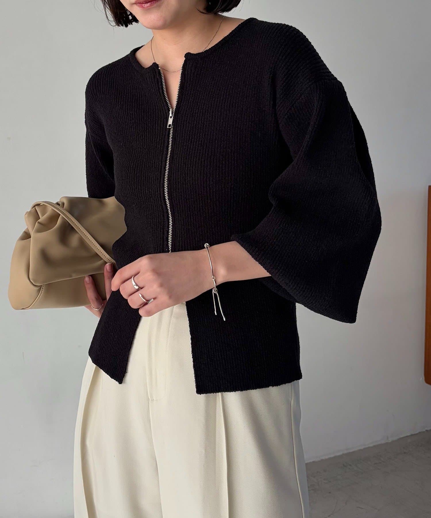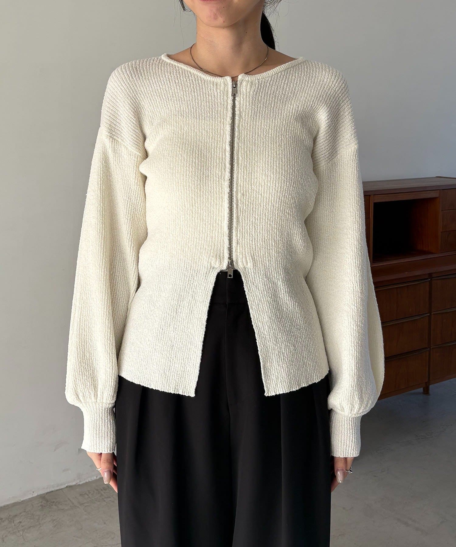 TOP > OUTLET > レディース > トップス > ニット/セーター > 【CAPRICIEUX LE'MAGE】スラブジップパフカーディガン