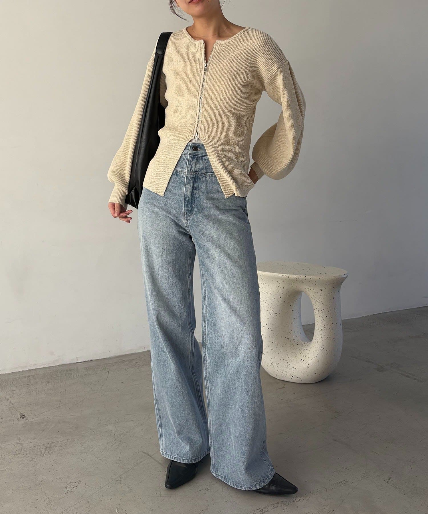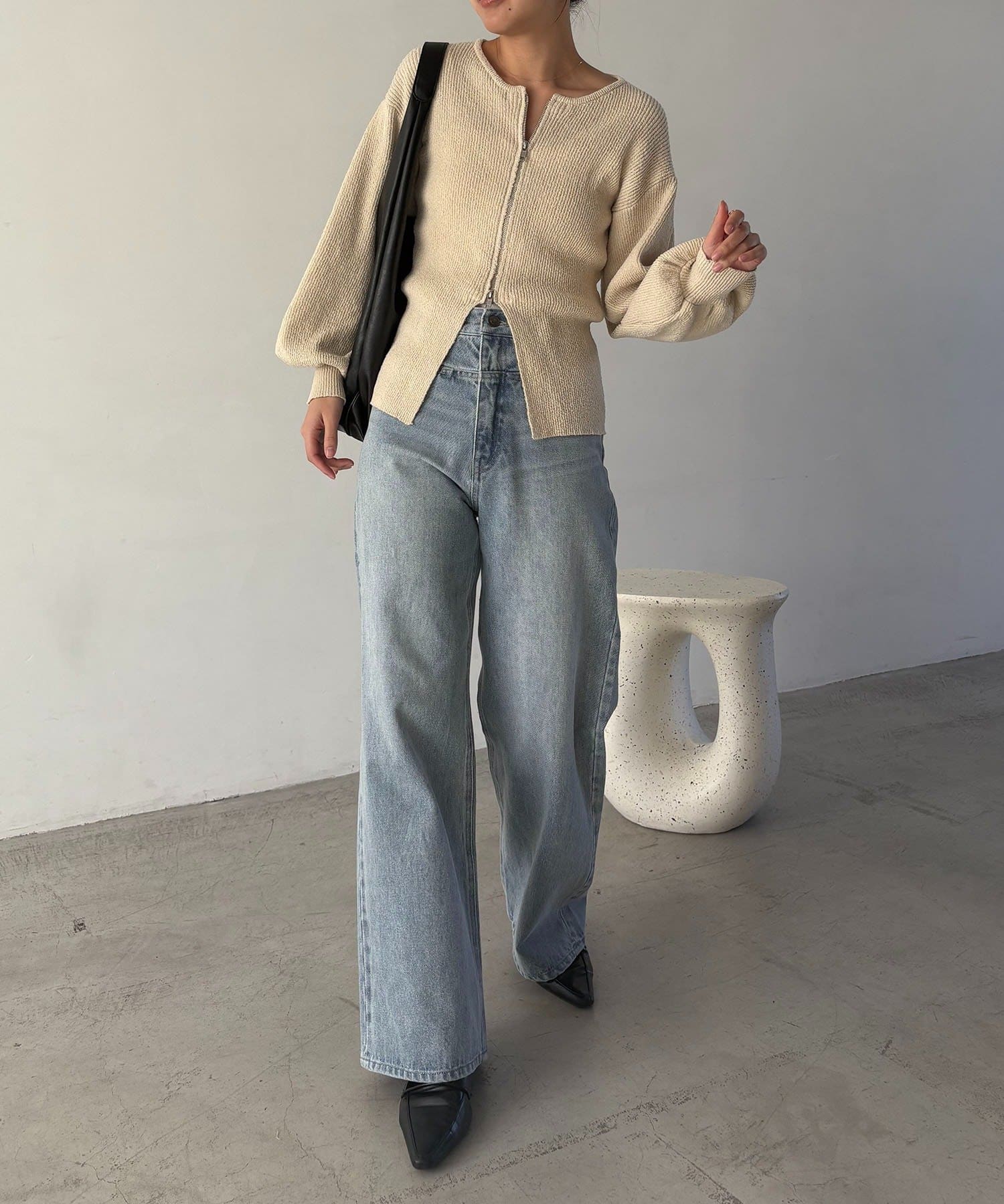 【ライトベージュ着用アイテム】スリットポケットストレートデニム