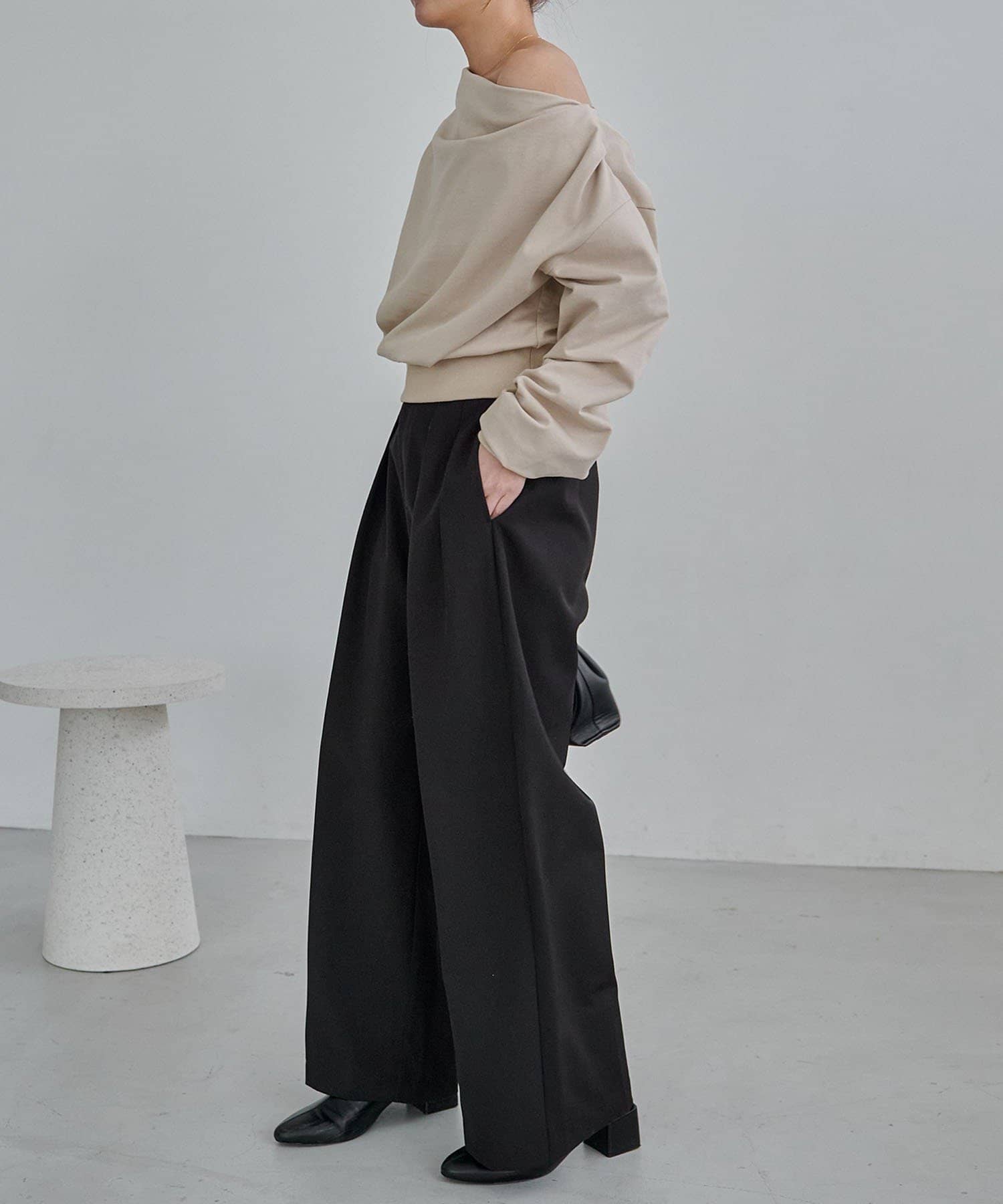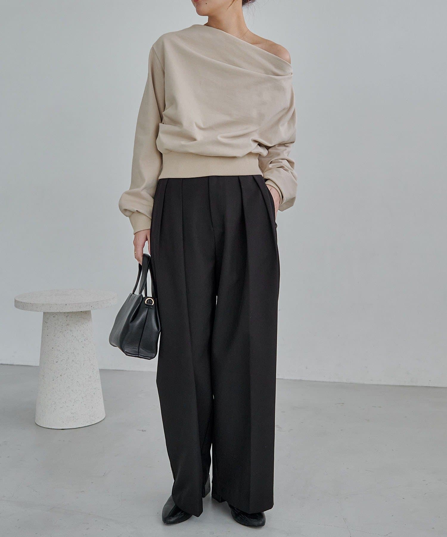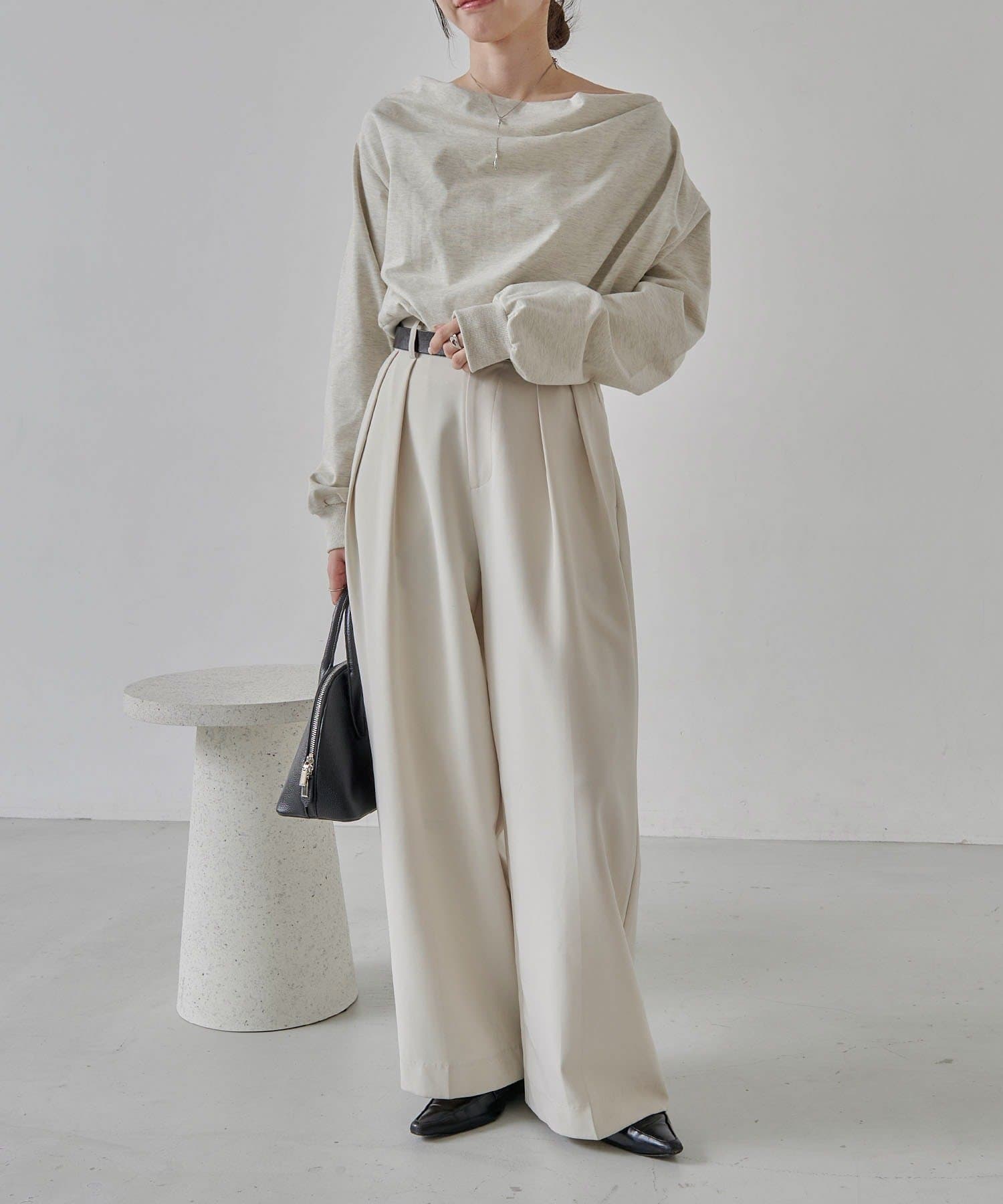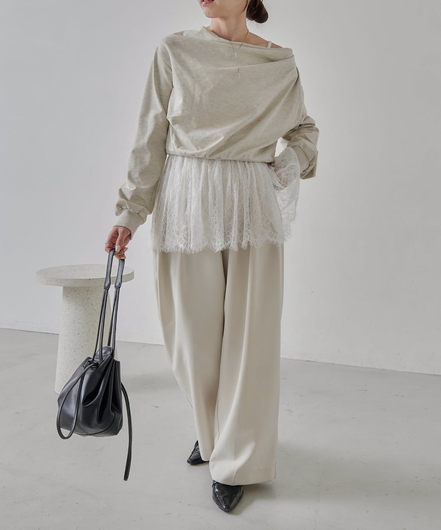 【グレージュ着用アイテム①②】pants:2タックワイドパンツ layered item:レースキャミ